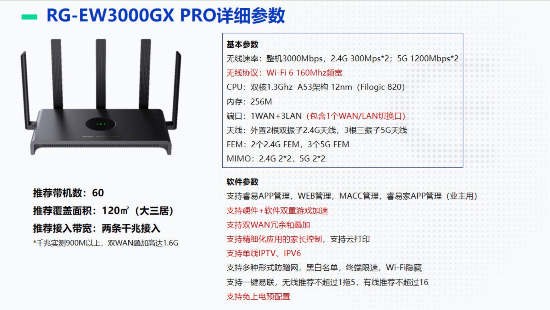 Ruijie RG-EW3000GX PRO 3000M WIFI6 полный гигабитный беспроводной маршрутизатор