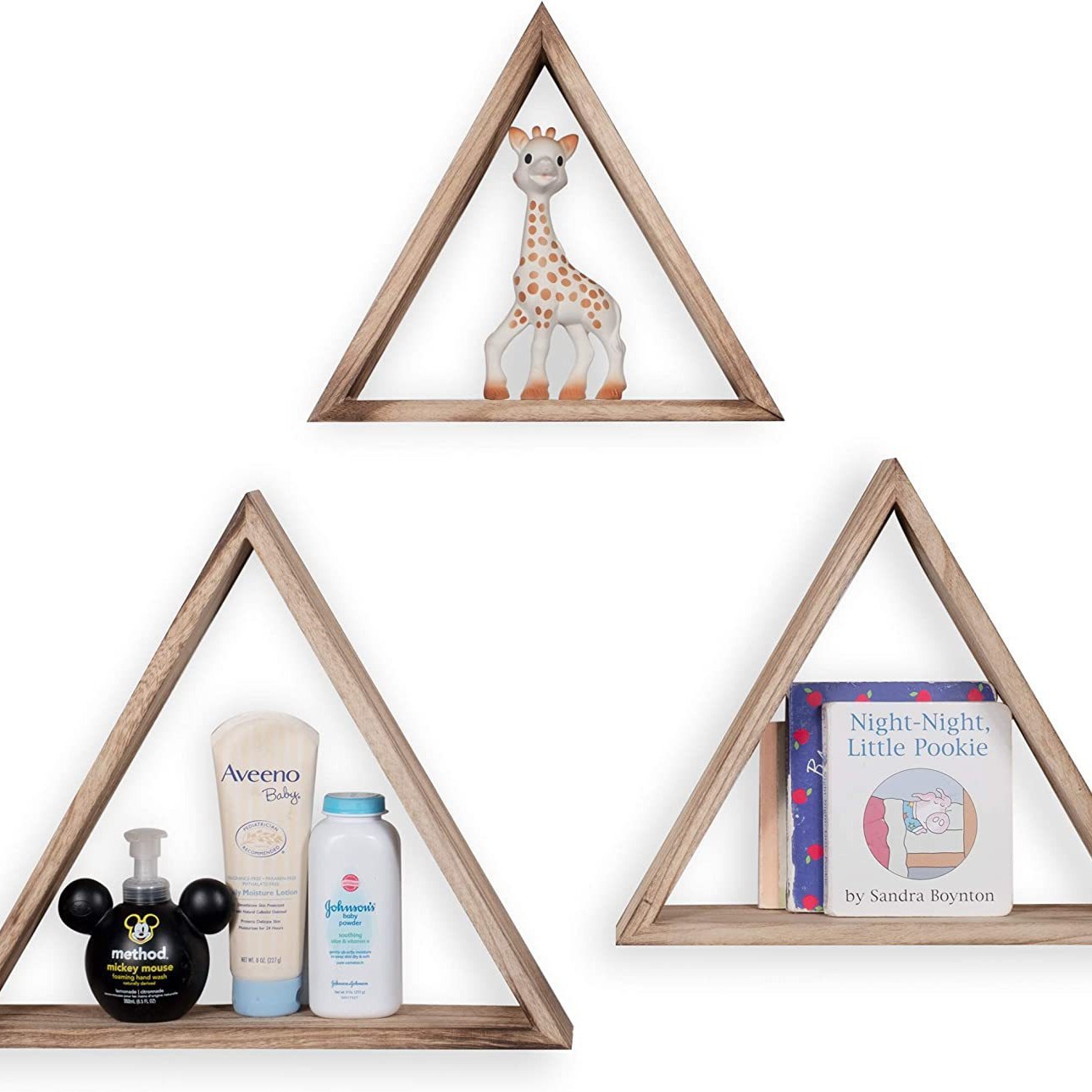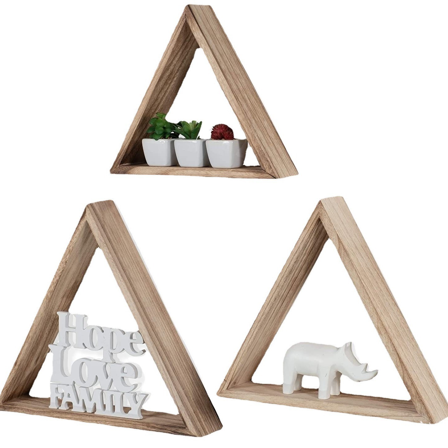 Настенная деревянная треугольная полка для хранения игрушек ручной работы, из массива дерева, для дома, с зелеными растениями