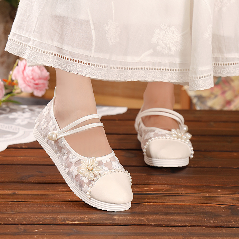 Женская летняя обувь Hanfu, традиционные туфли на плоской подошве с вышивкой, туфли с вышивкой в этническом стиле, удобные туфли на мягкой подошве, туфли с одним ремешком.
