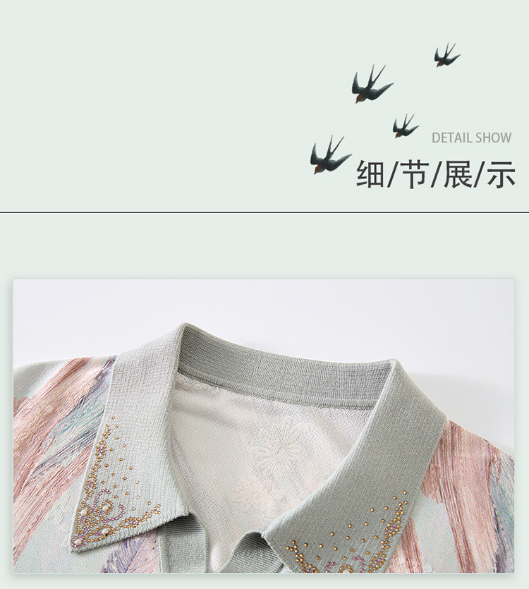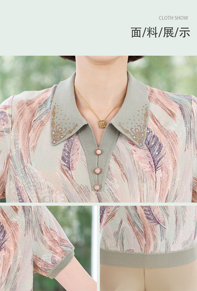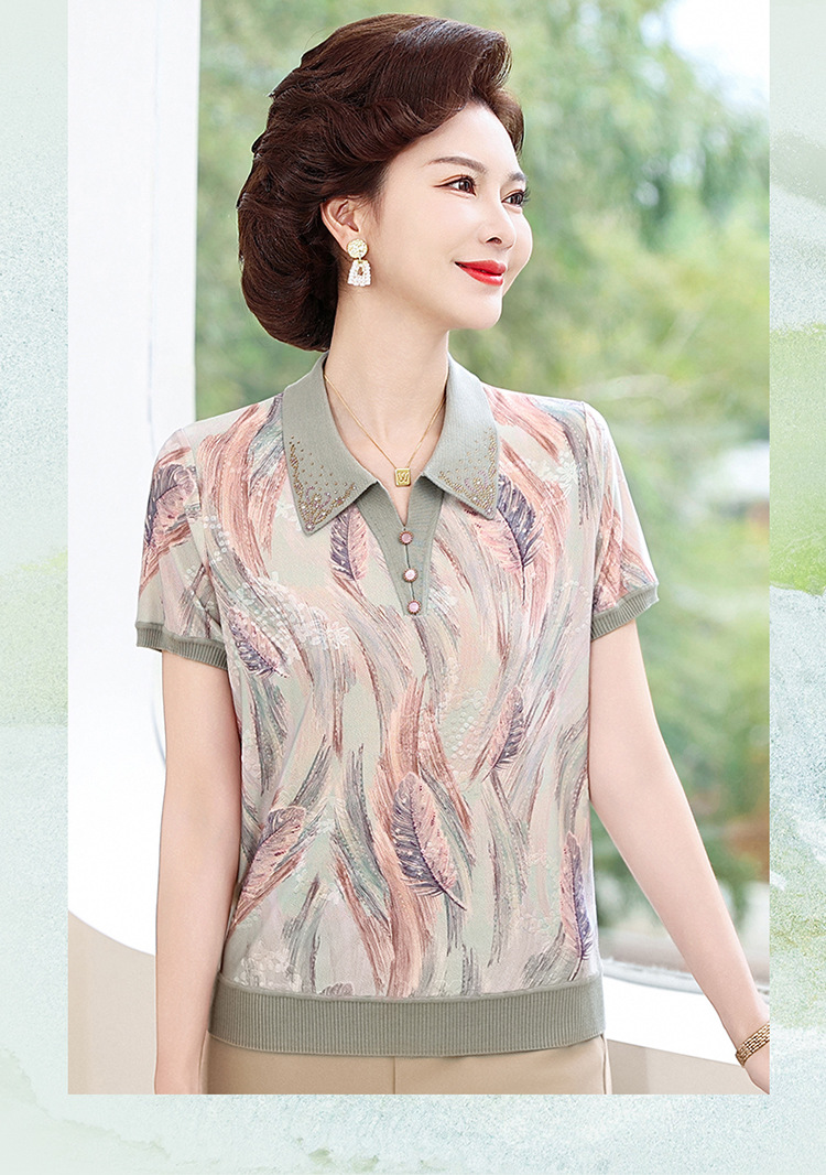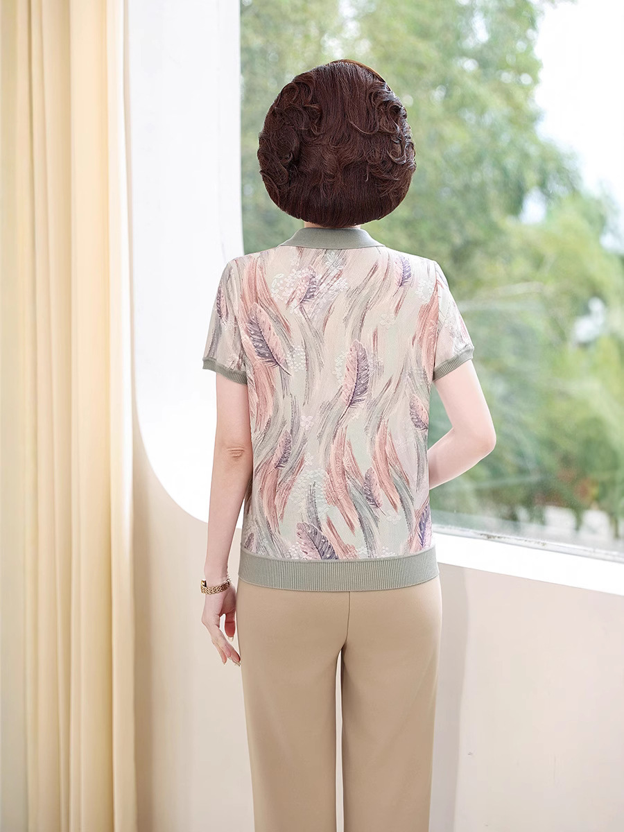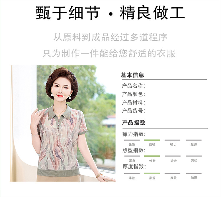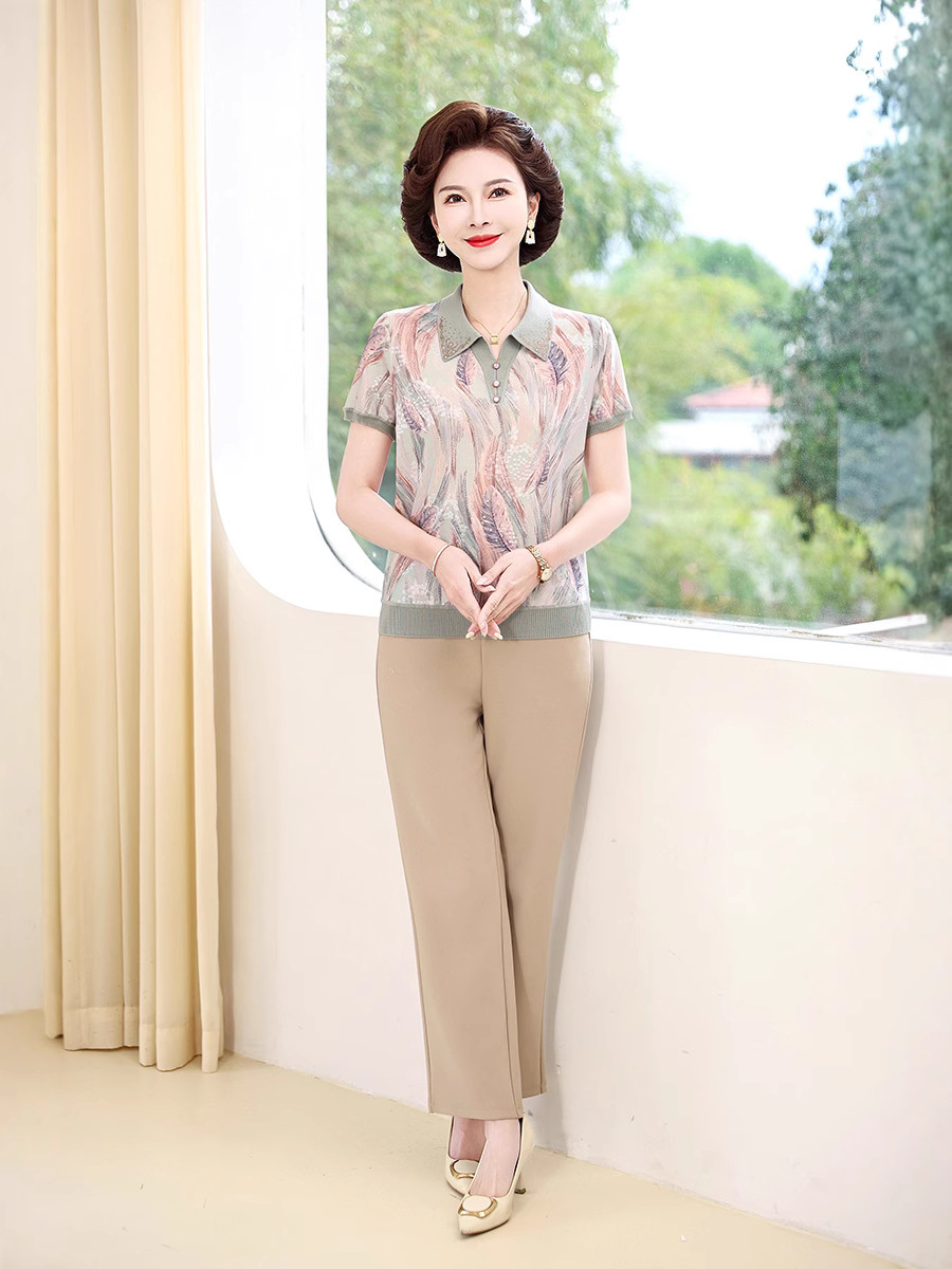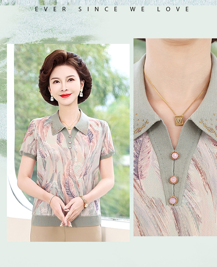 Новая летняя футболка с короткими рукавами и лацканами для мамы, модный тонкий топ из ледяного шелка большого размера для женщин среднего и пожилого возраста с принтом