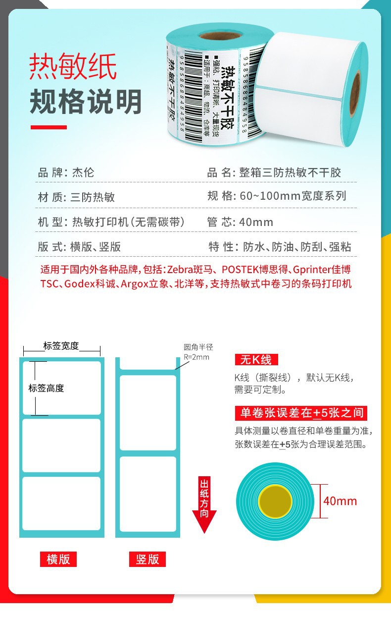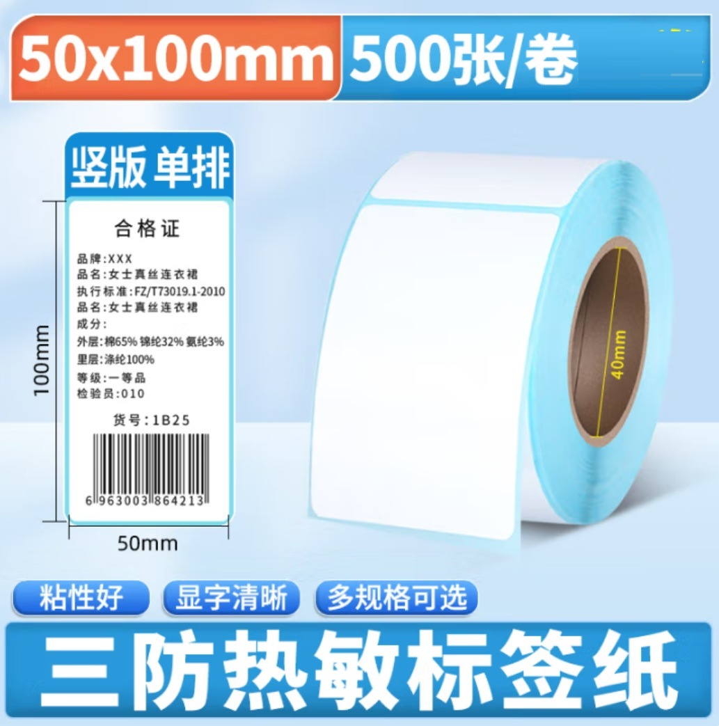 Термоэтикетная бумага для промышленного использования, трехслойная, 100x50мм, 24 рулона/коробка