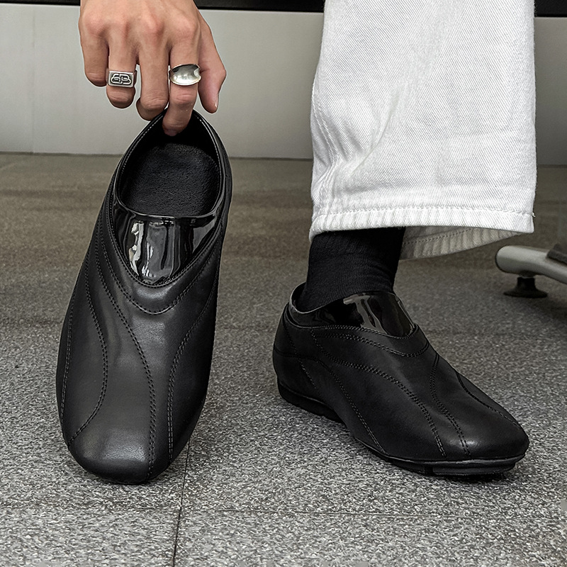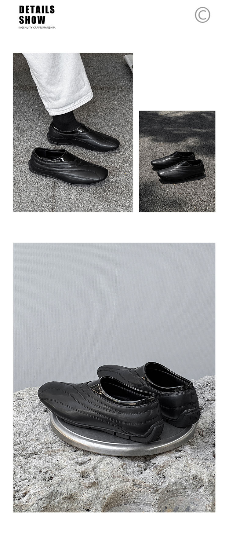 мужские и женские моральные тренировочные туфли в стиле ретро, спорт и отдых, британский стиль, универсальные маленькие кожаные туфли на одной ноге для рабочей одежды 44919 черный-J
