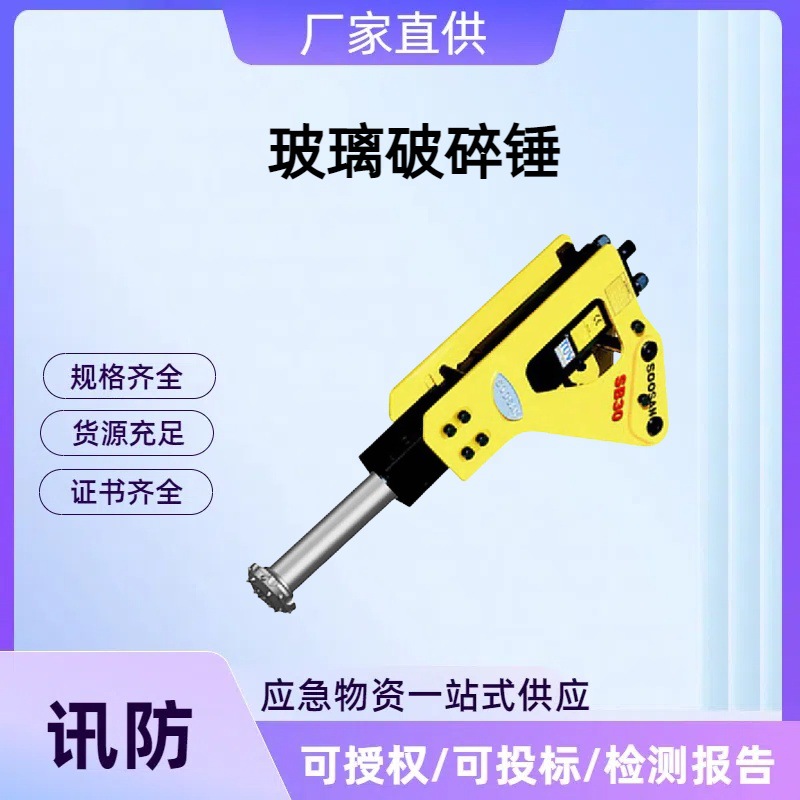 破碎锤采用狼牙棒式齿形锤头,不易滑脱,可与玻璃平面上下左右30度倾斜角范围内多角度多点不规则接触玻璃,大直径锤头,破拆面积大,当击破玻璃后,锤头狼牙齿会连同玻璃夹胶带走玻璃碎片,增加破拆效率。