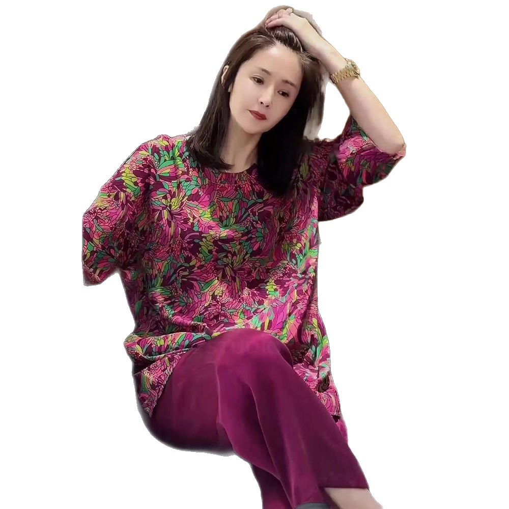 Модный костюм для женщин 2025 года, новый, стройнящий, розово-красный, с принтом, рукав три четверти, широкие брюки, весенний комплект.