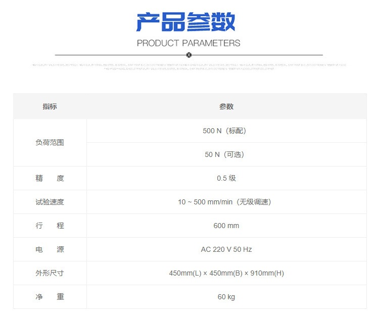 - 具有参数掉电记忆,过载保护功能、限位保护功能、试验结束自动回位