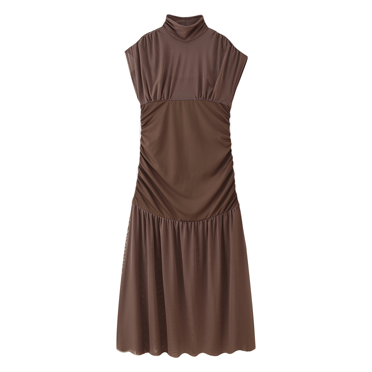 Летнее платье миди с высоким воротом, тюлевыми вставками и сборками по бокам, коллекция PB&ZA 2025, артикул 4772352
