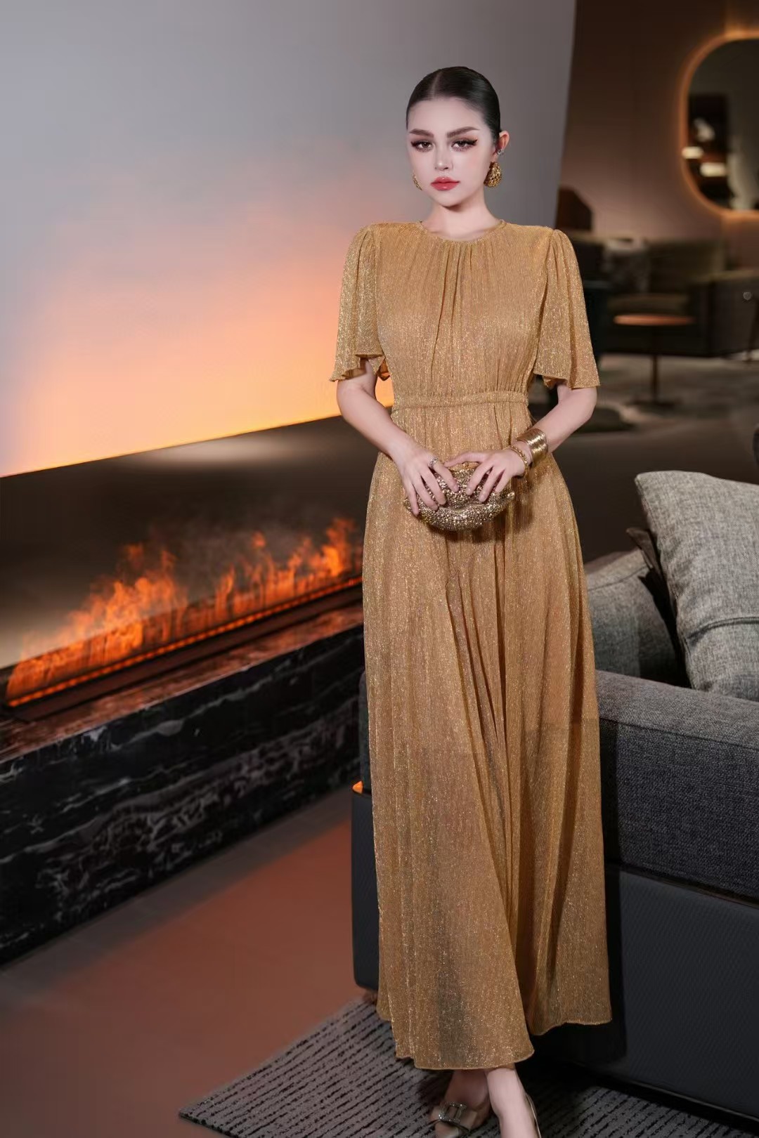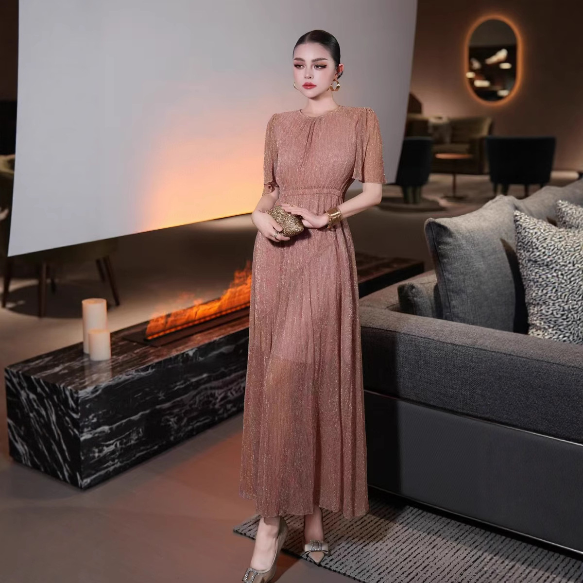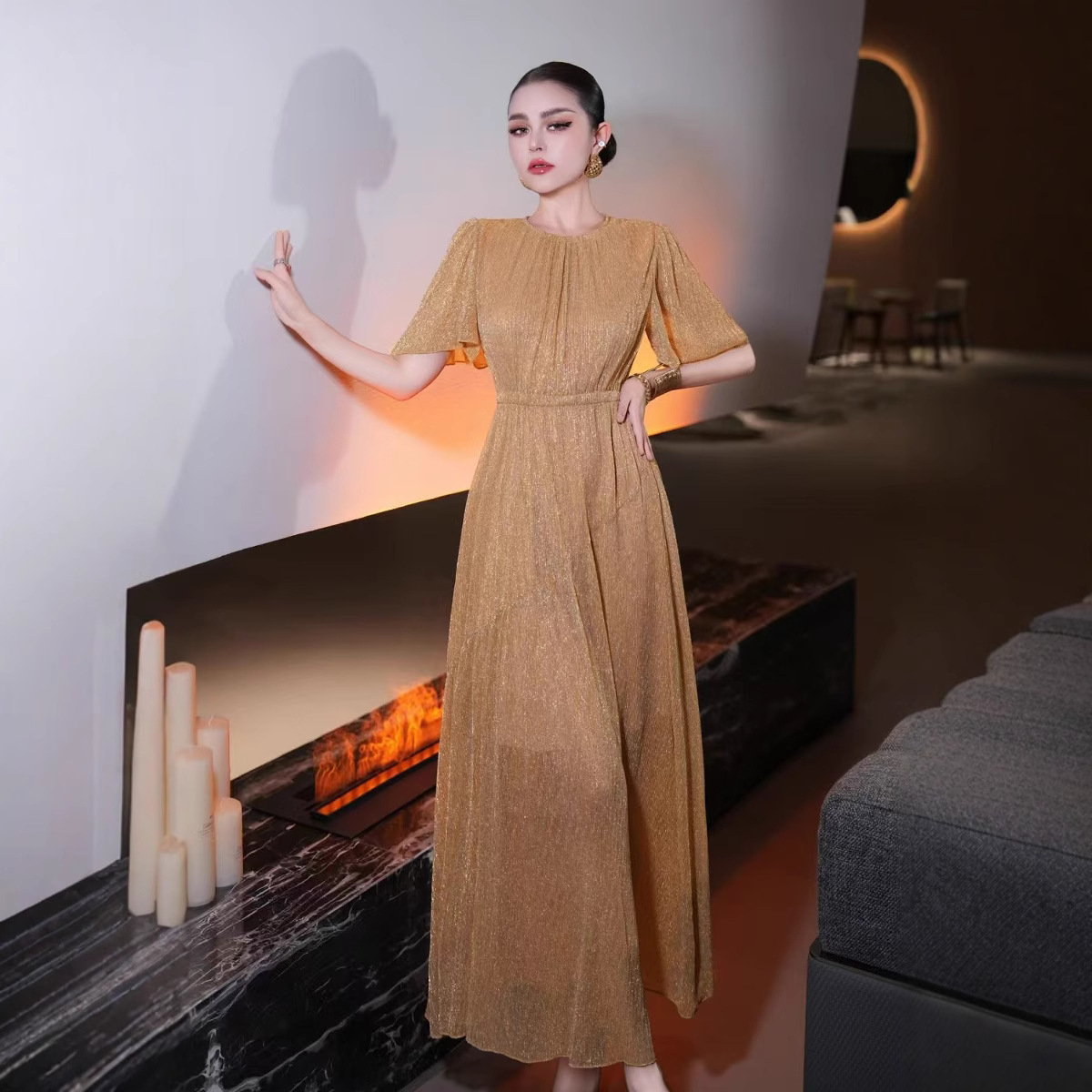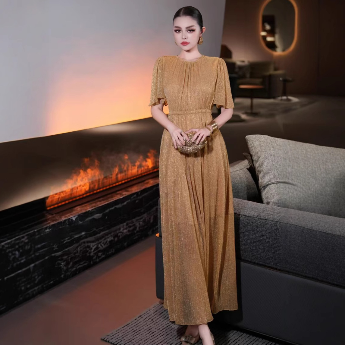 2025 новая мода элегантное высококлассное французское дизайнерское платье с тяжелой золотой нитью, юбка на талии Nanyou