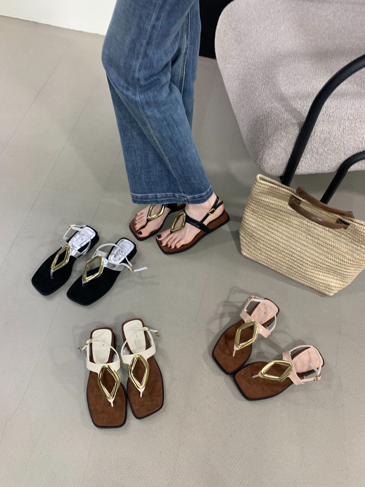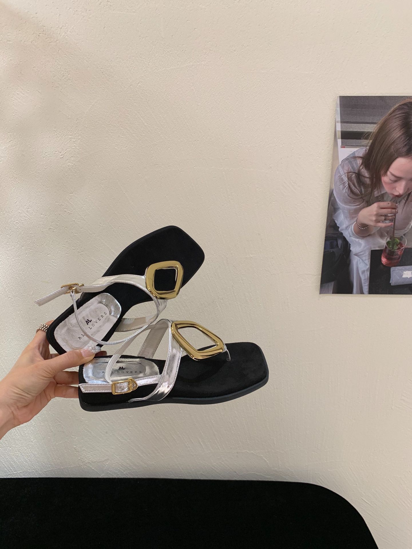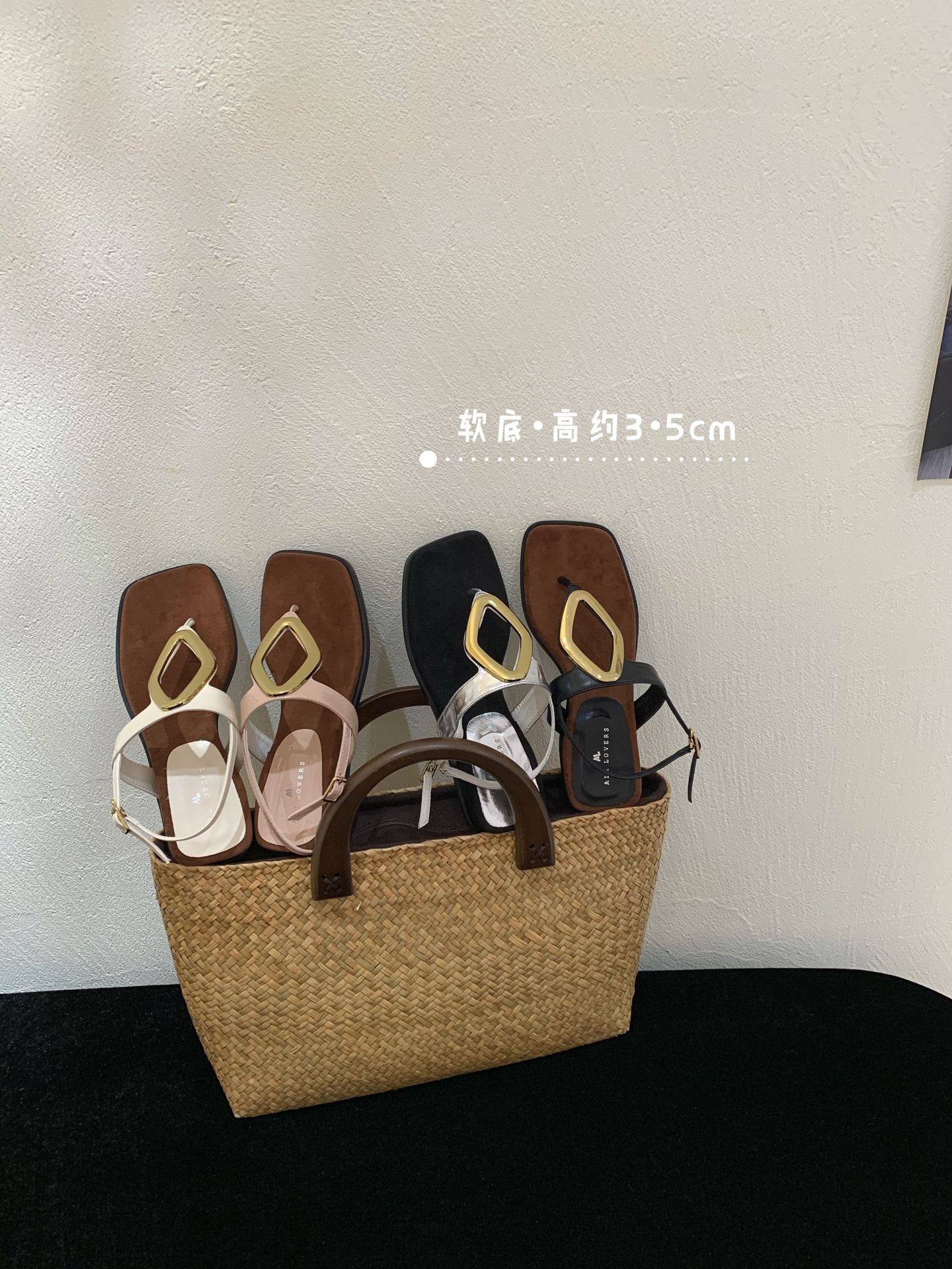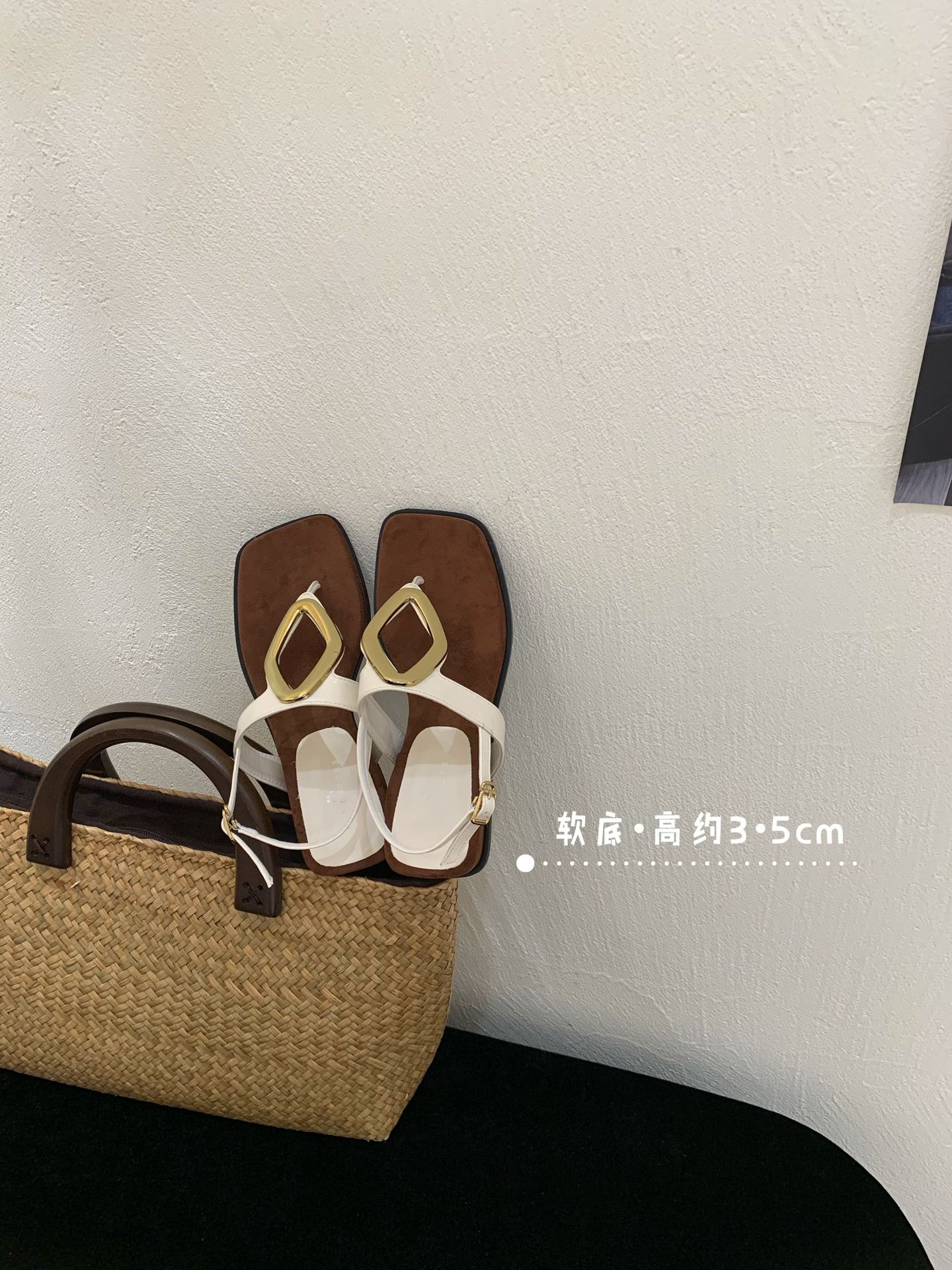 Женские летние пляжные шлепанцы 2025 года, новые, в стиле французского ретро, с металлической квадратной пряжкой и клиновидной платформой