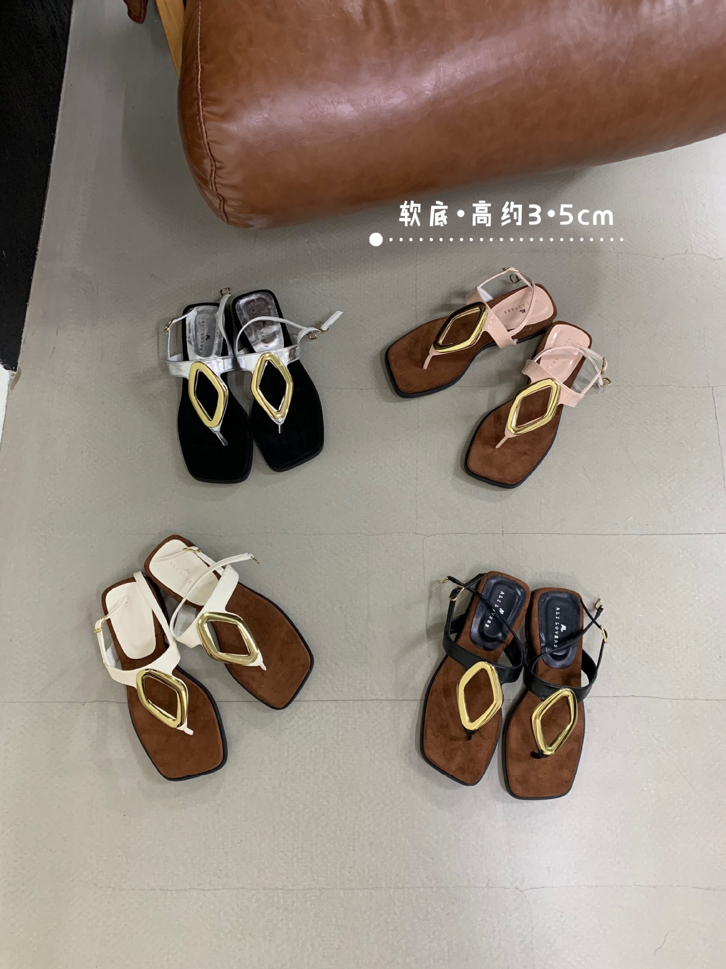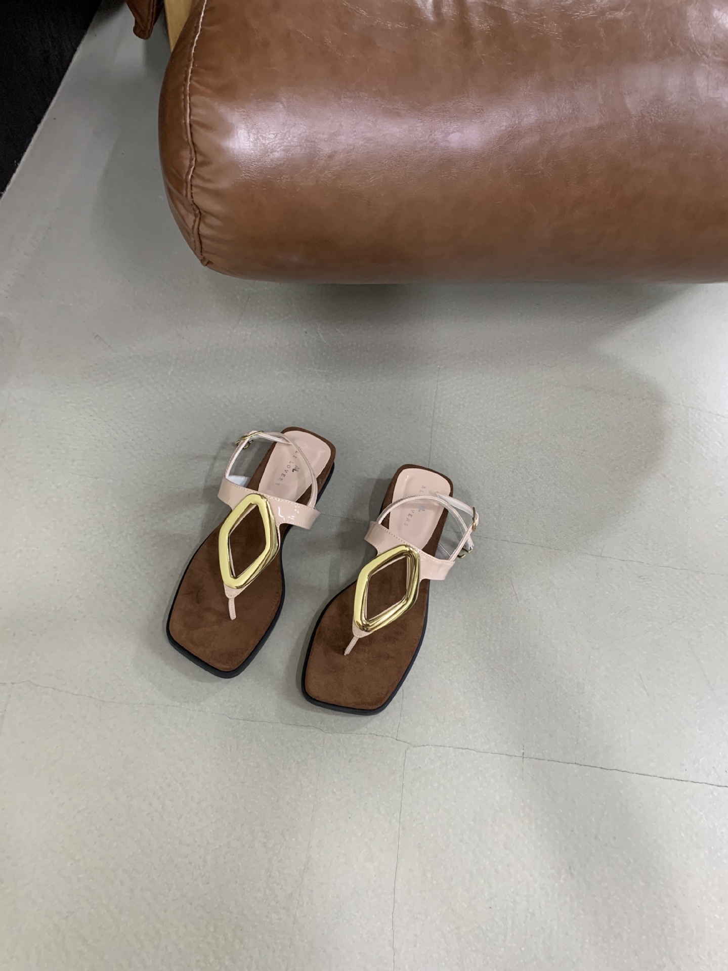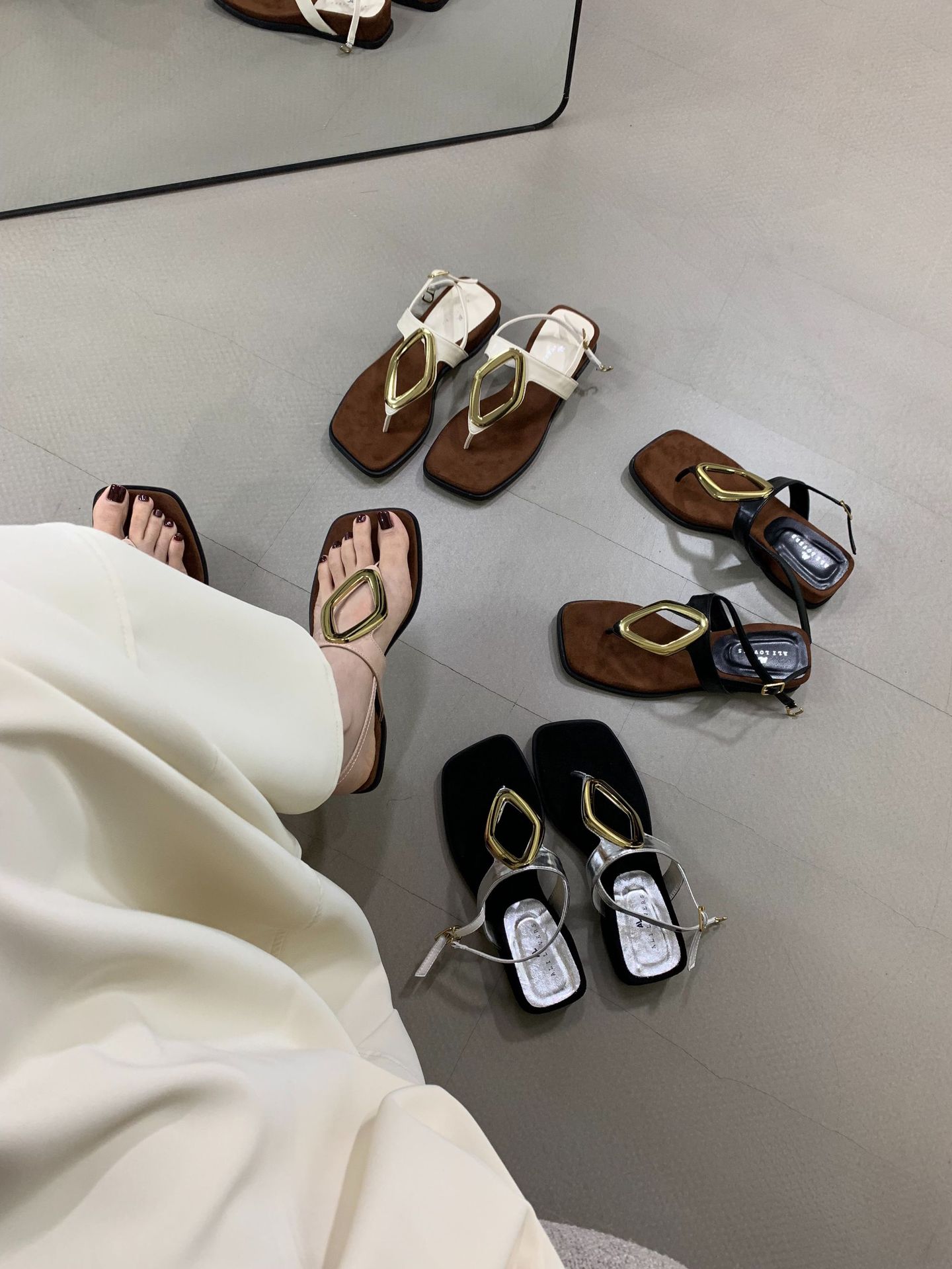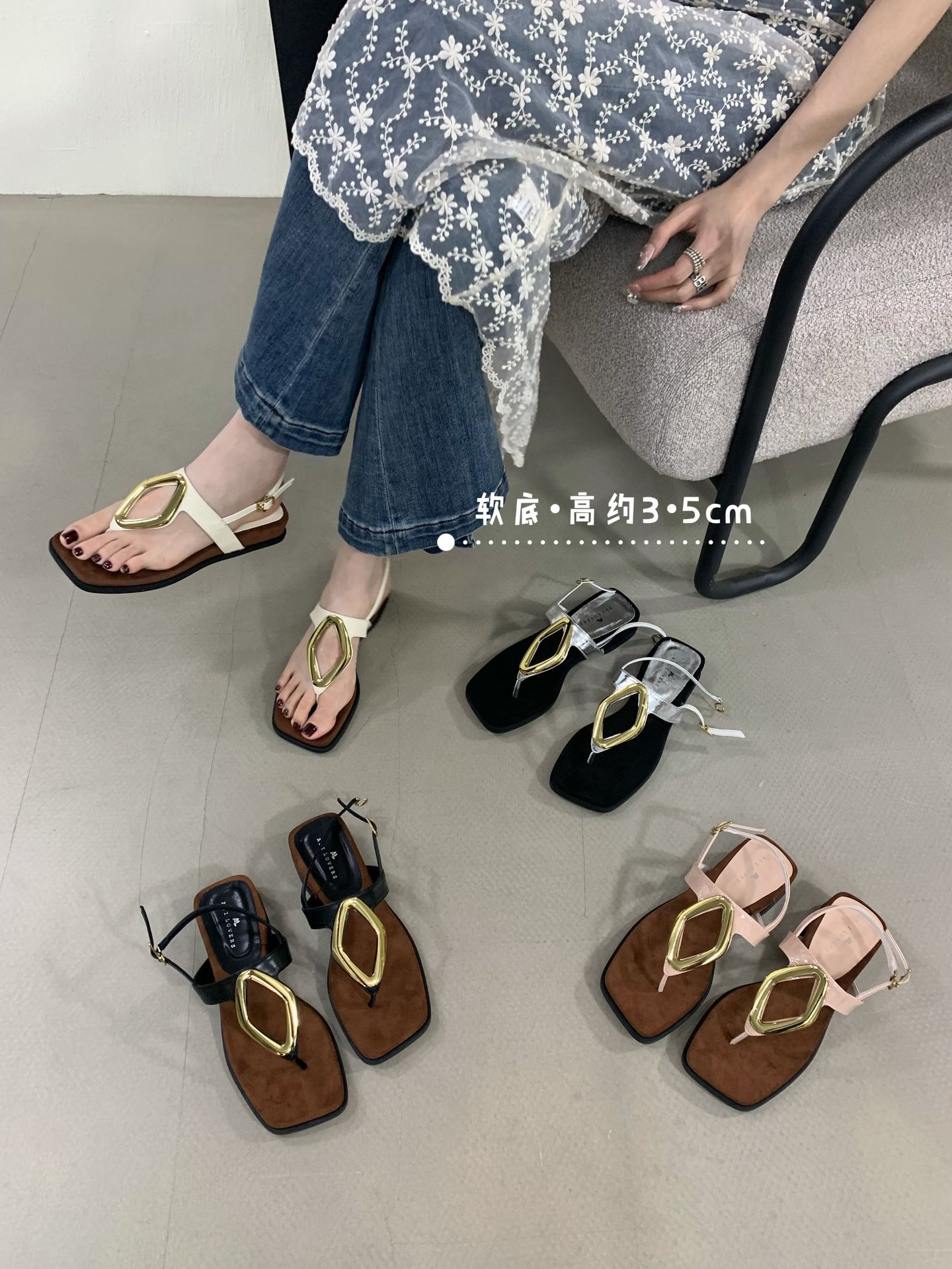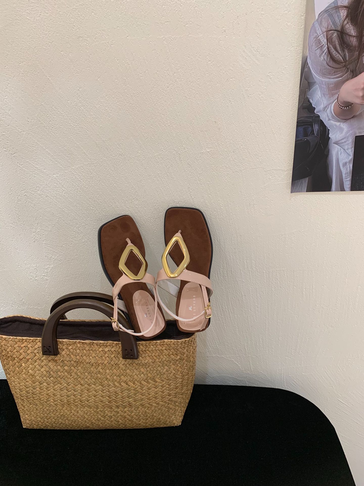 Женские летние пляжные шлепанцы 2025 года, новые, в стиле французского ретро, с металлической квадратной пряжкой и клиновидной платформой