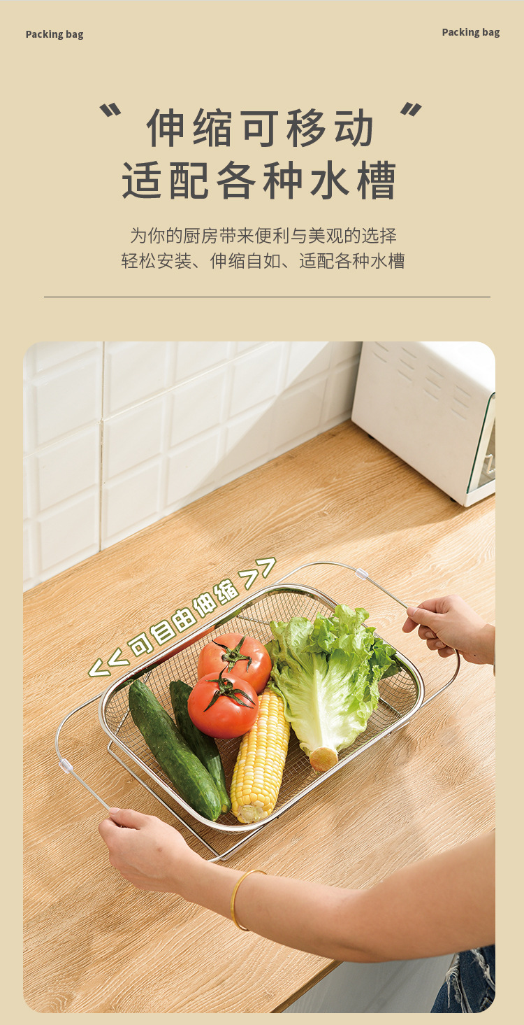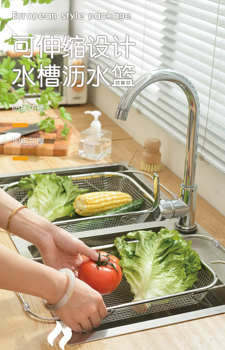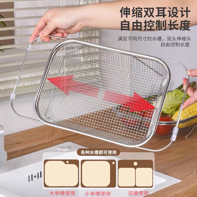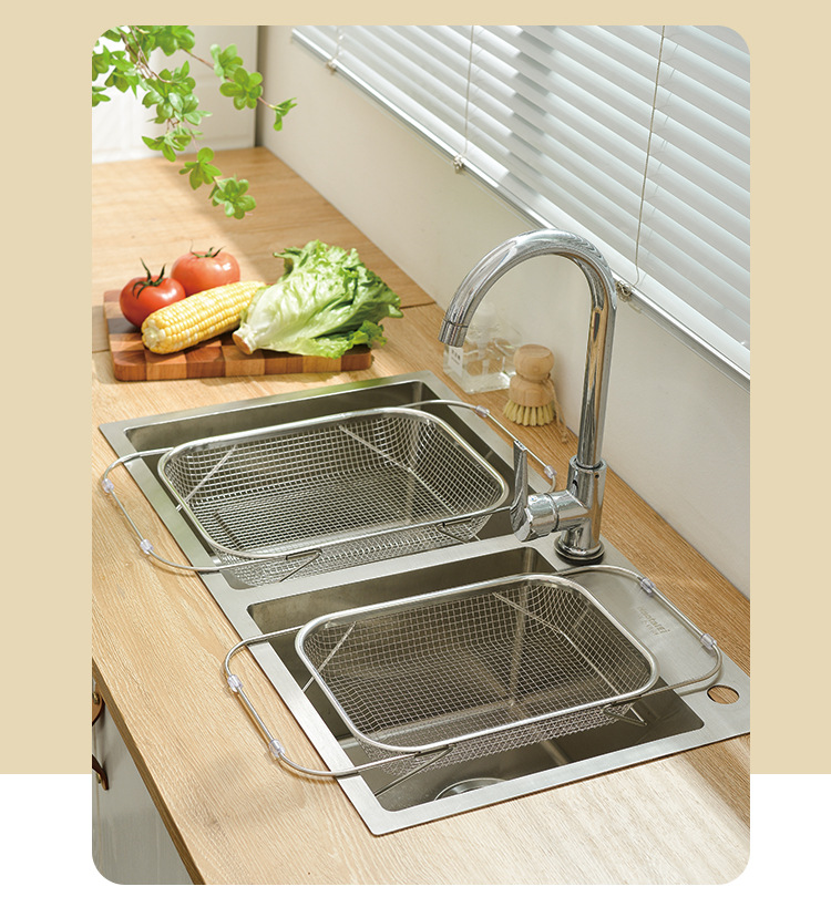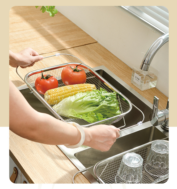 Корзина для слива фруктов с сетчатым фильтром, выдвижной таз для мытья овощей, кухонная раковина из нержавеющей стали 304, бытовая раковина.