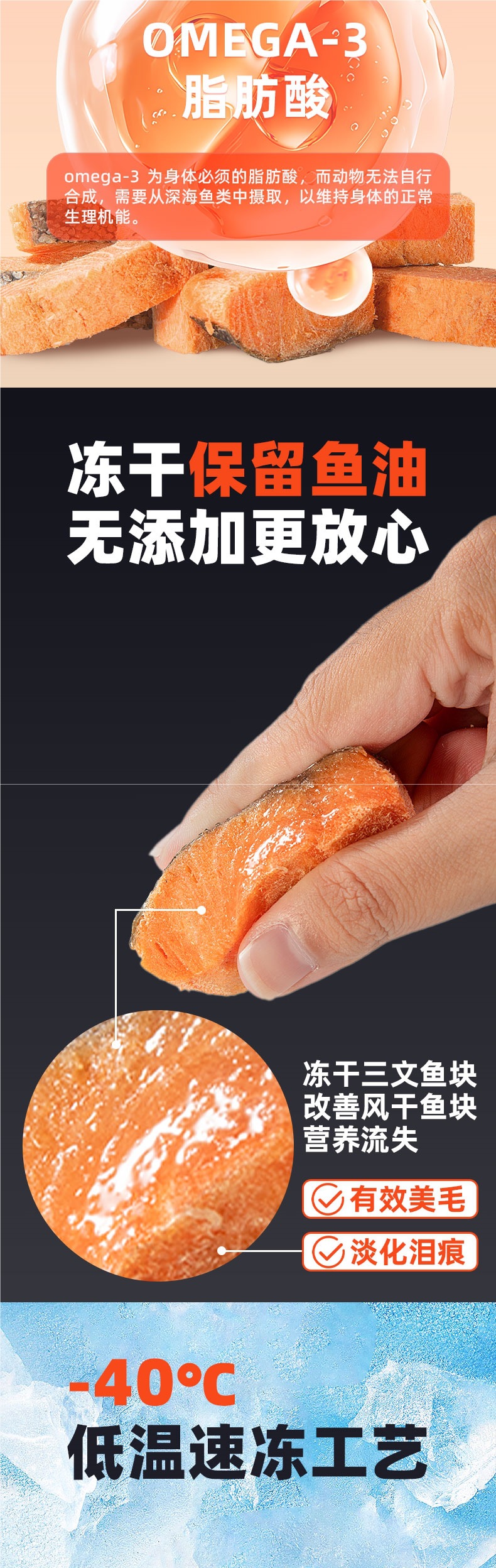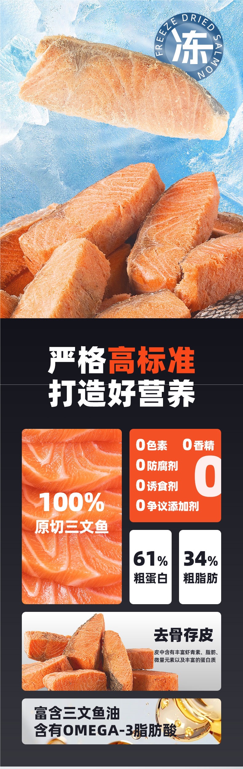Ледяные сушеные собачьи лакомства с лососем содержат много рыбного жира, украшают волосы, осветляют кожу, прибавляют вес и питают кусочки пищевой рыбы.