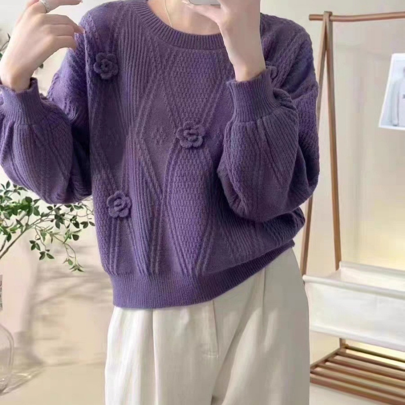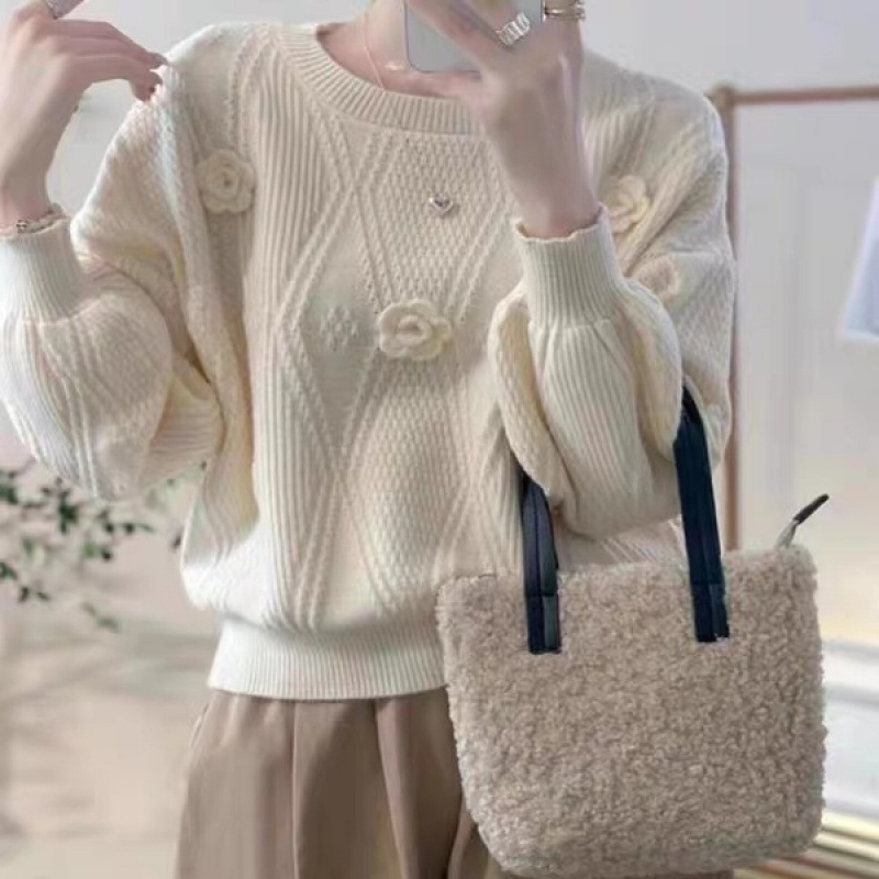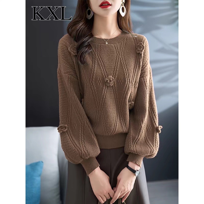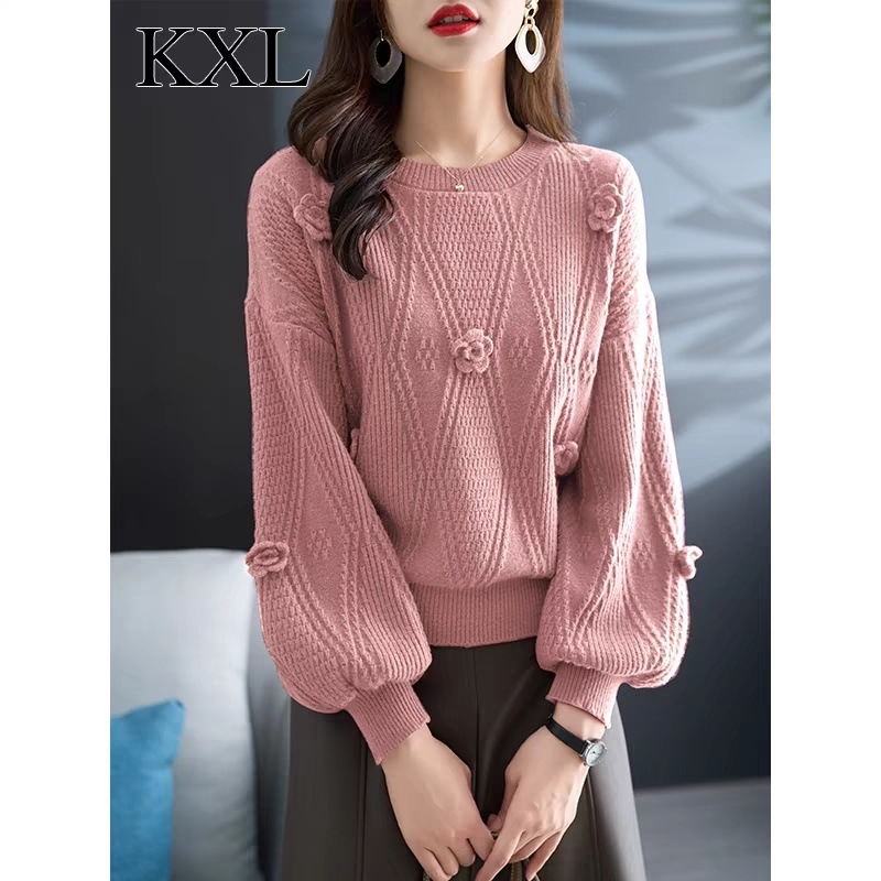 2025 новый осенне-зимний красивый красный свитер для женщин в год рождения, короткий свободный трикотаж с рукавами-фонариками