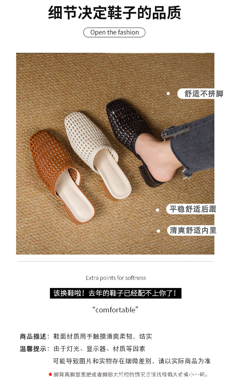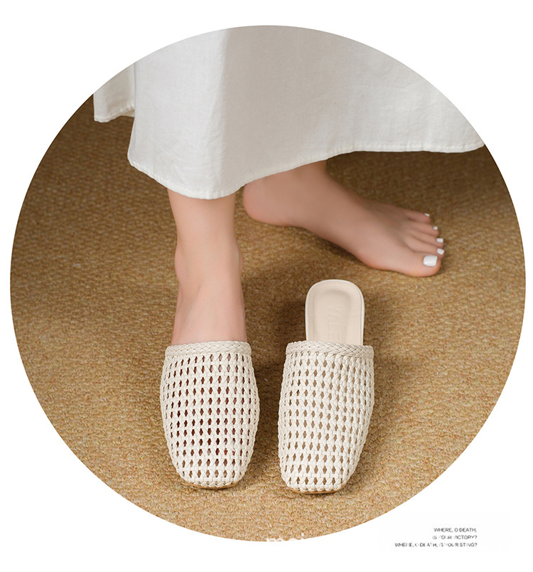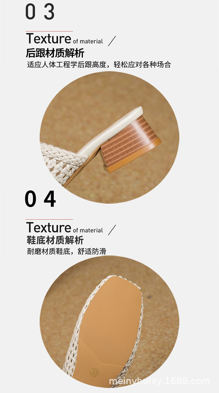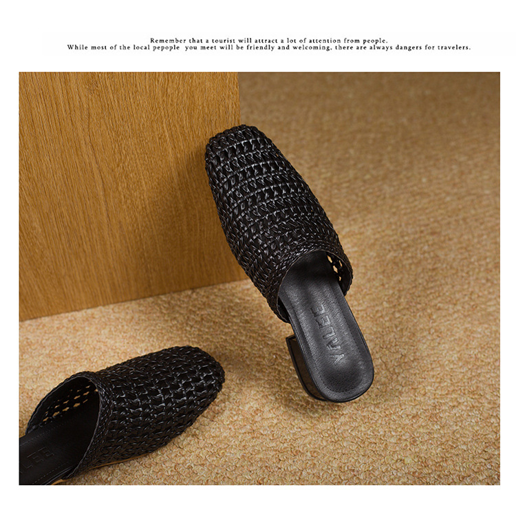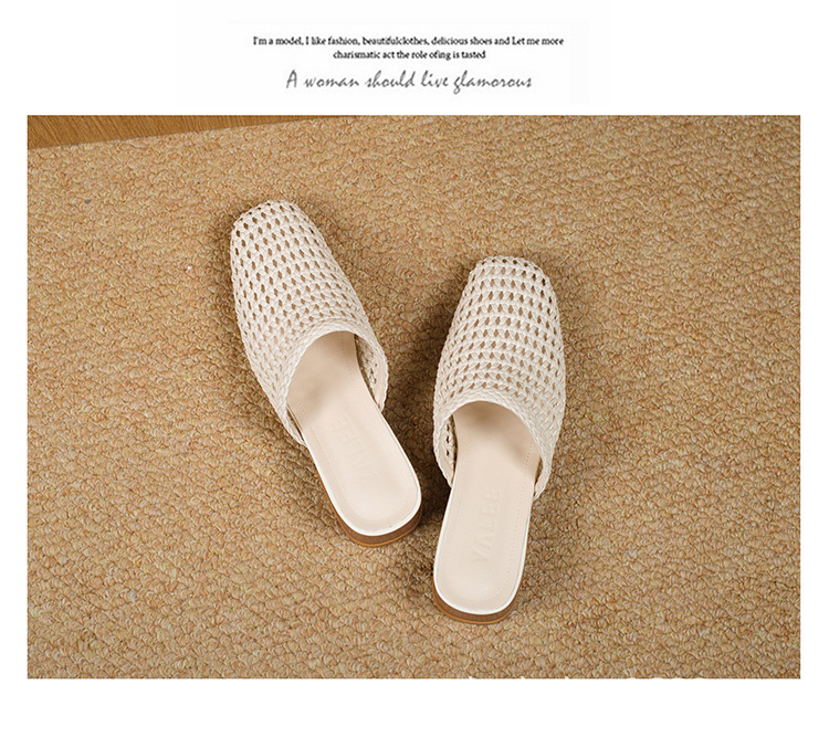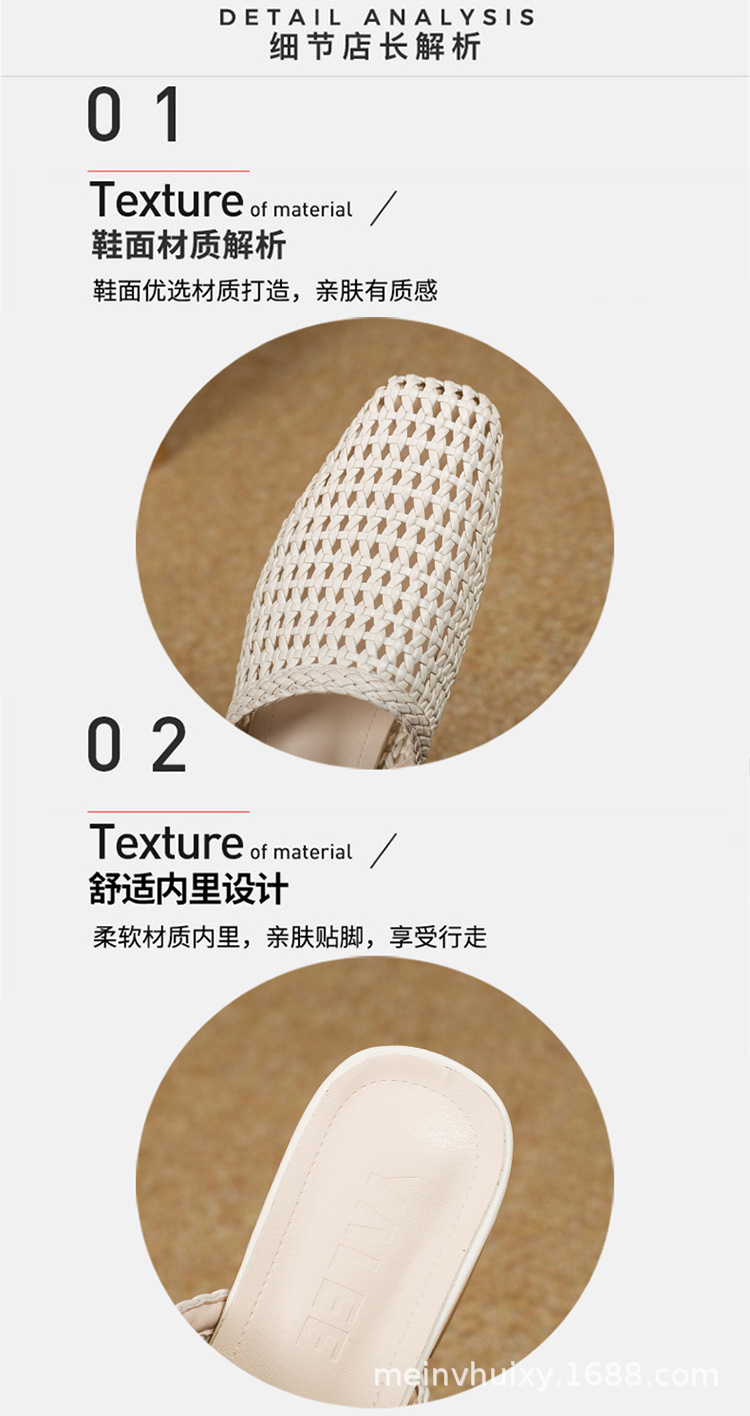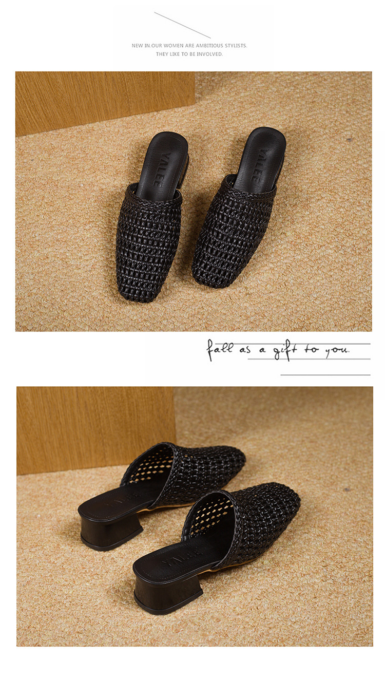 Женские плетеные сандалии с открытым носком, лето 2025, новая мода, дышащие, квадратный носок, средний толстый каблук, ажурные шлепанцы, кросс-граничная торговля