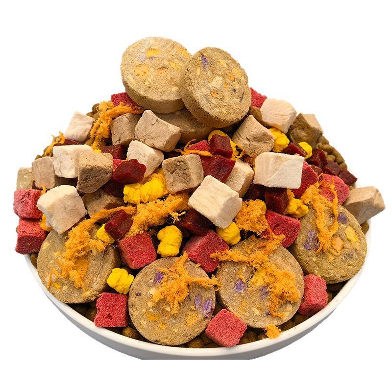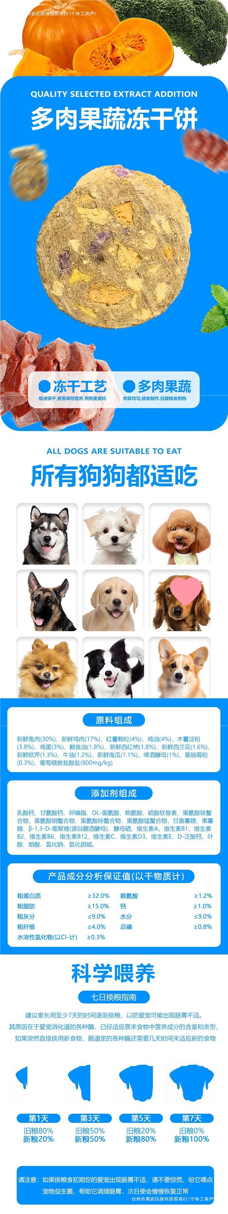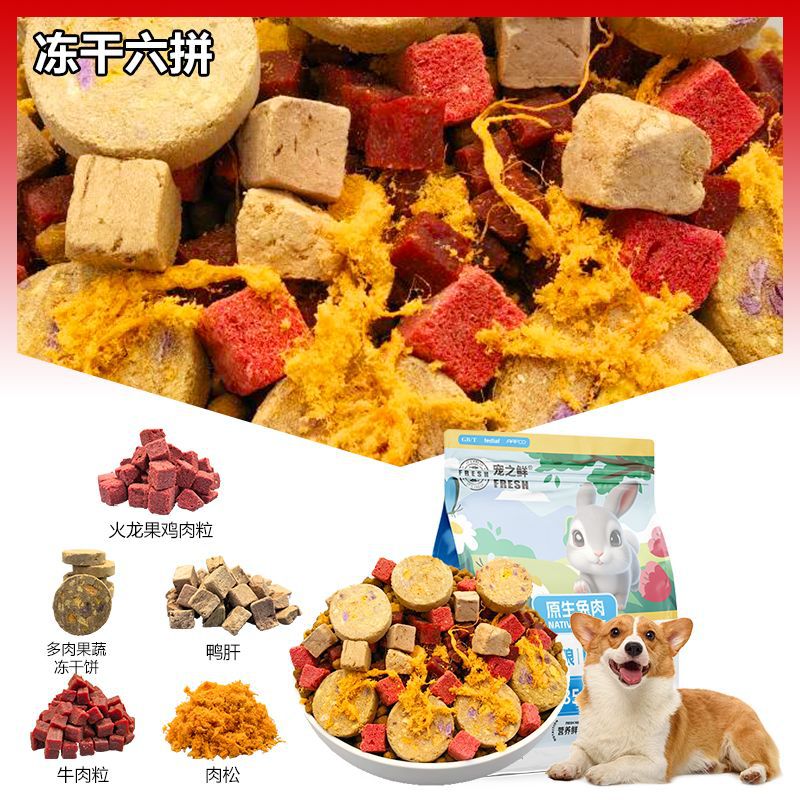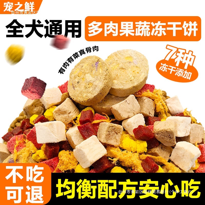 Лиофилизированные мясистые фрукты и овощи с комплексным питательным составом и лиофилизированные кексы с многосторонним питательным составом и хорошей вкусностью подходят для взрослых собак и щенков.