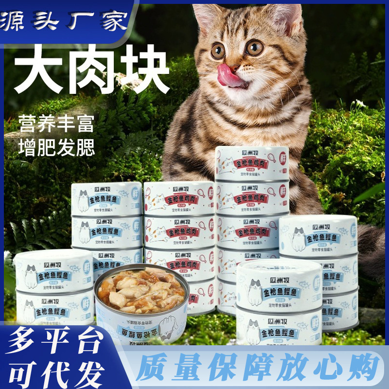 Кошачьи лакомства для взрослых и молодых кошек, влажный корм, свежие мясные полоски, 24 банки, целая коробка, пищевая добавка, откорм, консервированная основная еда для волосатых кошек.