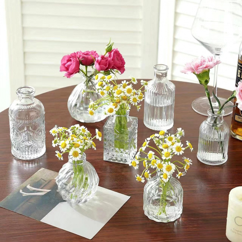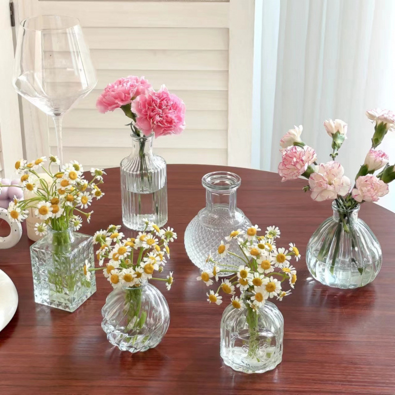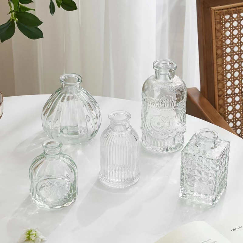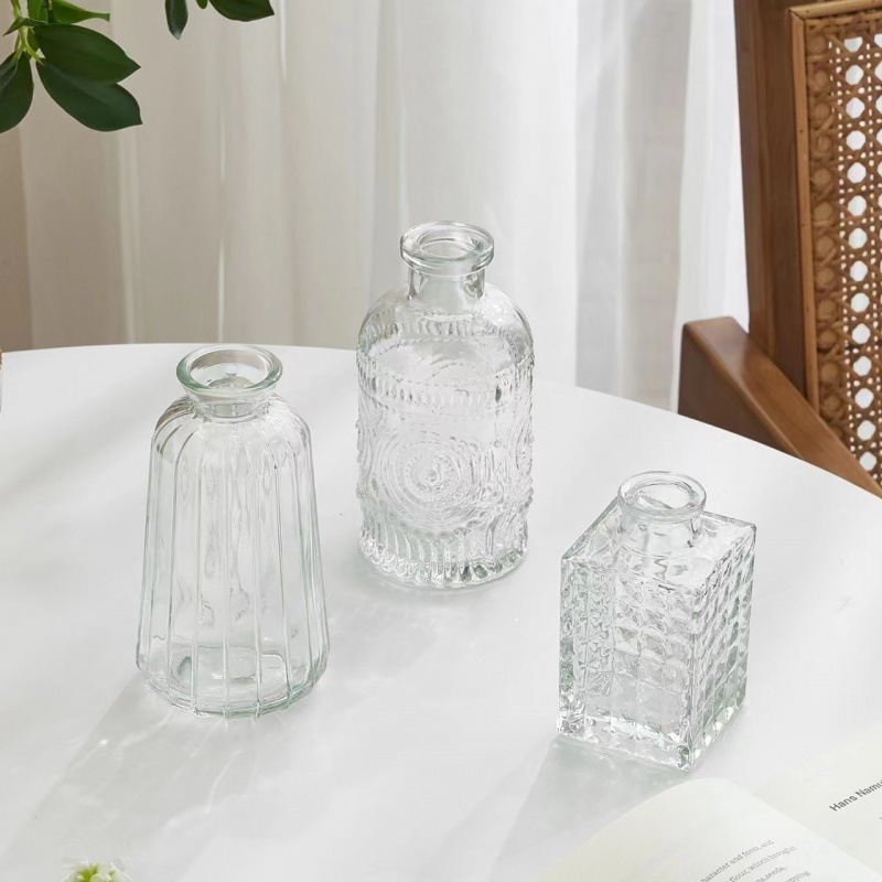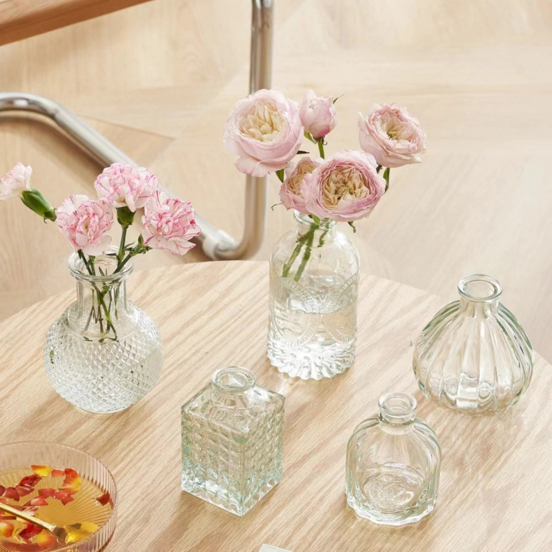 Прозрачная гидропонная ваза для цветов в стиле ins, настольное украшение, французский ретро-рельефный мини-стеклянный вазон
