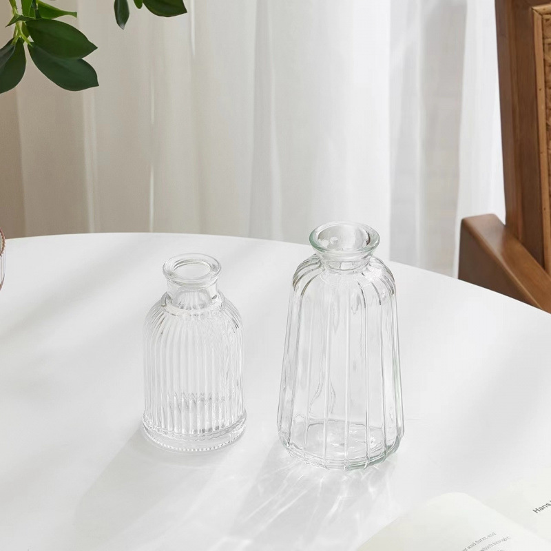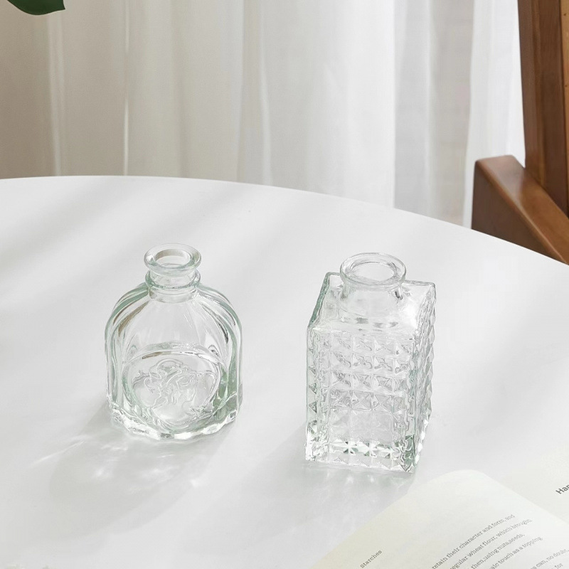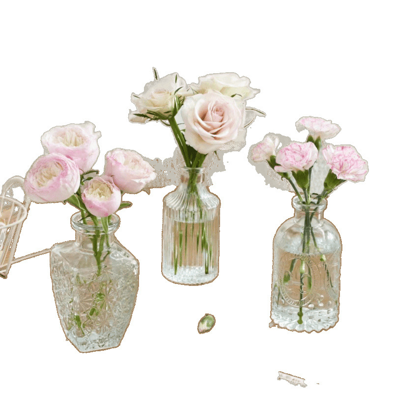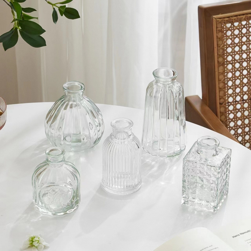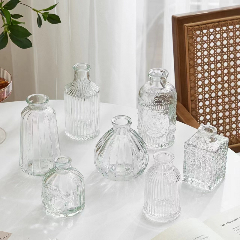 Прозрачная гидропонная ваза для цветов в стиле ins, настольное украшение, французский ретро-рельефный мини-стеклянный вазон