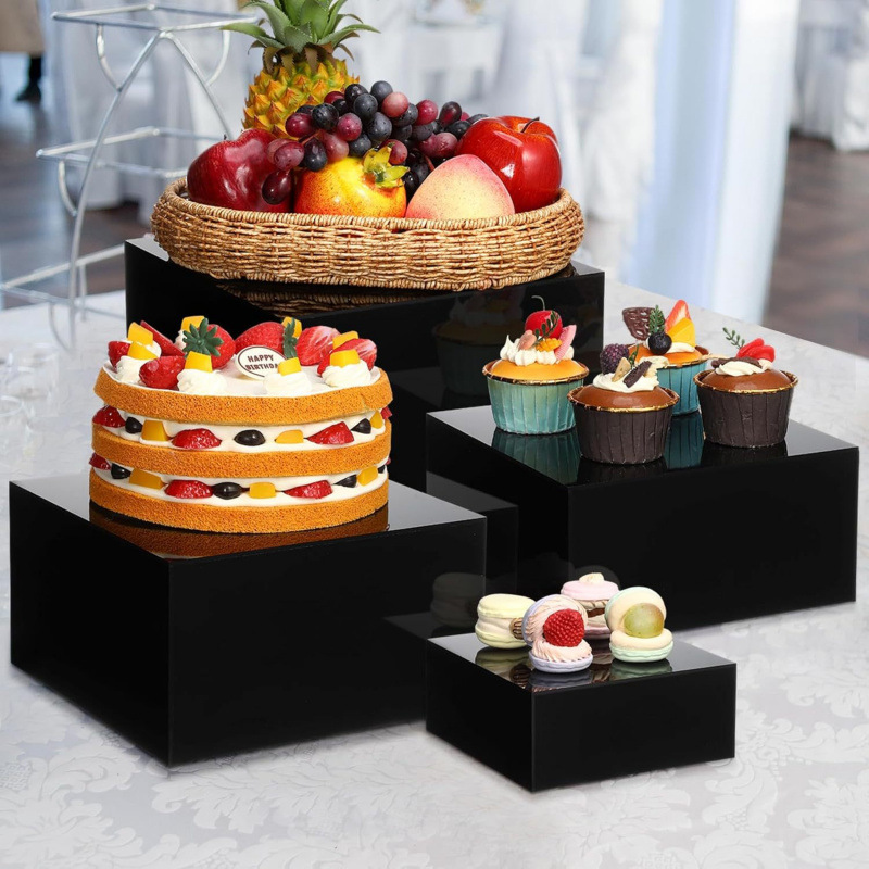 Акриловая пятисторонняя коробка для демонстрации, квадратная подставка для десертов, прозрачная подставка для закусок, подставка для послеобеденного чая, белая коробка для хранения
