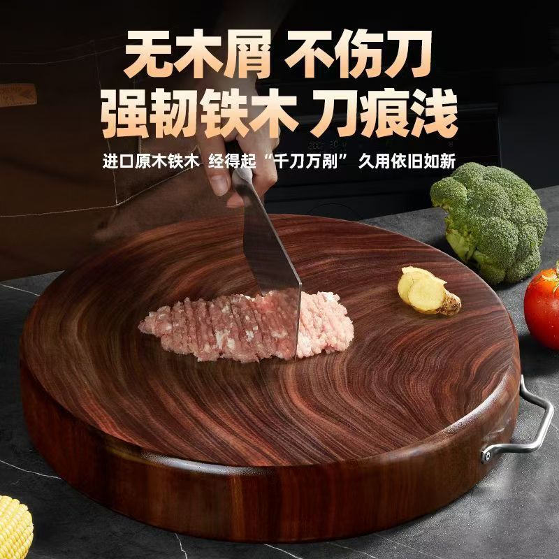 Аутентичная разделочная доска из железного дерева, утолщенная разделочная доска, антибактериальная и устойчивая к плесени разделочная доска, кухонная бытовая круглая разделочная доска из цельного дерева, очень толстая