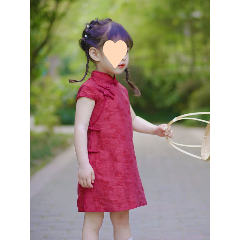 Летний тонкий костюм Cheongsam для маленьких девочек, детский костюм для выступлений, детское улучшенное красное банкетное платье в китайском стиле.