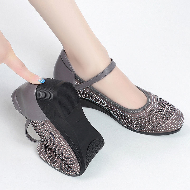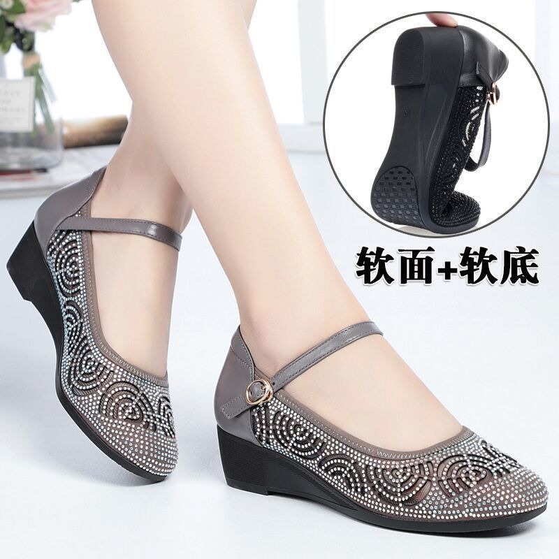 [Оптовая цена производителя] 2024 весна-осень новый стиль туфли на платформе с пряжкой для мам мягкая подошва нескользящие туфли с вырезами