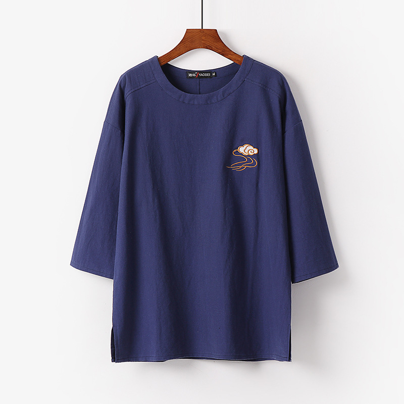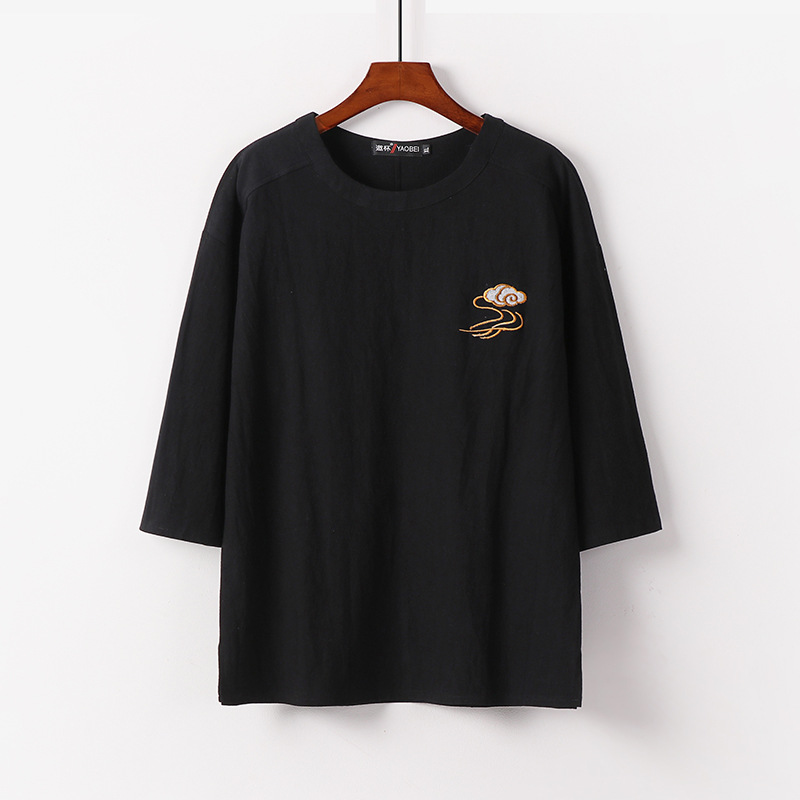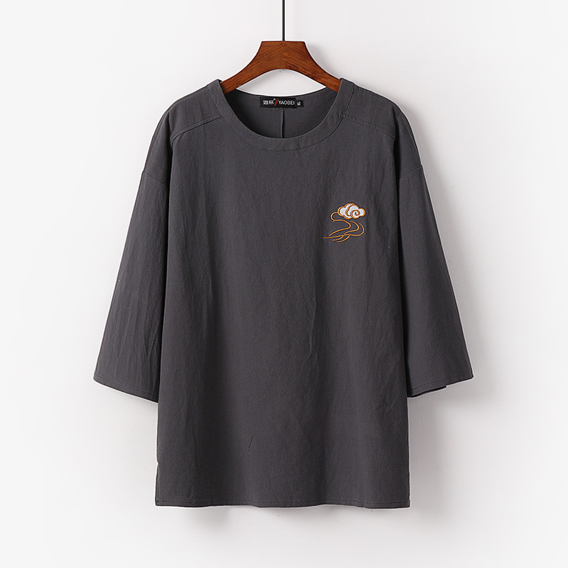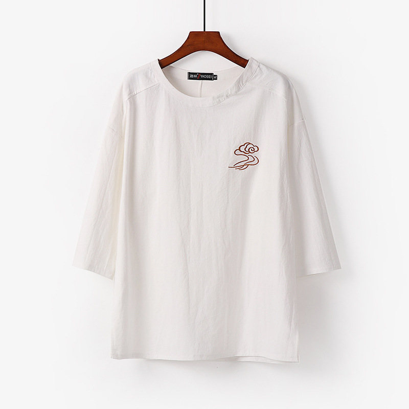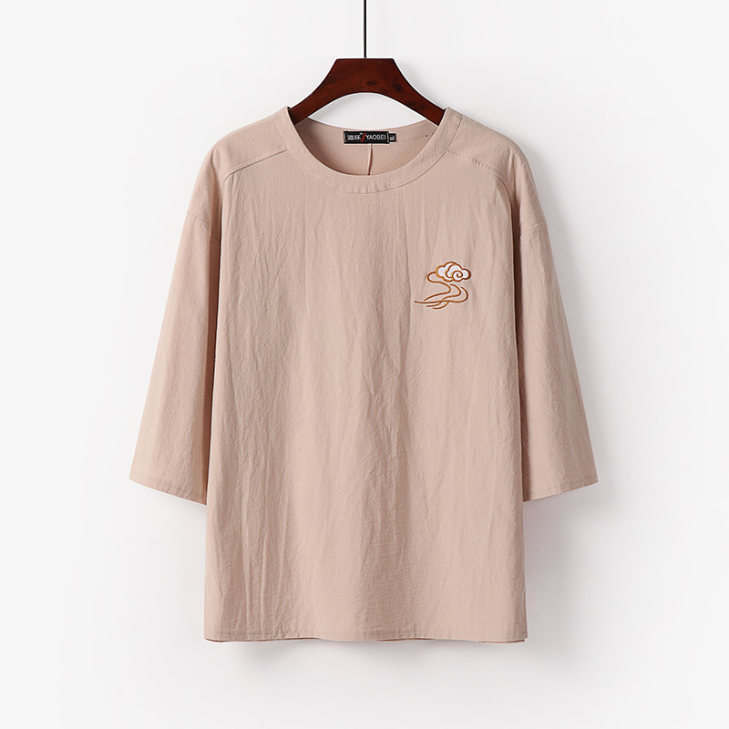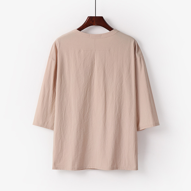 Костюм Тан в древнем стиле, льняная футболка с короткими рукавами, мужские свободные топы из хлопка и льна в китайском стиле, модные летние большие размеры 7, три четверти с половиной рукавов