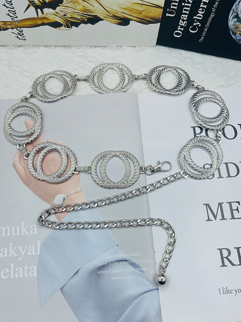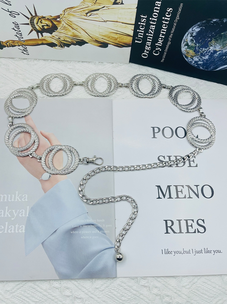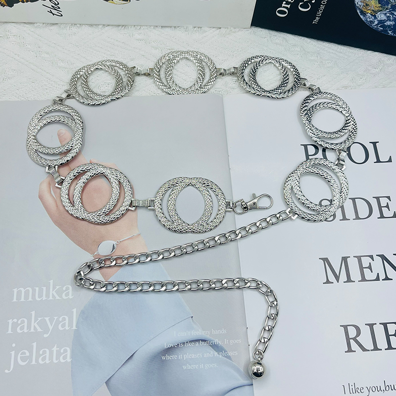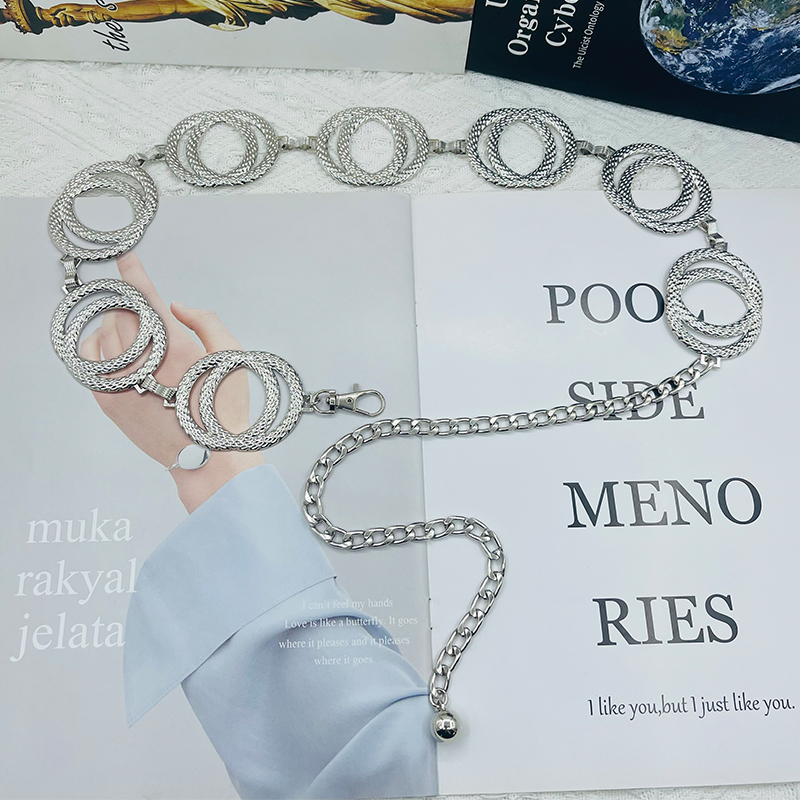 Европейская и американская металлическая двойная цепочка с двойным кольцом, серебряный ремень, женская универсальная цепочка на талию, аксессуары, платье, модный пояс