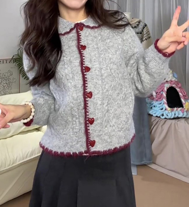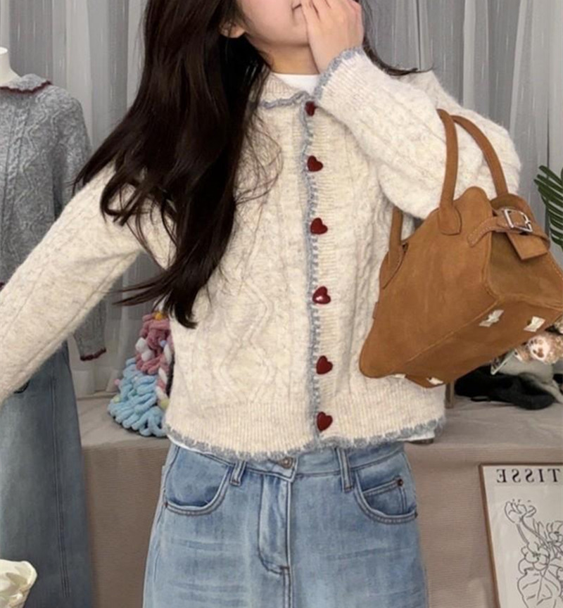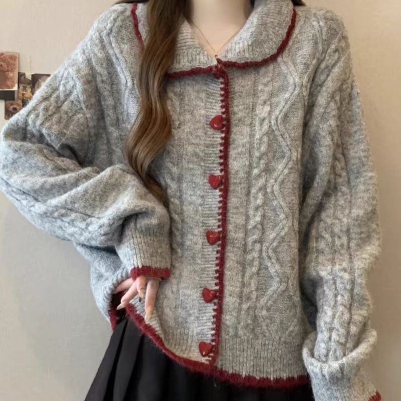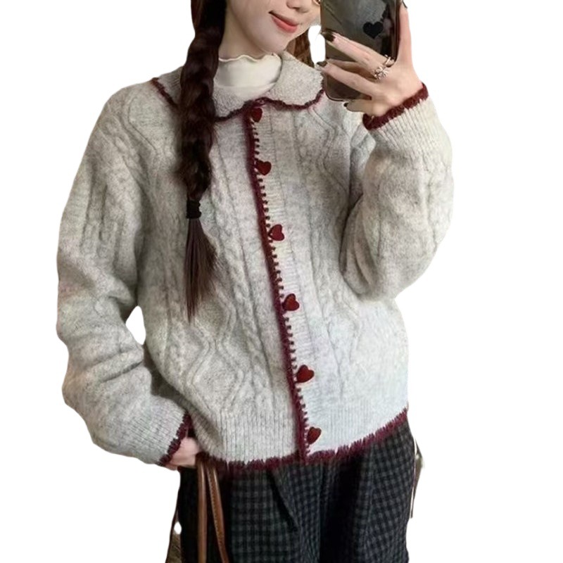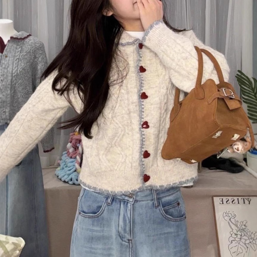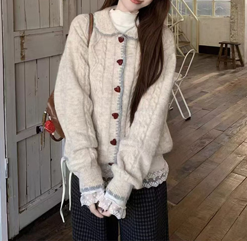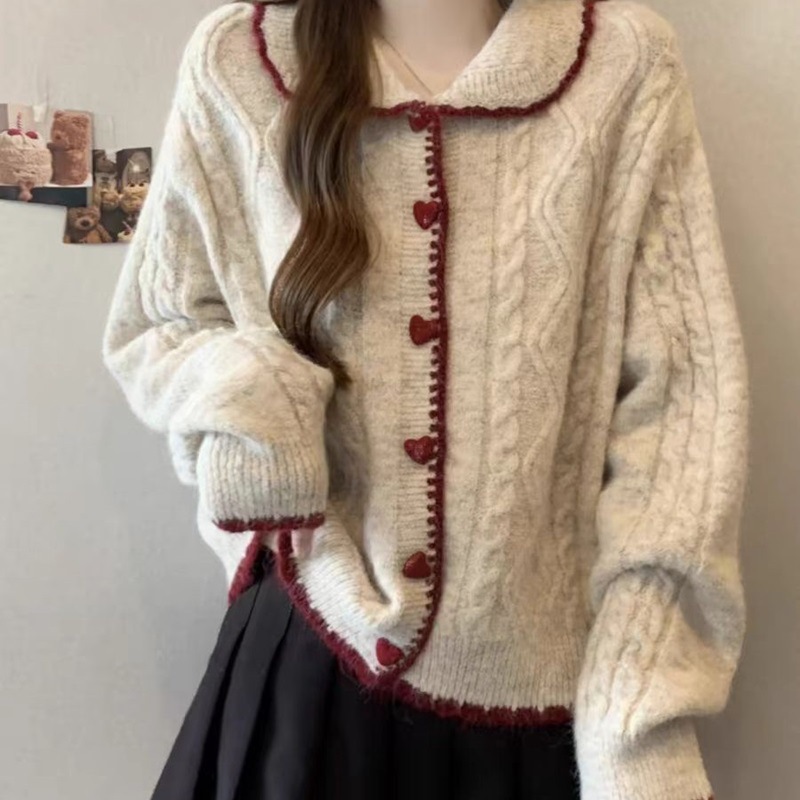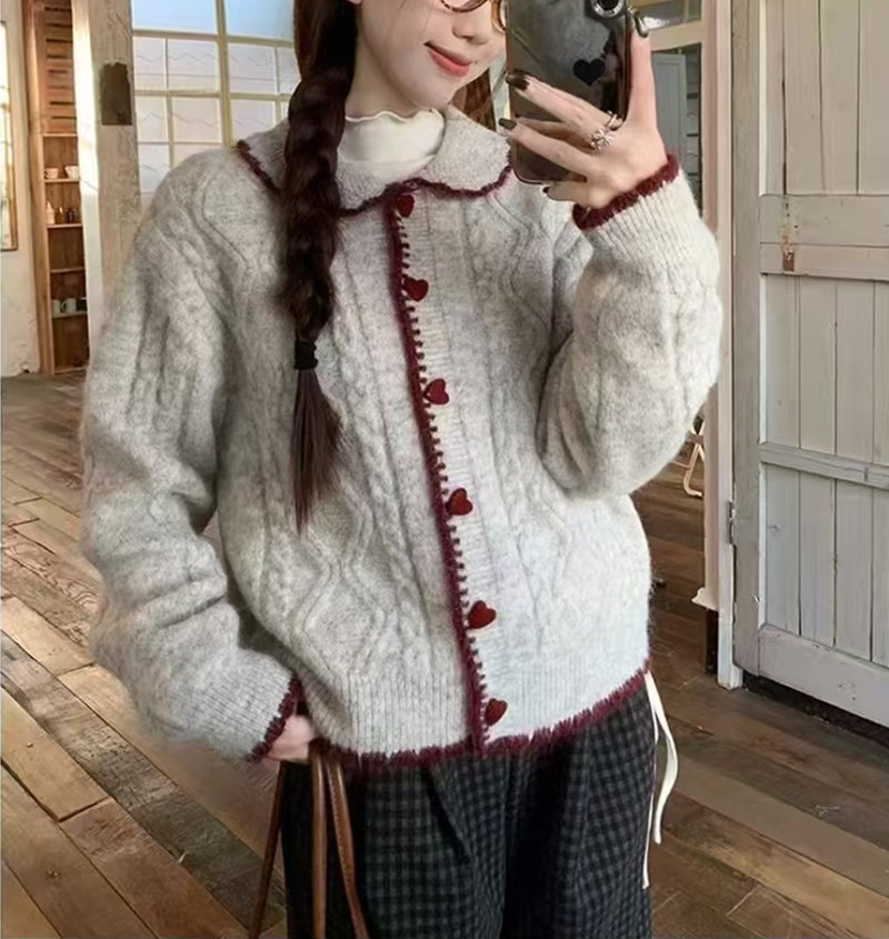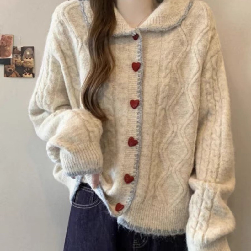 Вязаный кардиган с кукольным воротником в студенческом стиле для женщин осенью и зимой, свободный мягкий восковой свитер с длинными рукавами и внутренним верхом