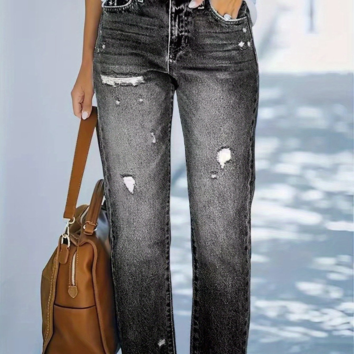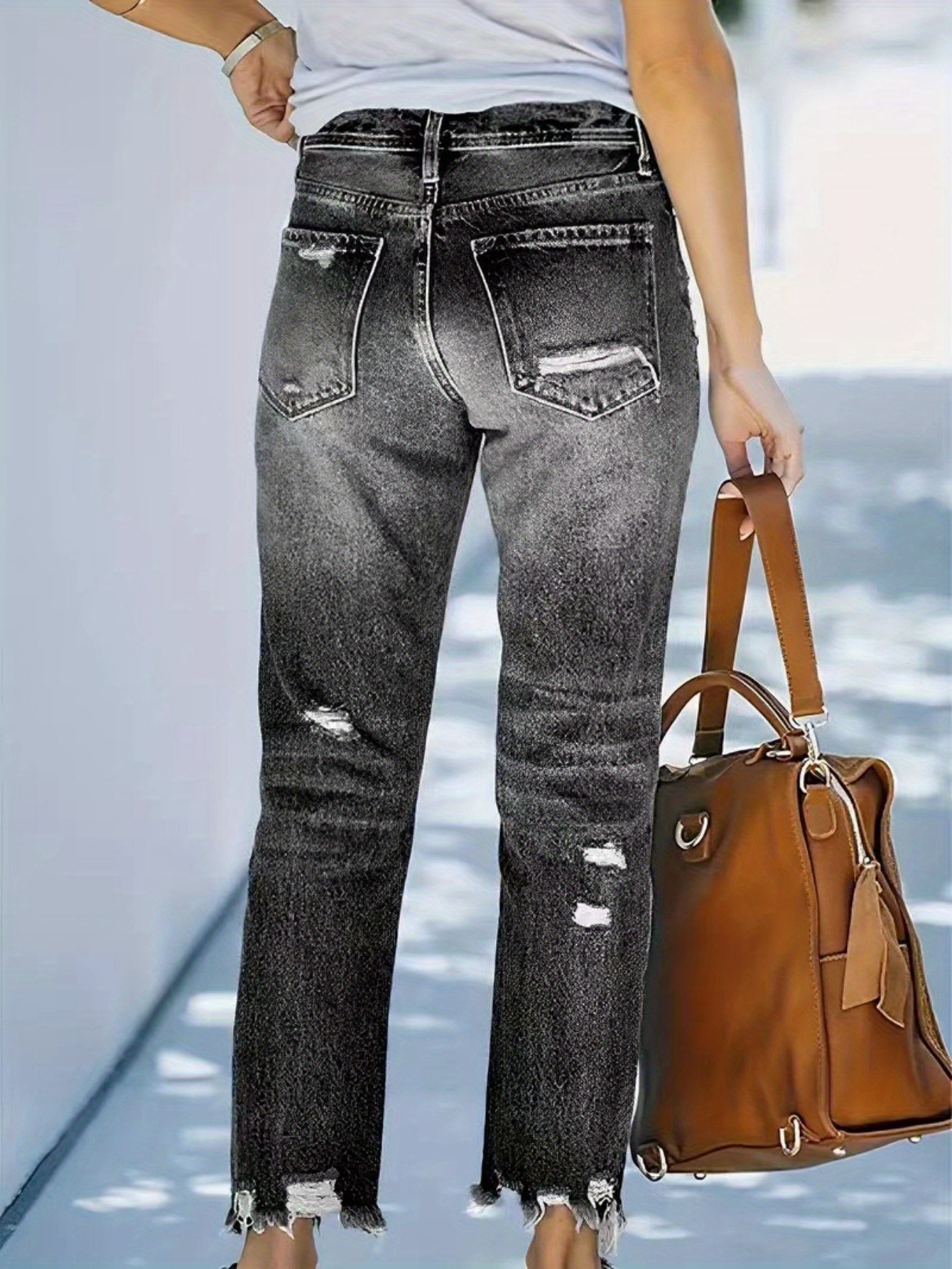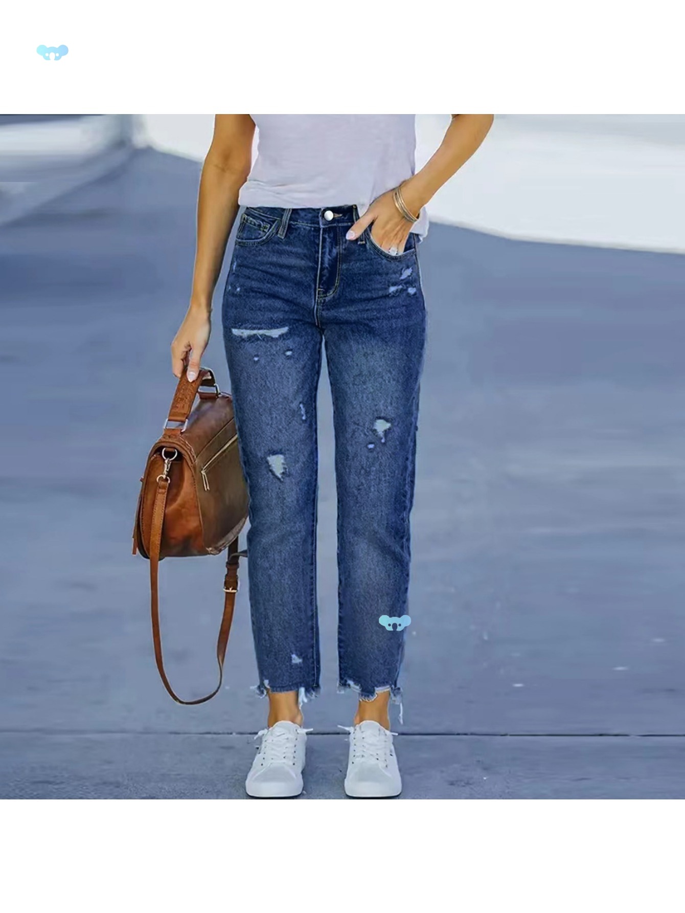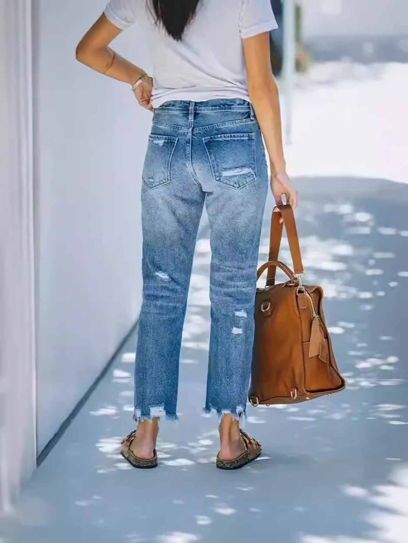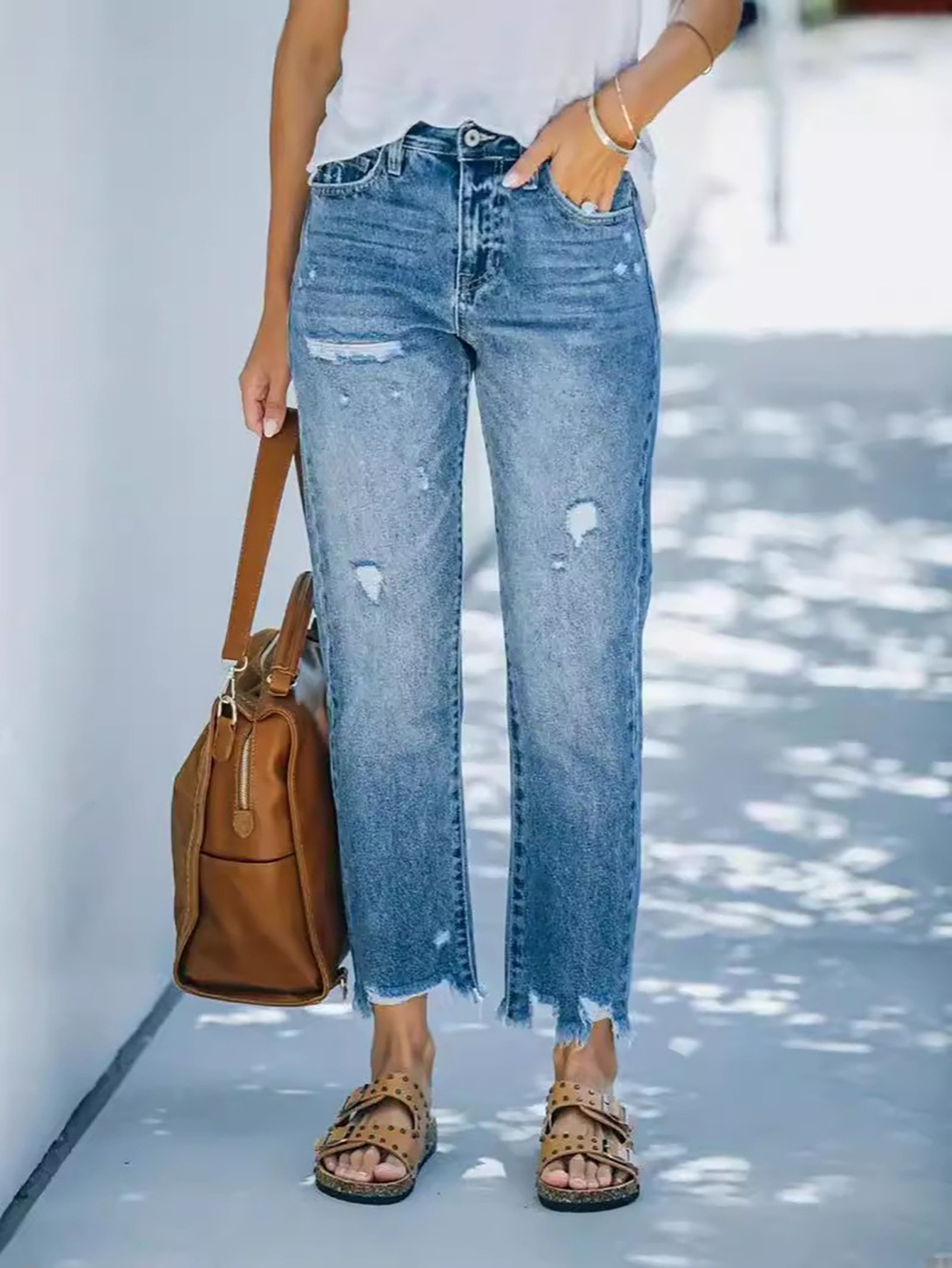 Рваные укороченные джинсы в европейско-американском стиле: женские повседневные