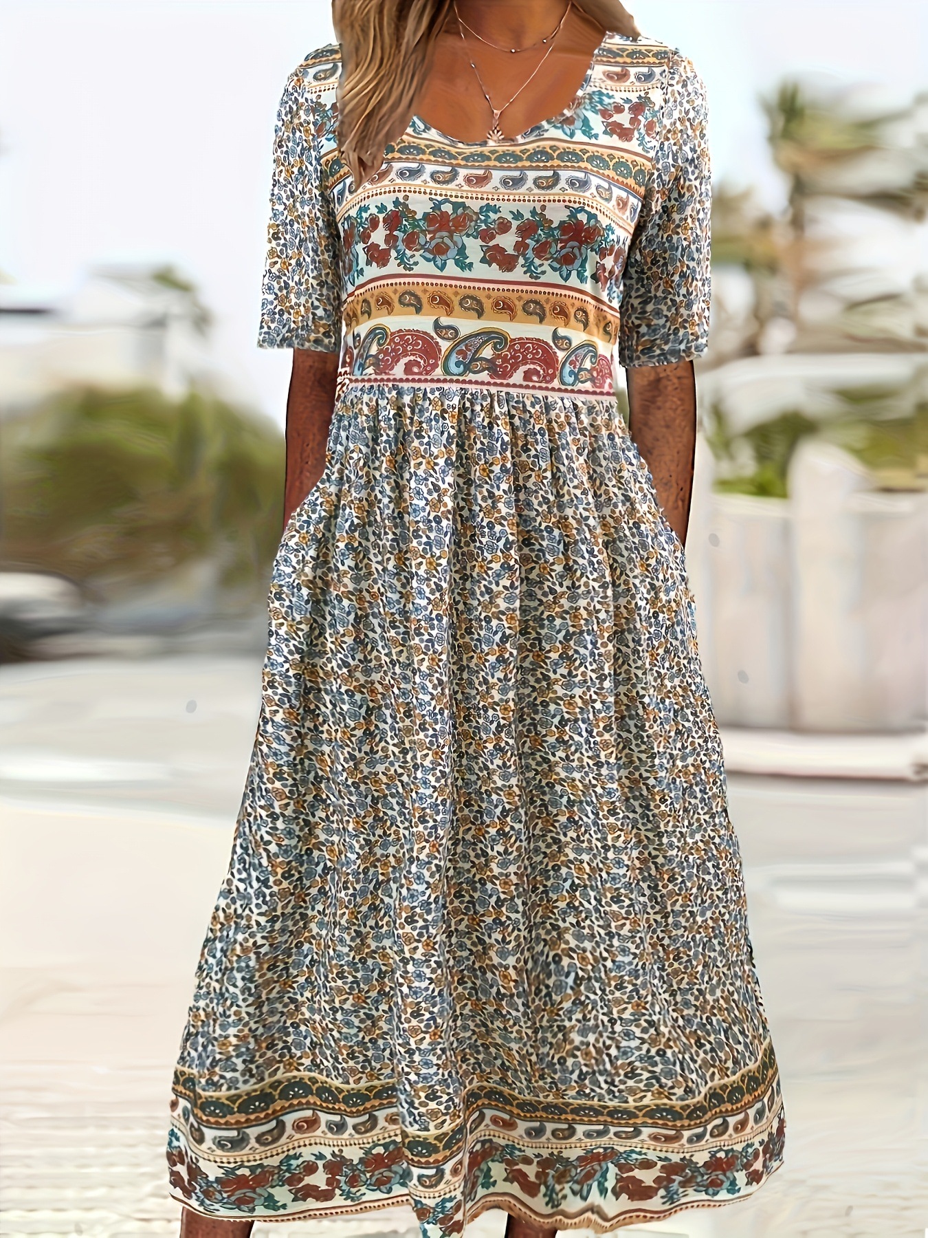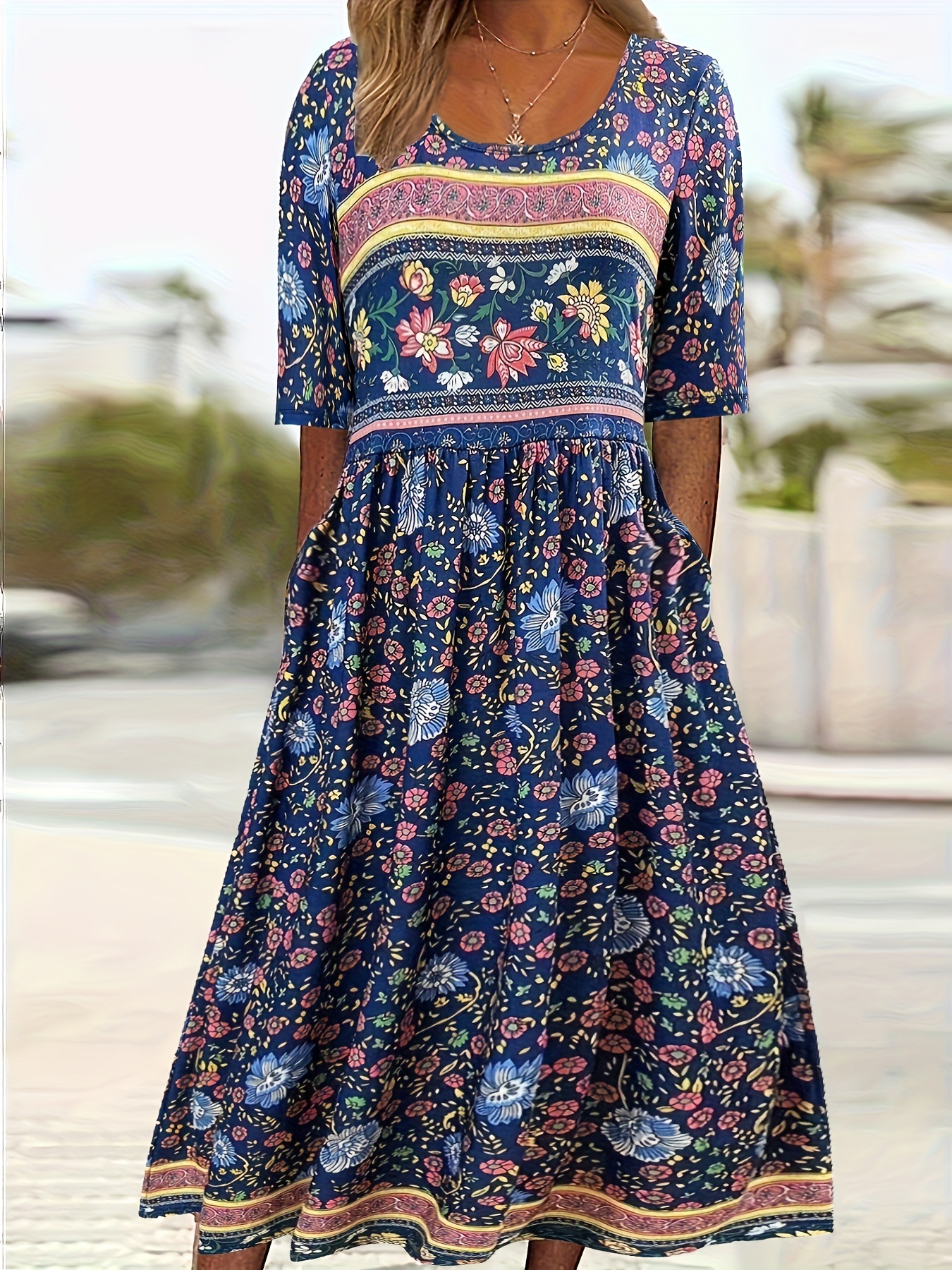 Платье с цветочным принтом Легкое дышащее платье с цветочным принтом