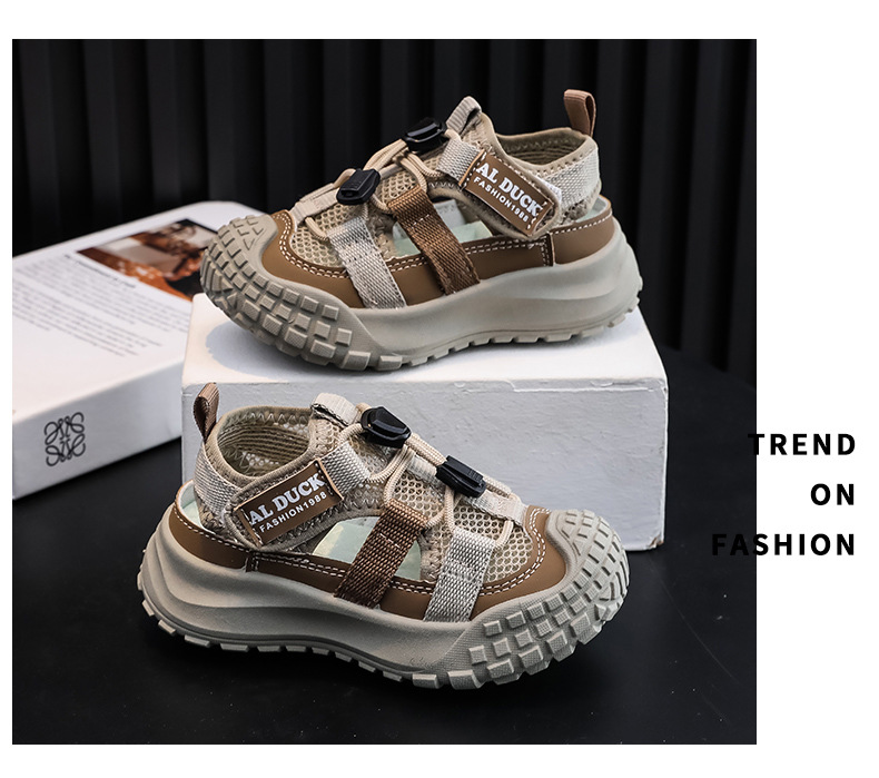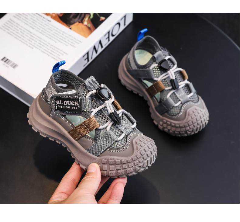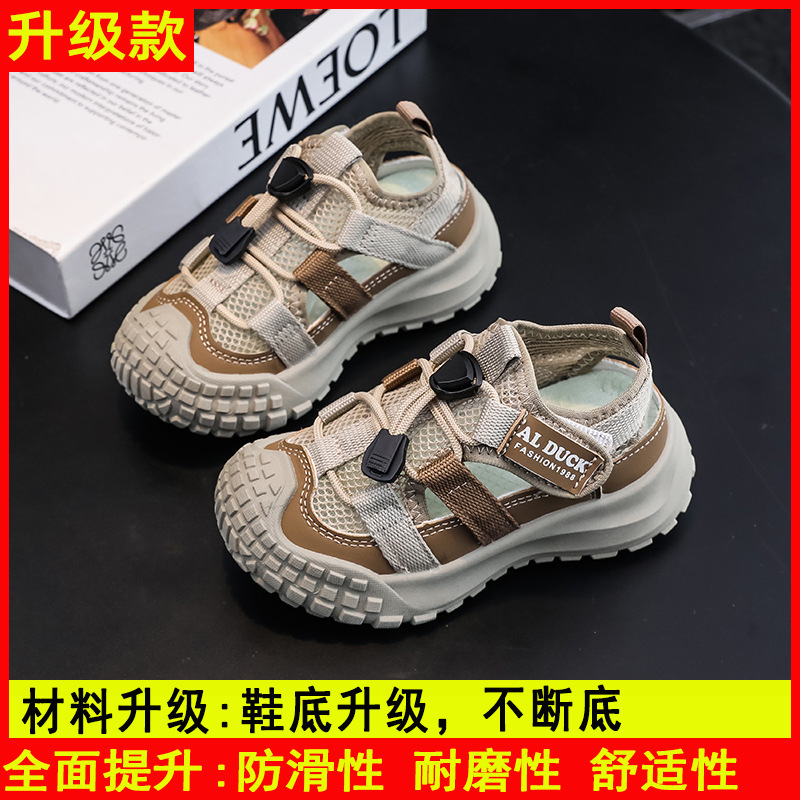 Сандалии для мальчиков 2025 Новые летние корейские стильные туфли для маленьких мальчиков Повседневная обувь с мягкой подошвой Детские пляжные туфли Модные