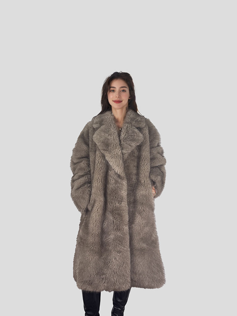 Трансграничная горячая распродажа: новинка зимы 2025 года, европейские и американские женские ретро-пальто из искусственного меха, свободного кроя, удлиненные, теплые, верхняя одежда.
