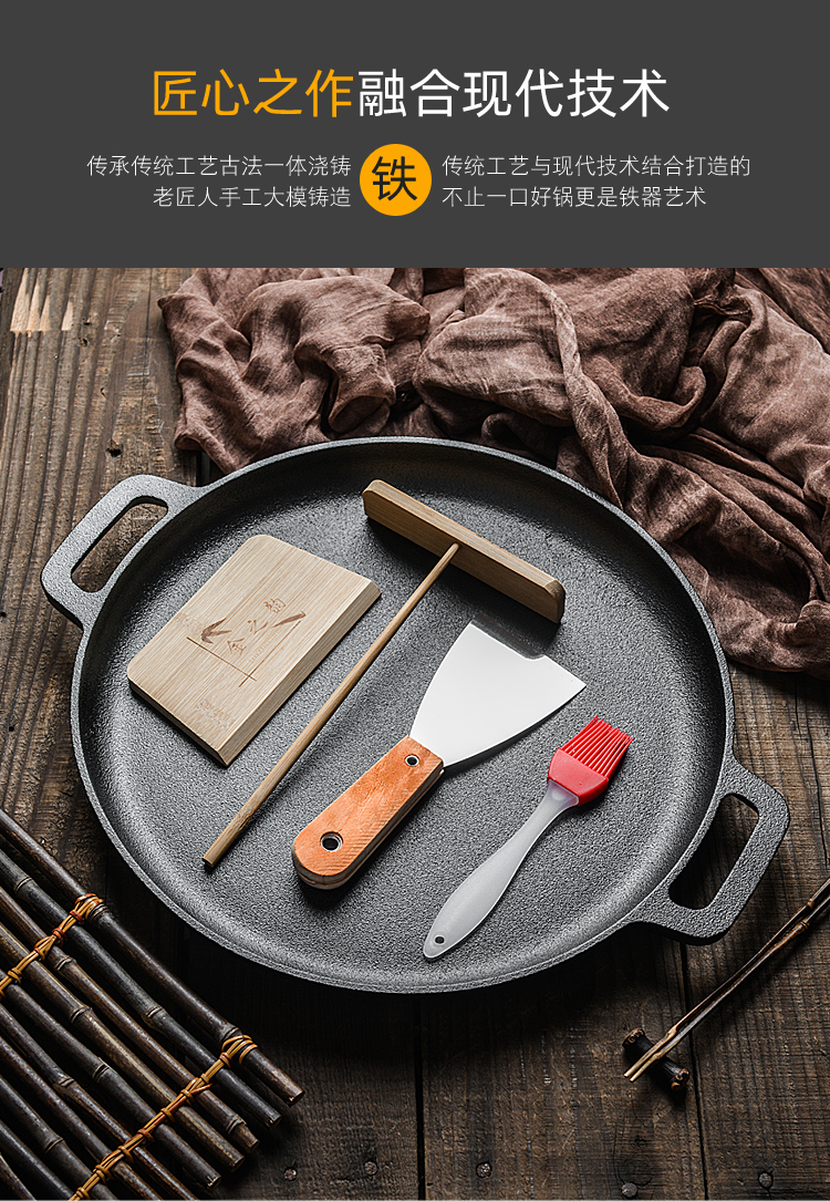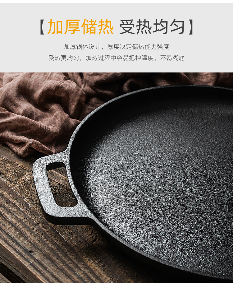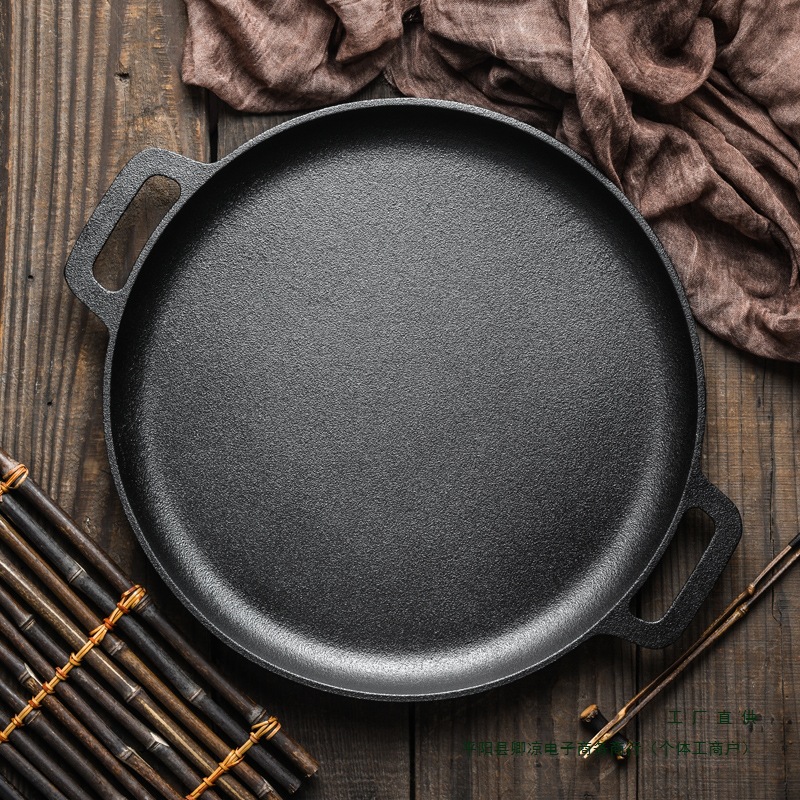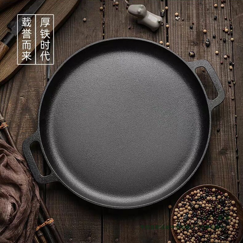 Утолщенная сковорода для блинов, чугунная сковорода с двумя ручками, сковорода без покрытия, ручная сковорода для блинов, чугунная бытовая сковорода для блинов, антипригарная сковорода