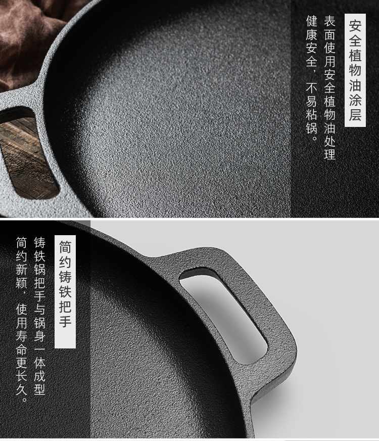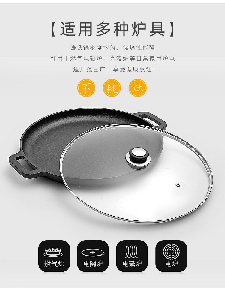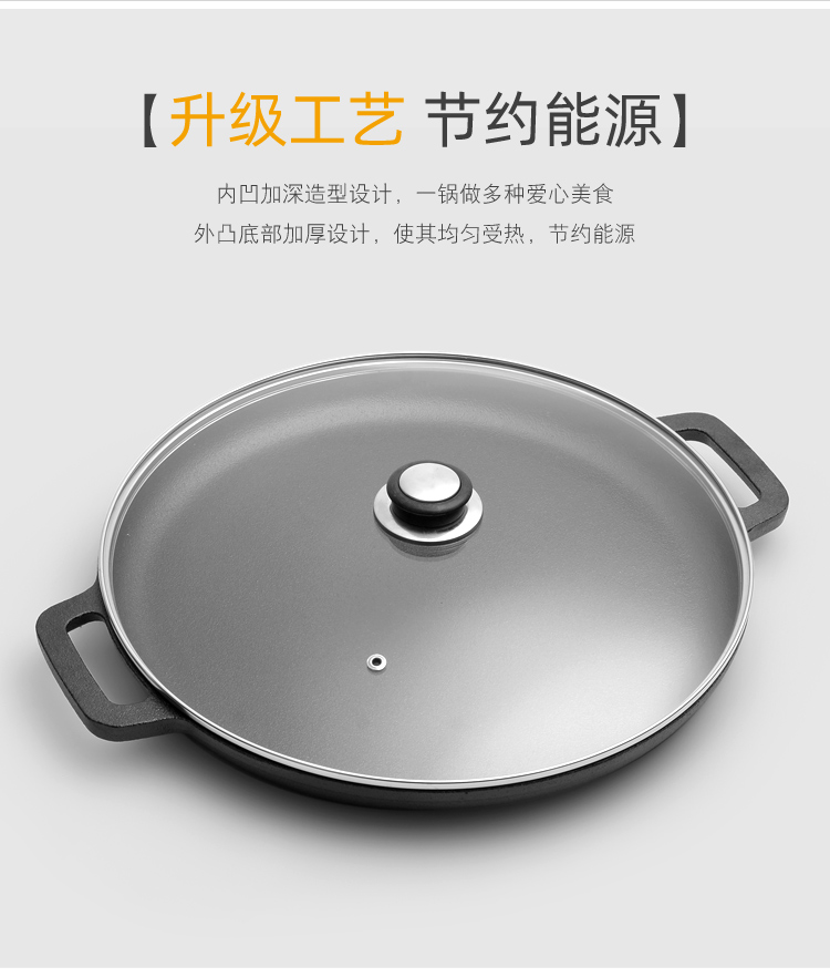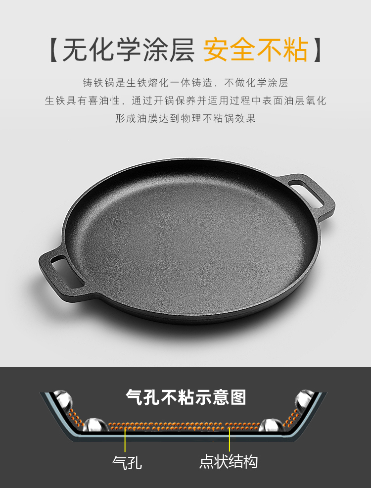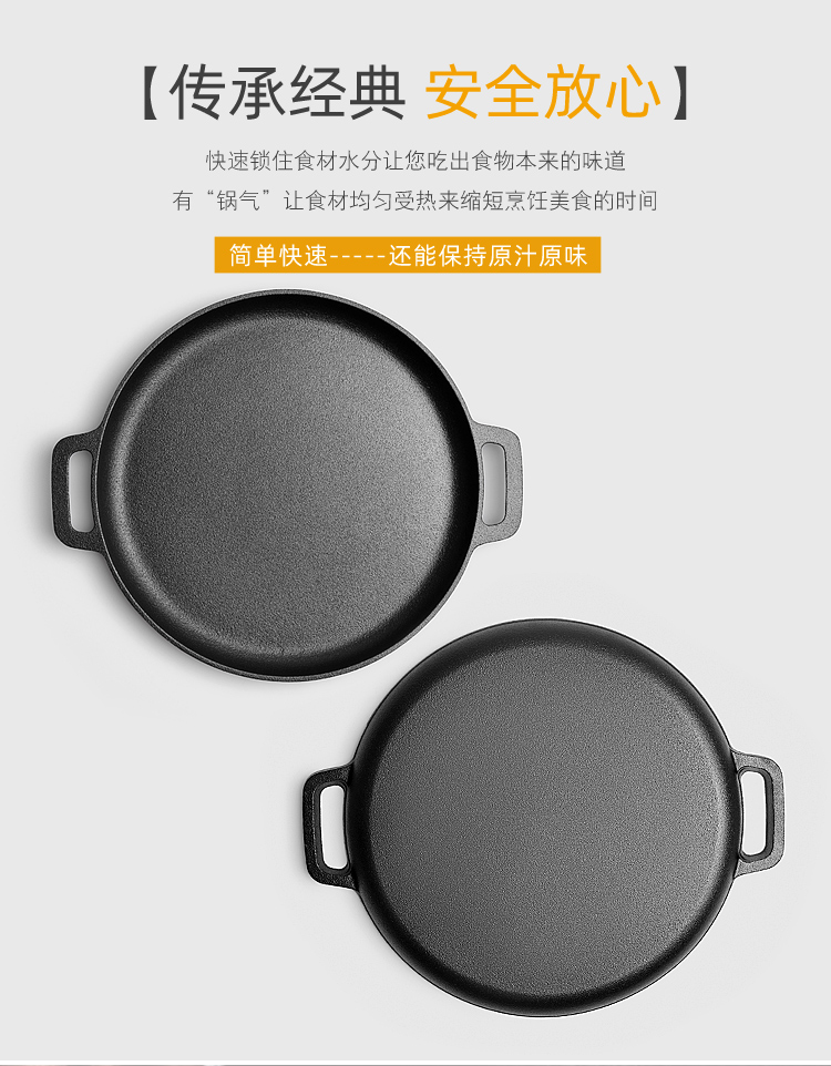 Утолщенная сковорода для блинов, чугунная сковорода с двумя ручками, сковорода без покрытия, ручная сковорода для блинов, чугунная бытовая сковорода для блинов, антипригарная сковорода
