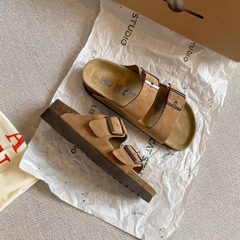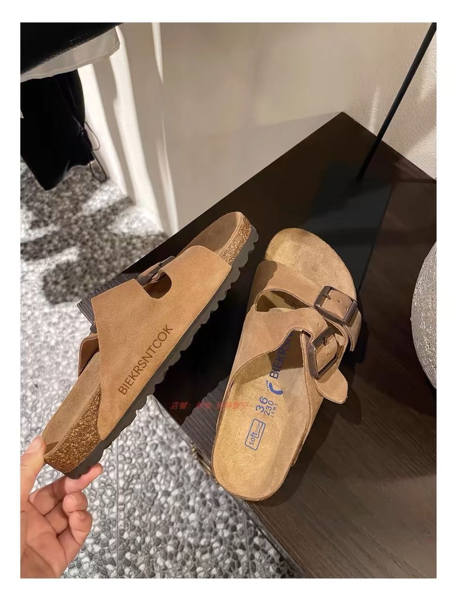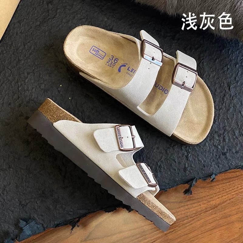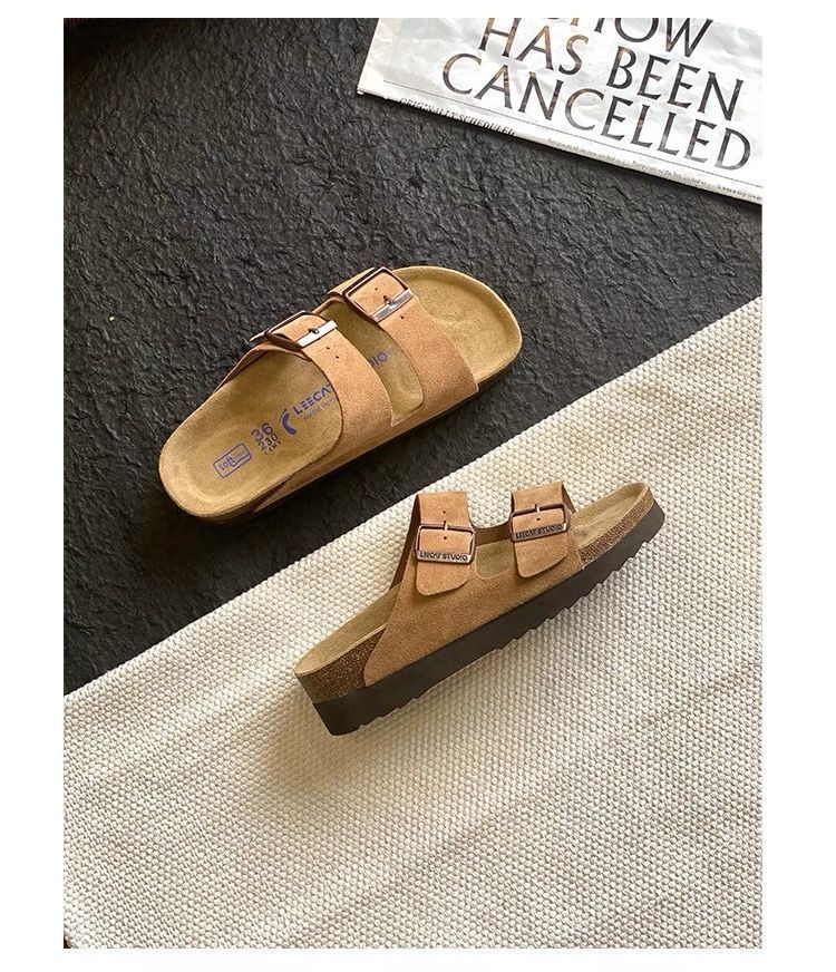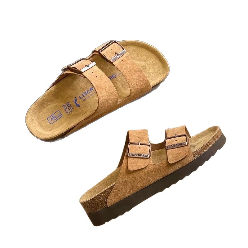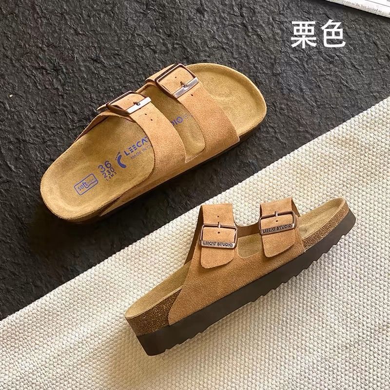 Универсальные женские полутапочки из мягкой кожи, увеличивающие рост, сандалии Birkenstock на платформе с толстой подошвой, женские весенне-летние сандалии Birkenstock в стиле ретро 2025 года.