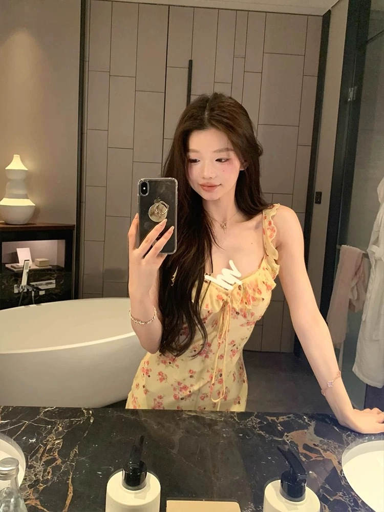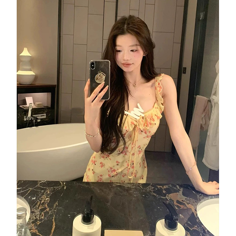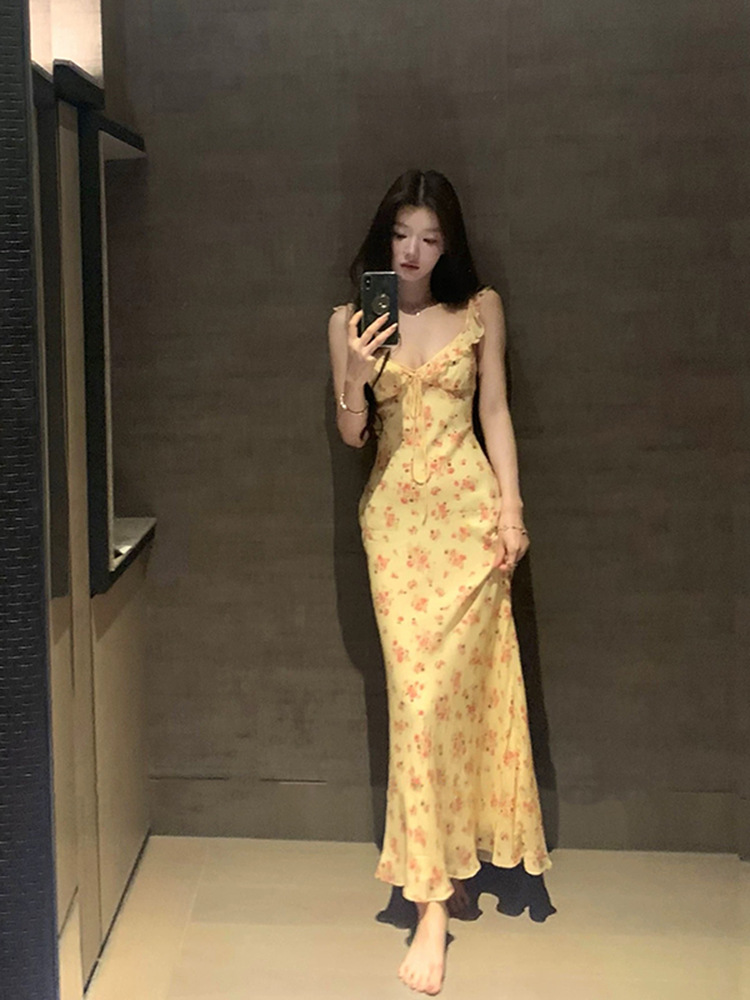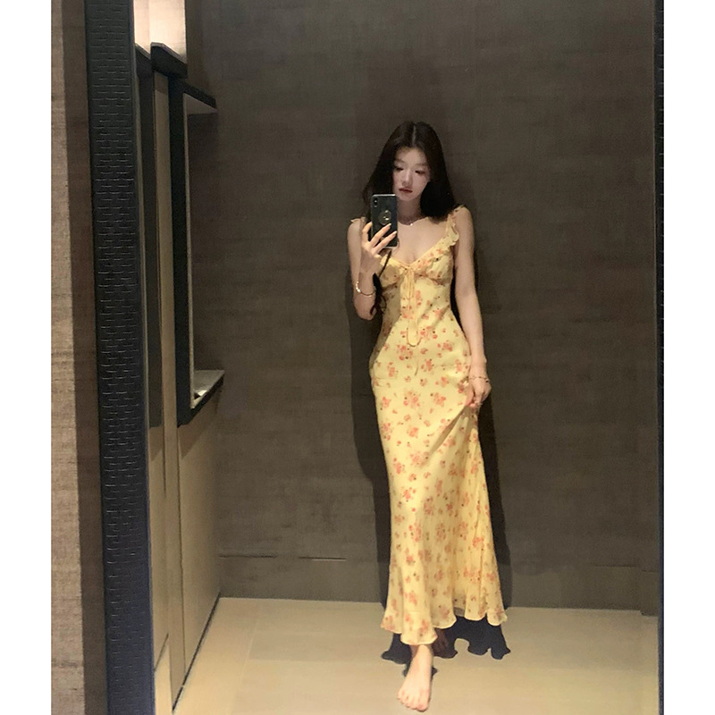 Французское ретро-платье без рукавов с цветочным принтом на подтяжках, женское новое летнее платье в курортном стиле, утягивающая юбка «рыбий хвост»