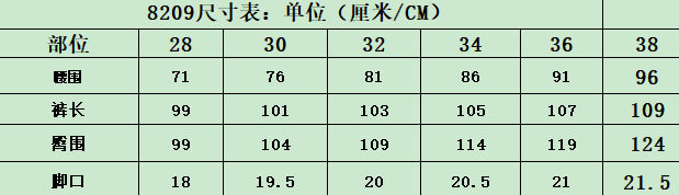 28 (европейский код); 30 (европейский размер); 32 (европейский код); 34 (европейский код); 36 (европейский код); 38 (европейский код)
