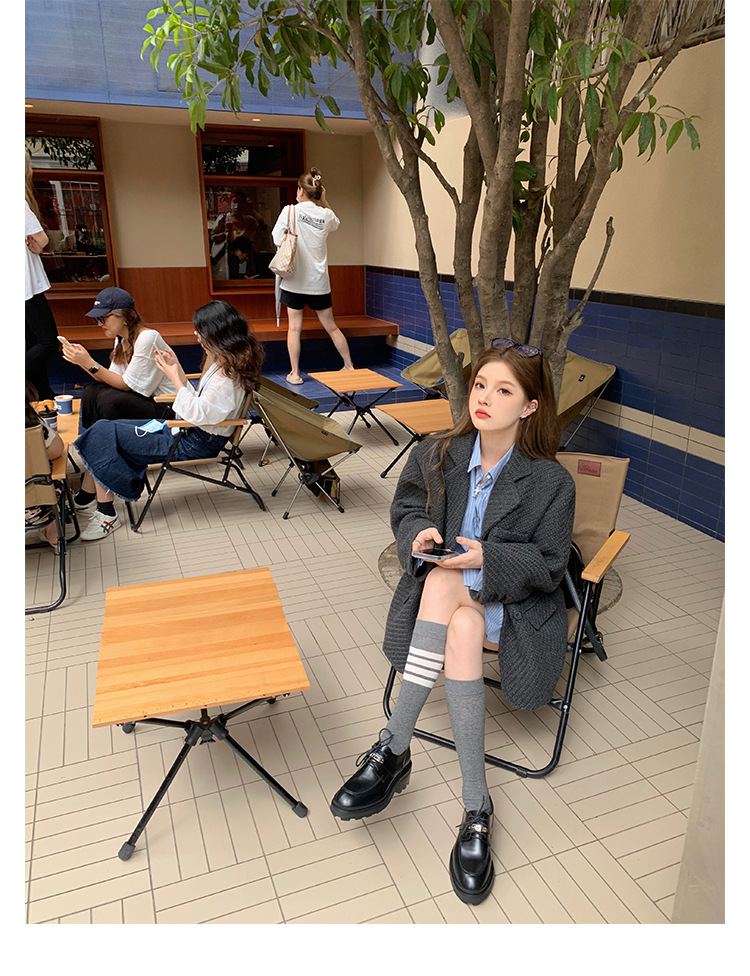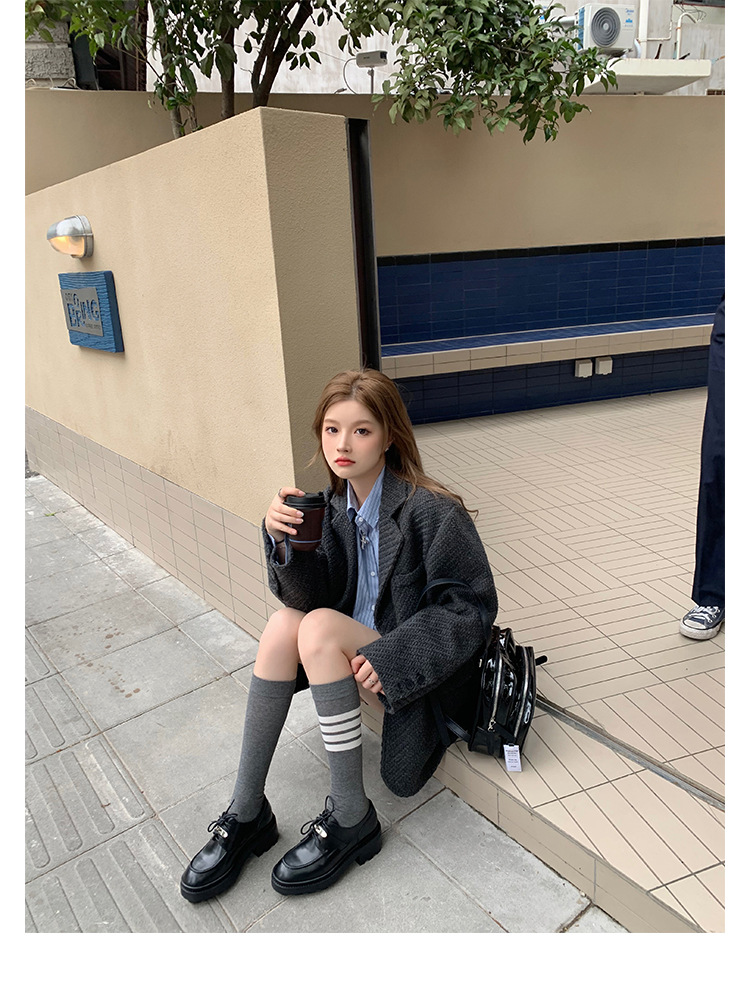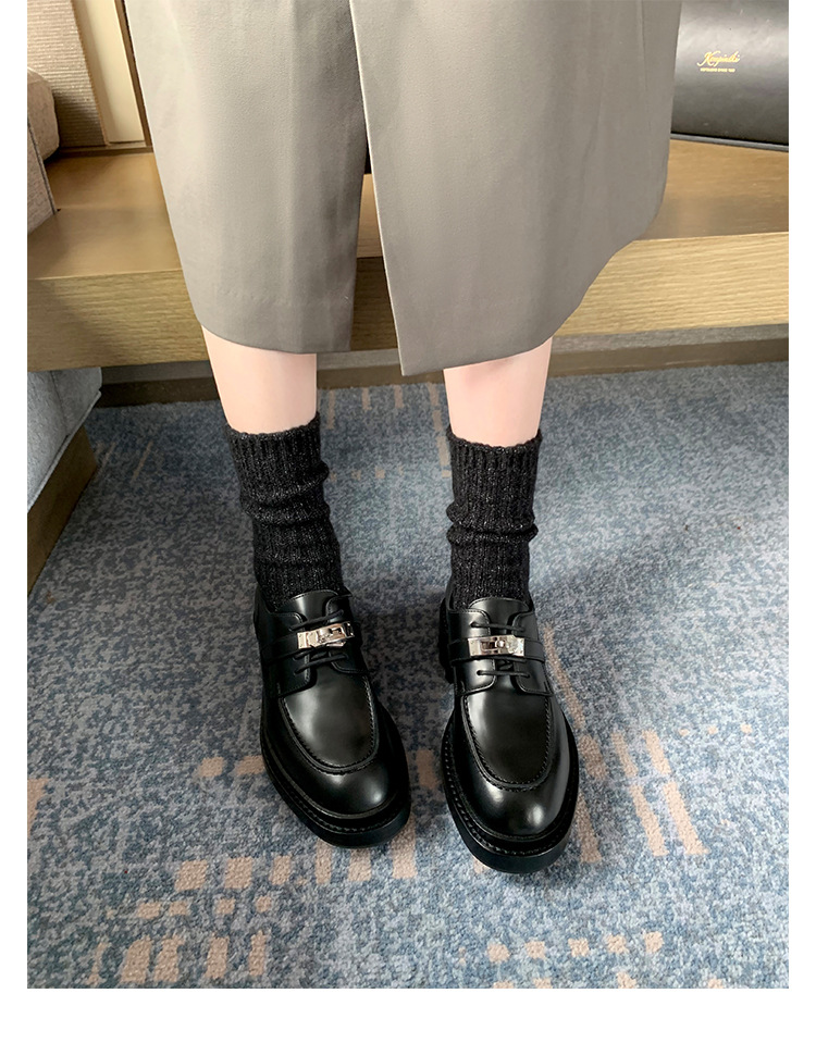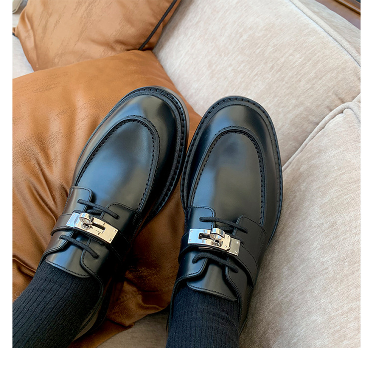 Готовый запас отправляется за секунды! Туфли в том же стиле Grape Mom. Мокасины на шнуровке в британском стиле с металлической пряжкой и круглым носком на толстом каблуке и толстой подошве.
