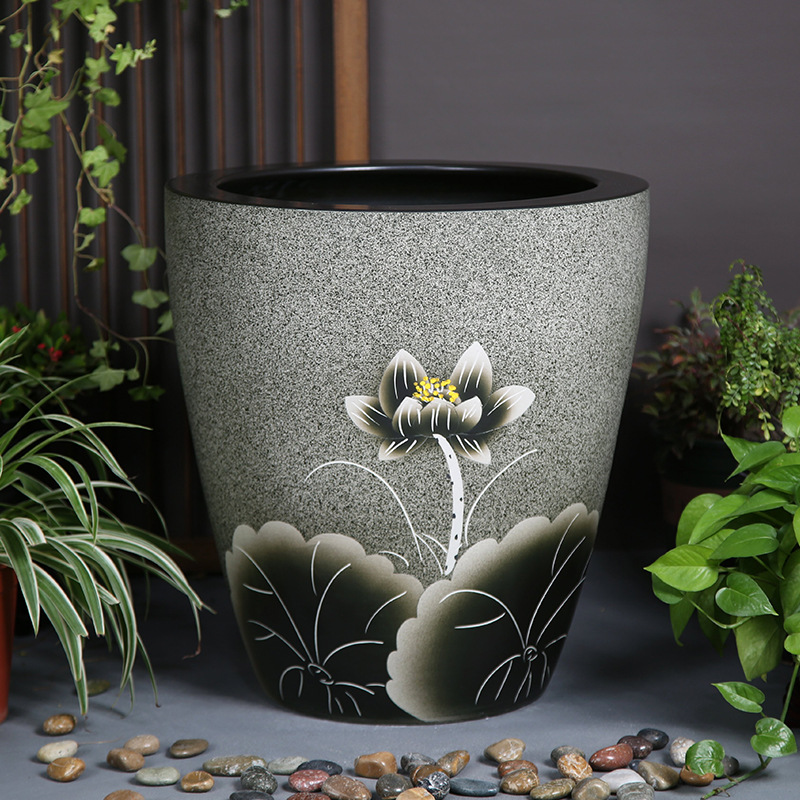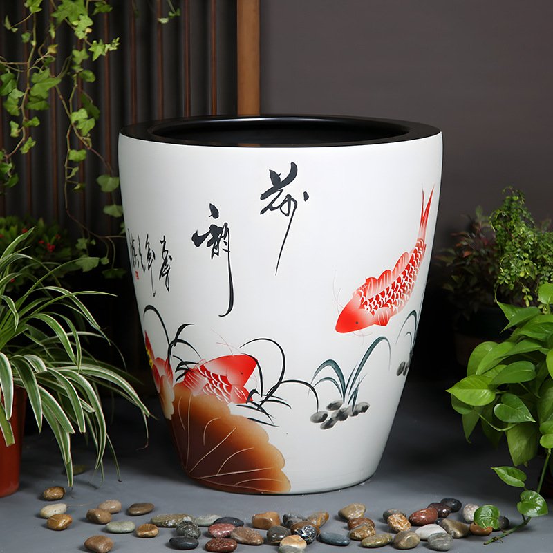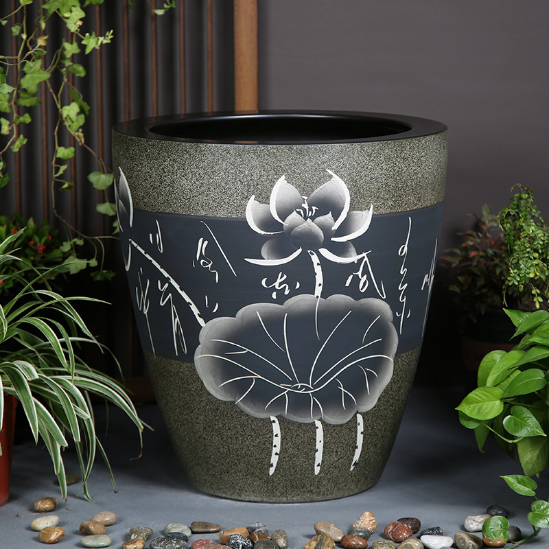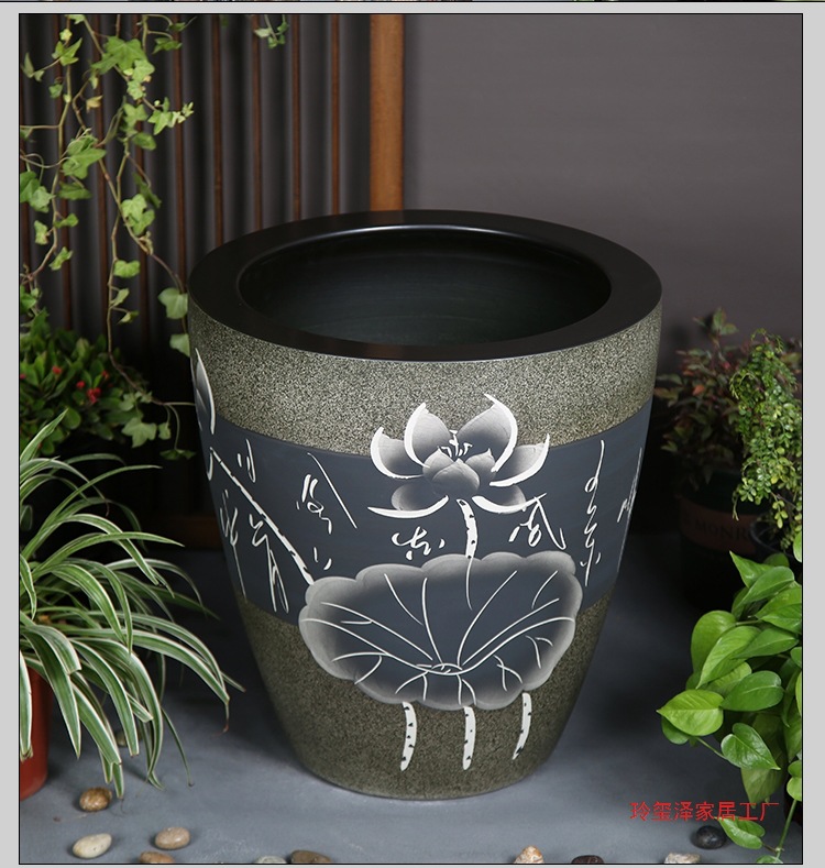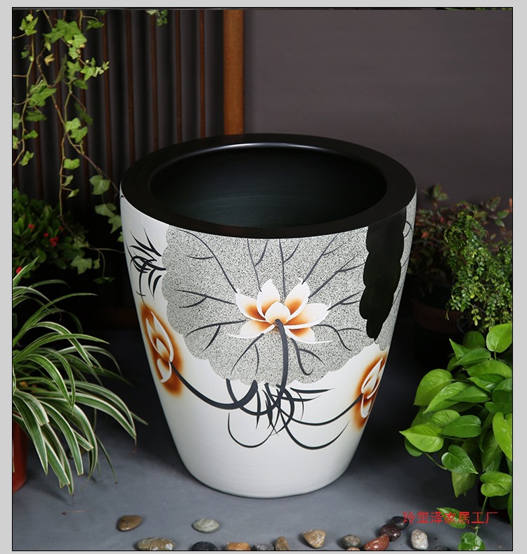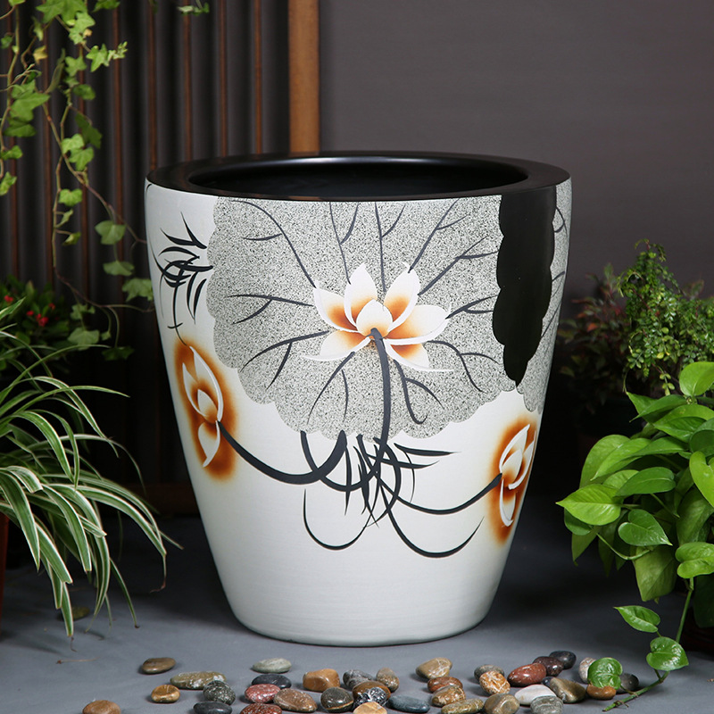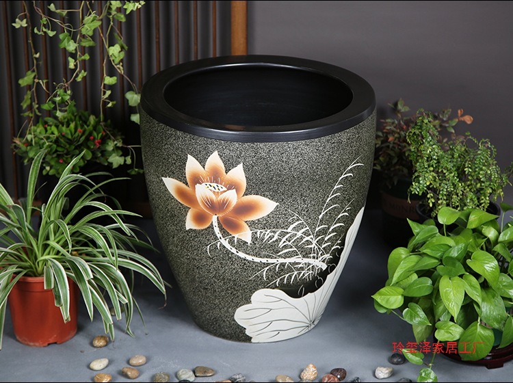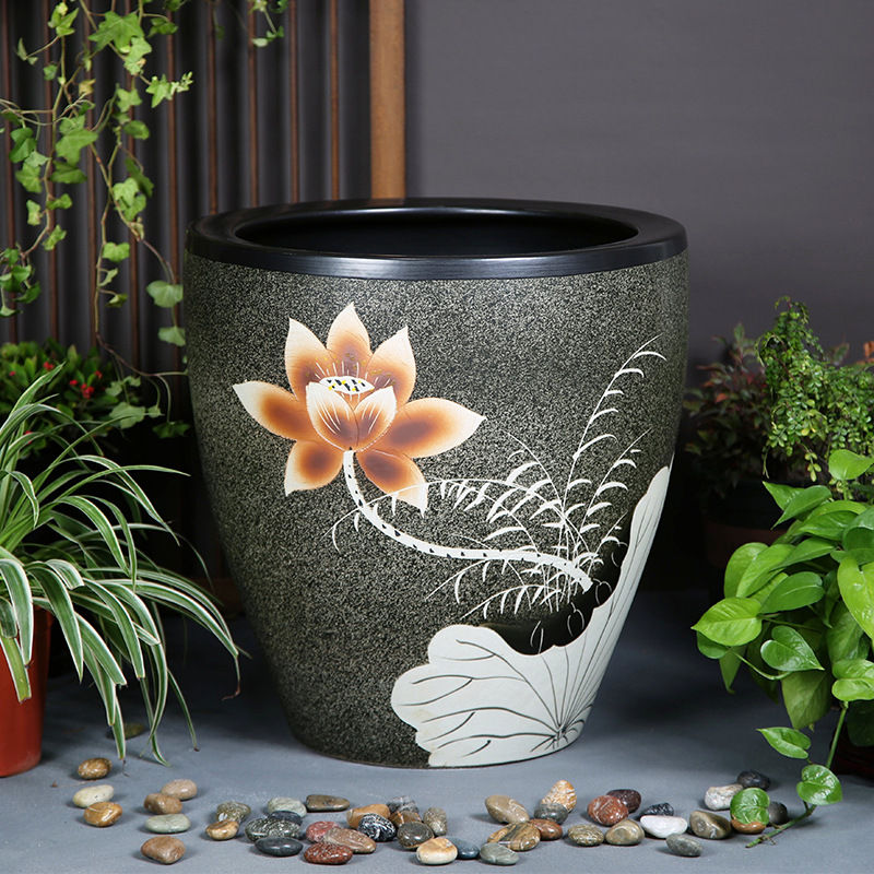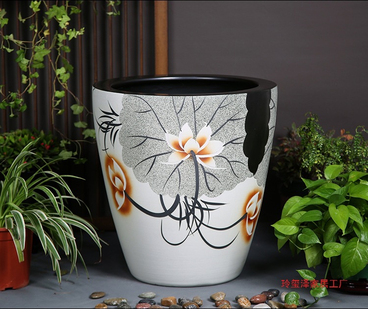 Высокий керамический традиционный горшок для цветочной композиции для рыбок, рулон, каллиграфия, рисунок, резервуар, винтажная водяная лилия, лотос, резервуар для воды, украшение для двора, гостиной