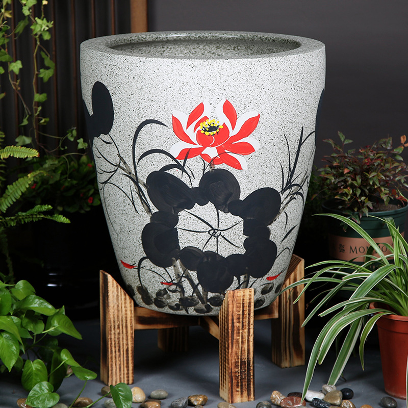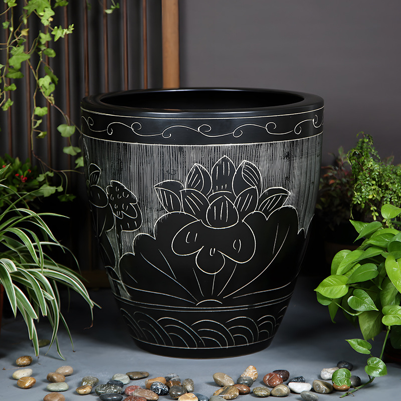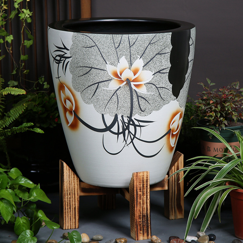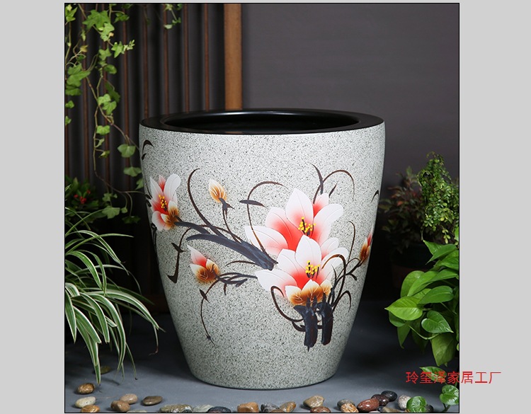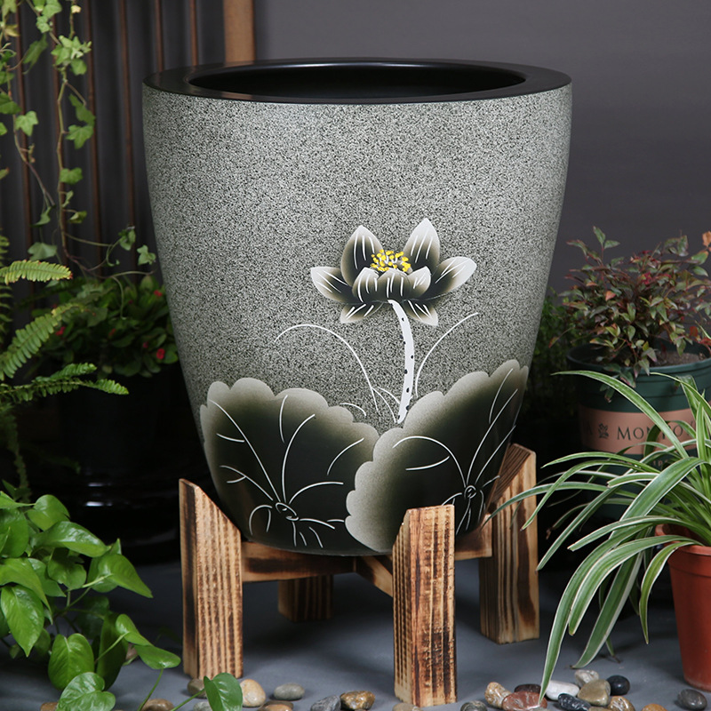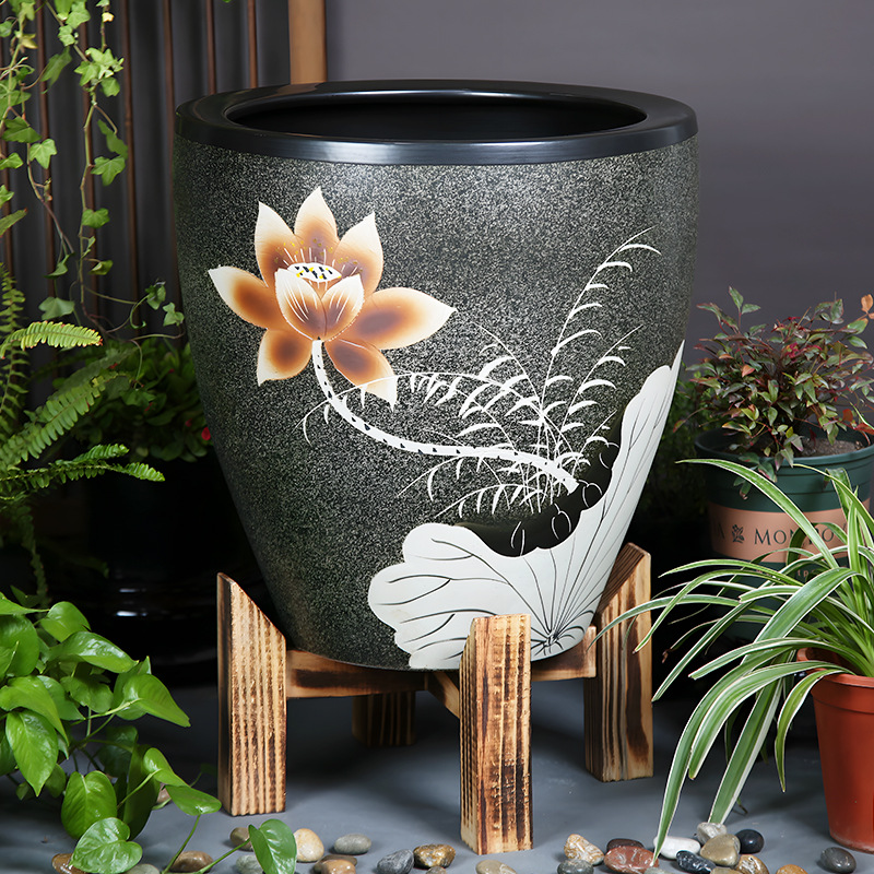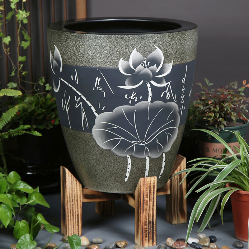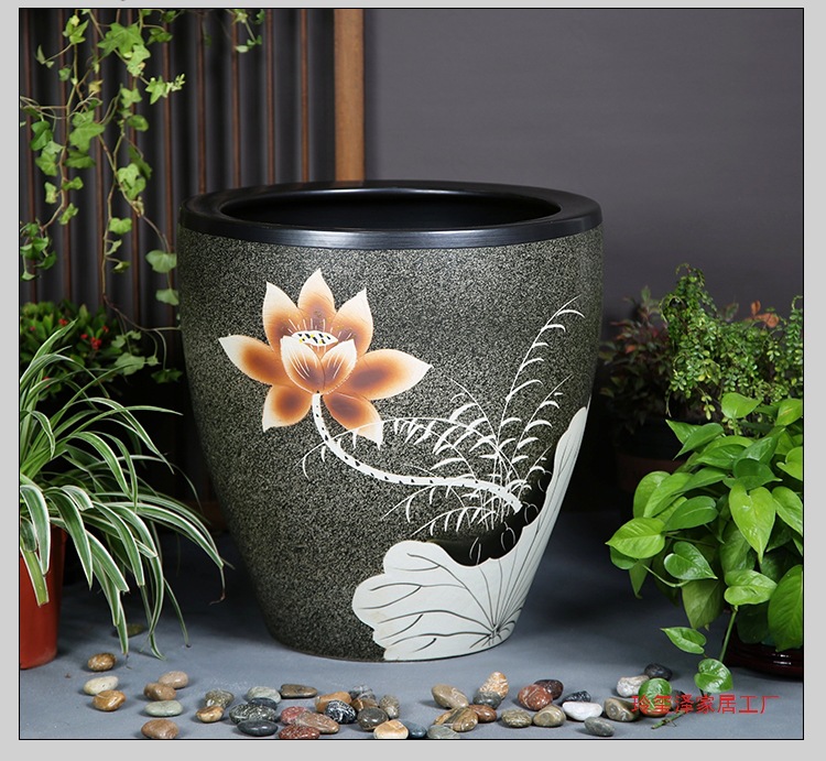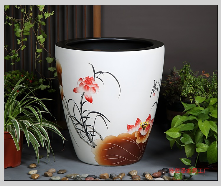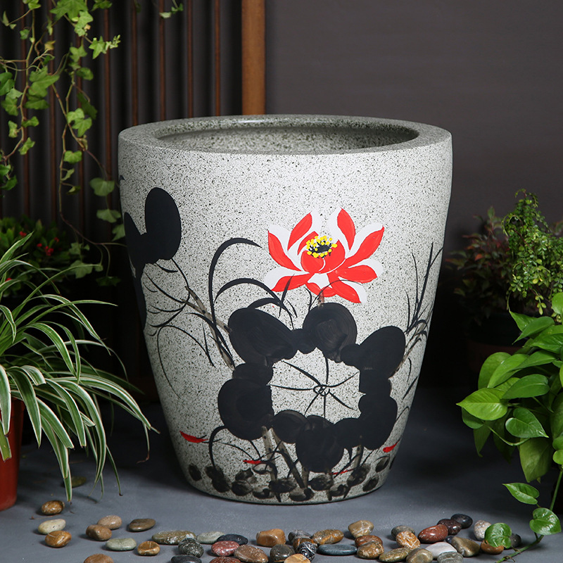 Высокий керамический традиционный горшок для цветочной композиции для рыбок, рулон, каллиграфия, рисунок, резервуар, винтажная водяная лилия, лотос, резервуар для воды, украшение для двора, гостиной