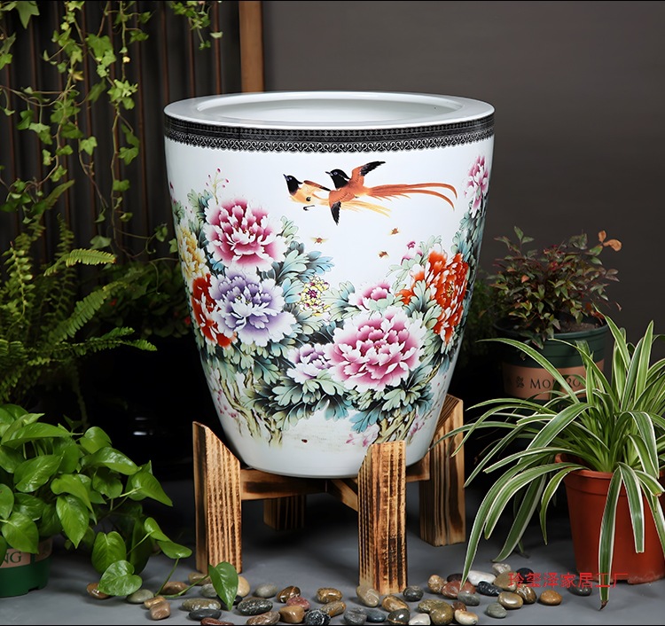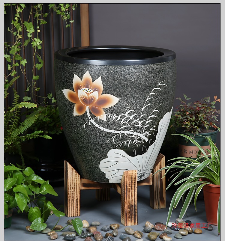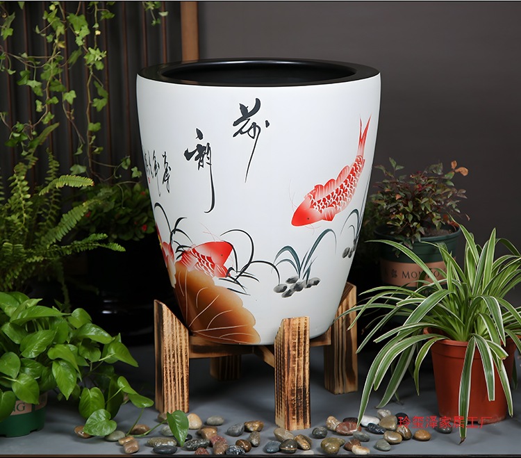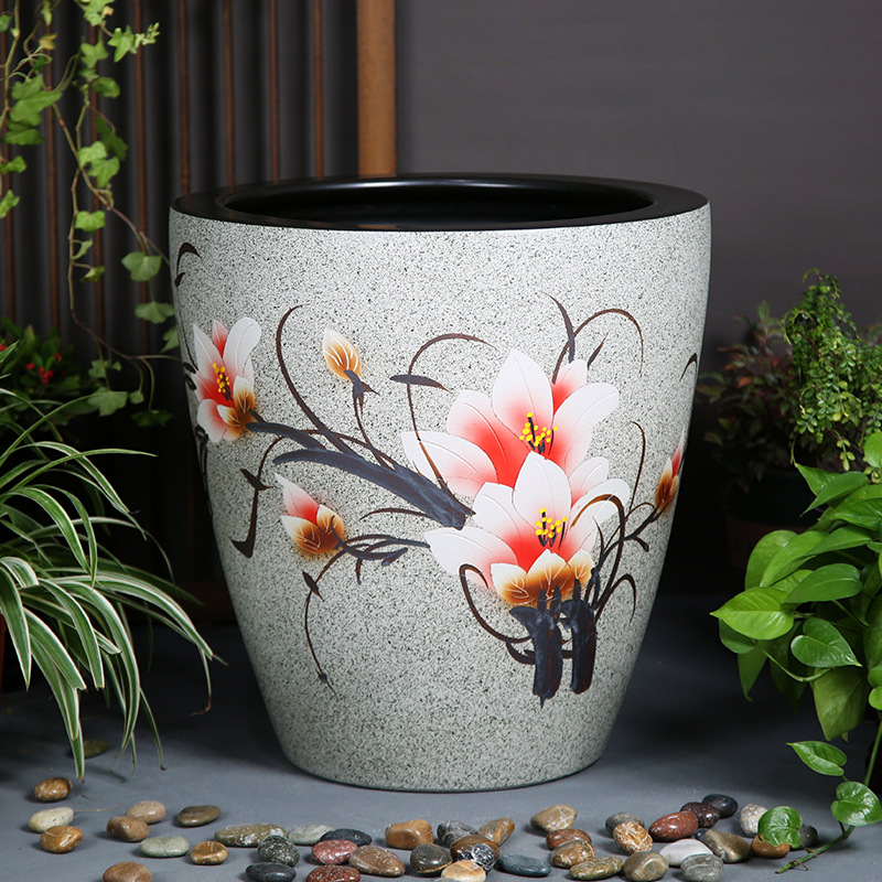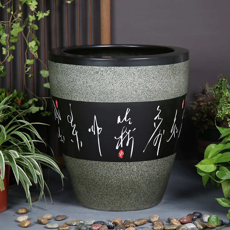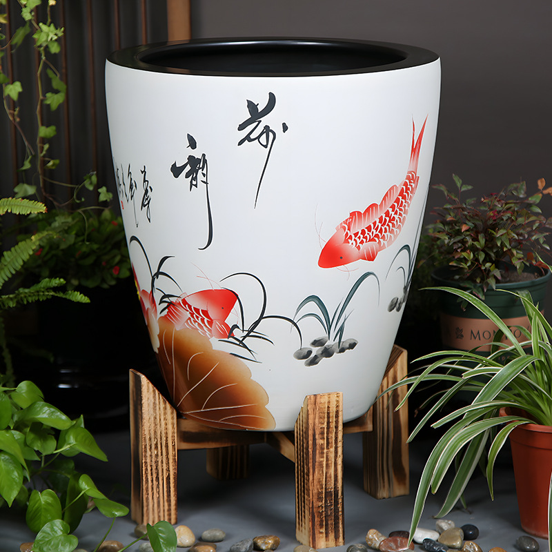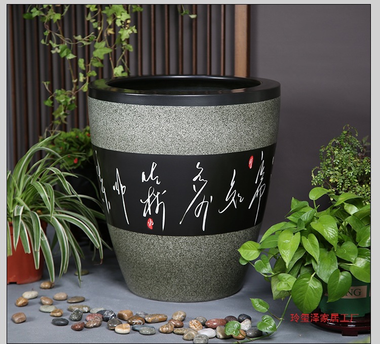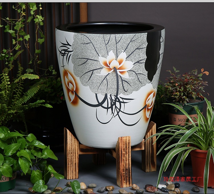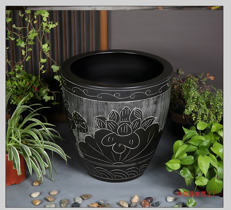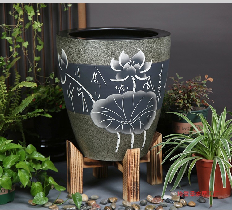Высокий керамический традиционный горшок для цветочной композиции для рыбок, рулон, каллиграфия, рисунок, резервуар, винтажная водяная лилия, лотос, резервуар для воды, украшение для двора, гостиной