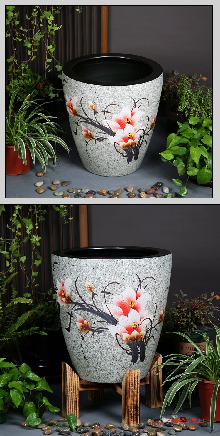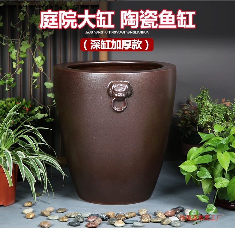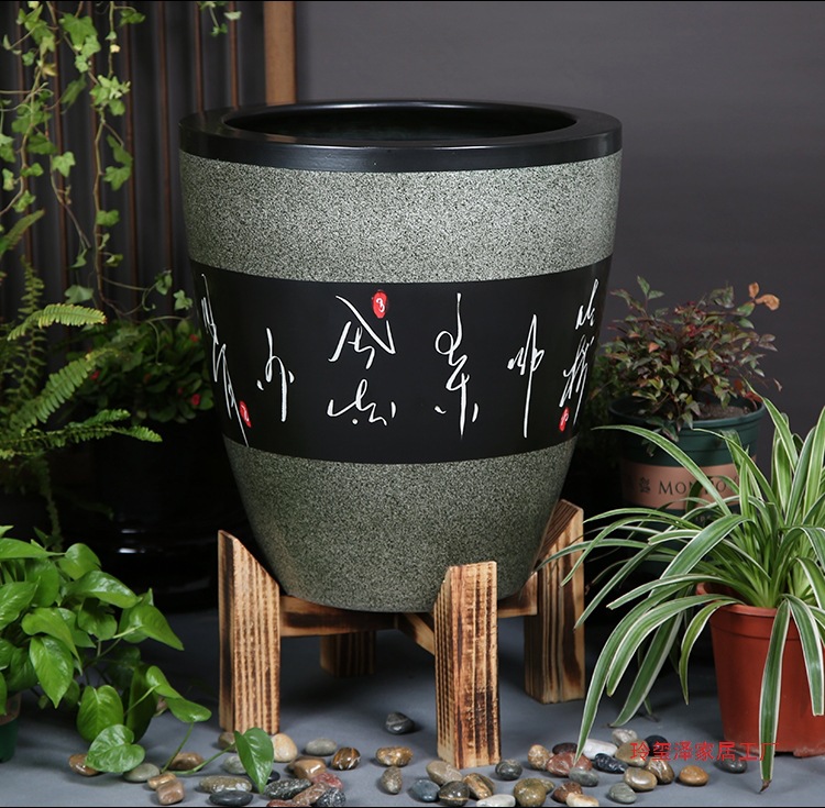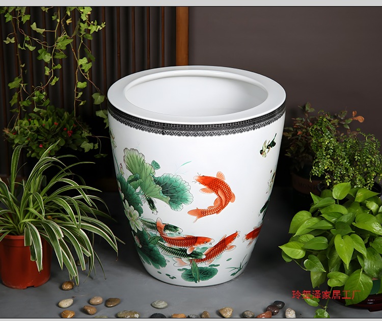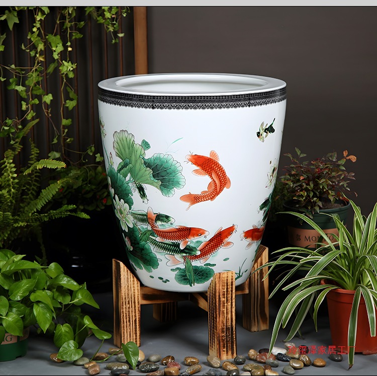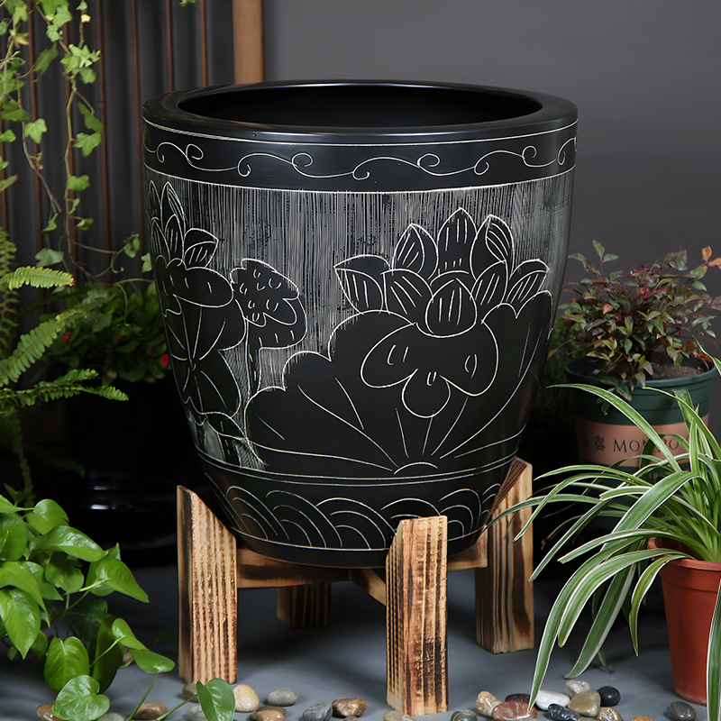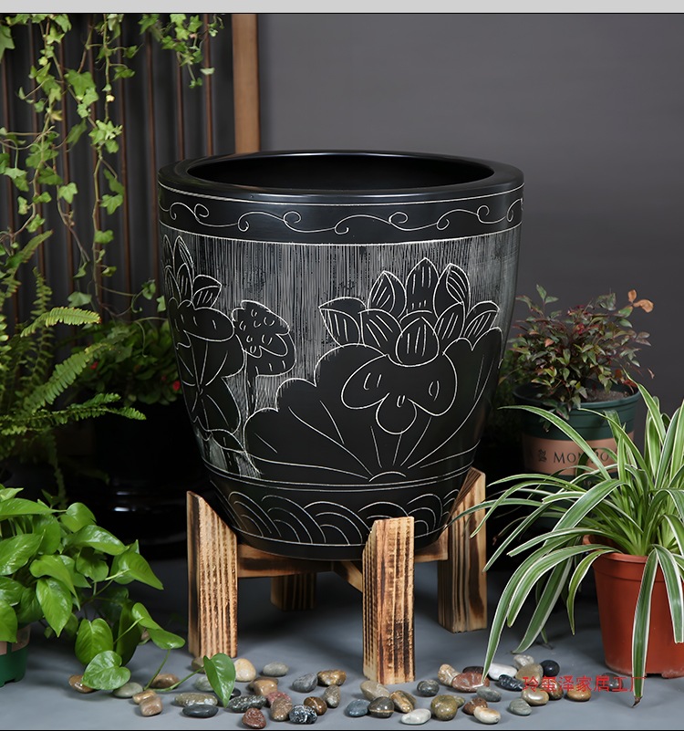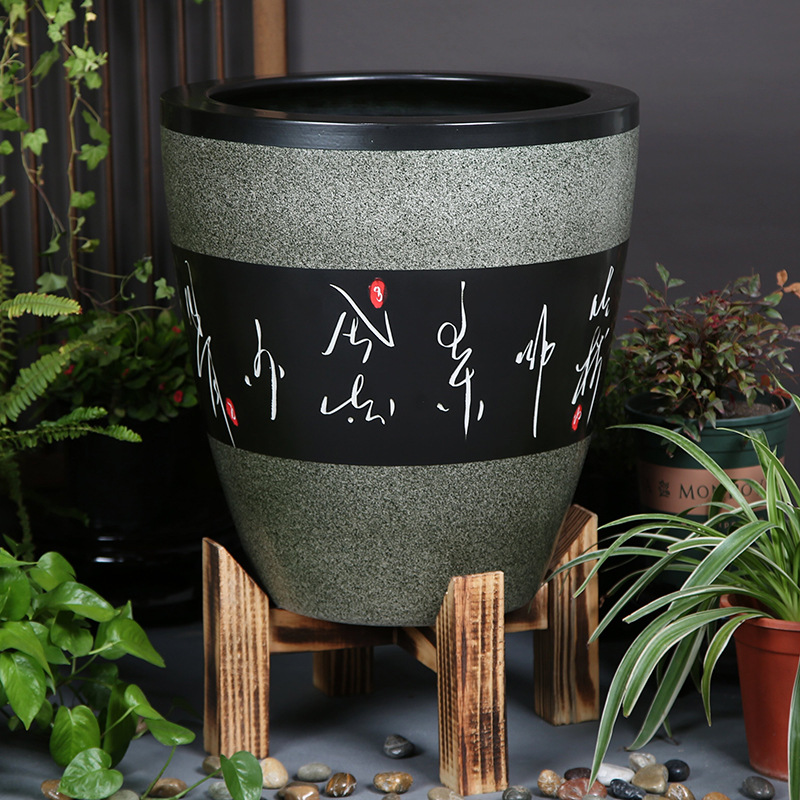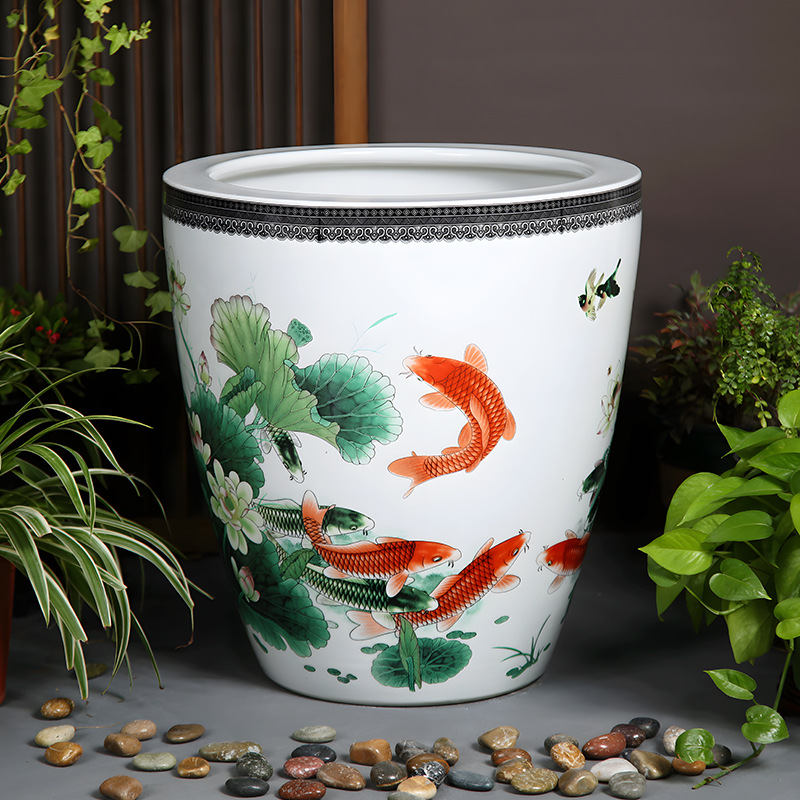 Высокий керамический традиционный горшок для цветочной композиции для рыбок, рулон, каллиграфия, рисунок, резервуар, винтажная водяная лилия, лотос, резервуар для воды, украшение для двора, гостиной