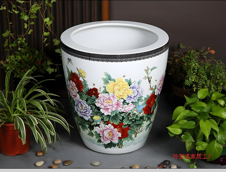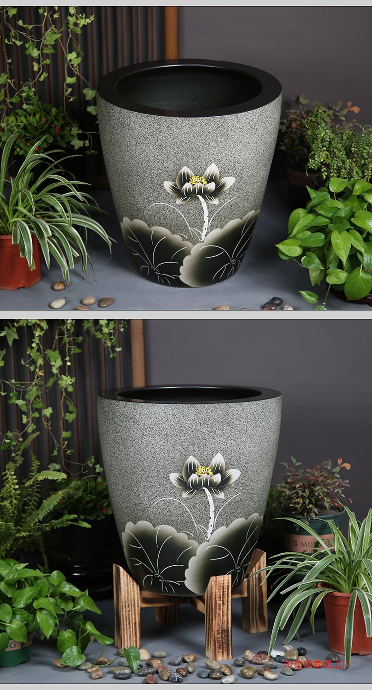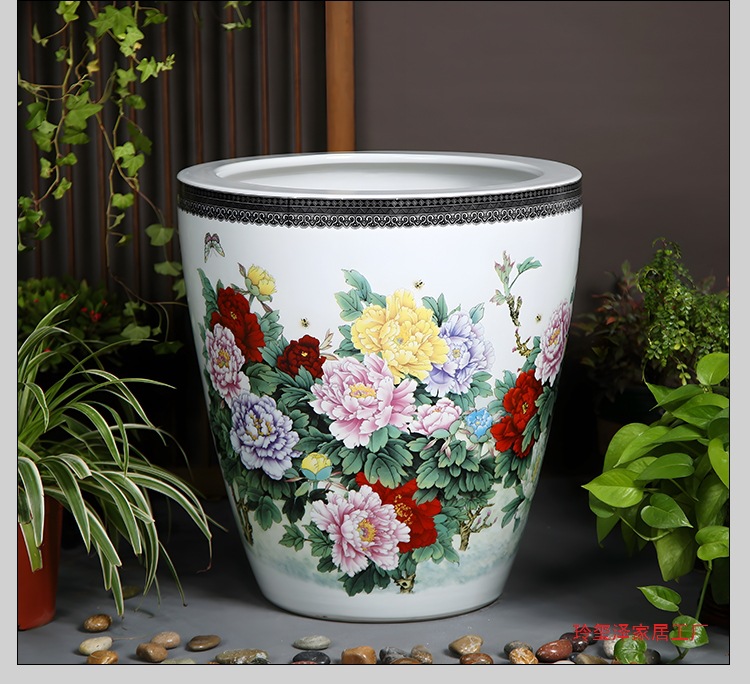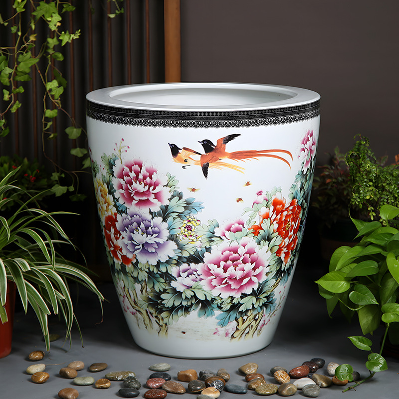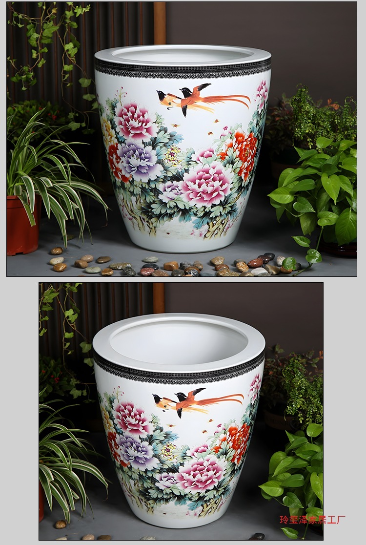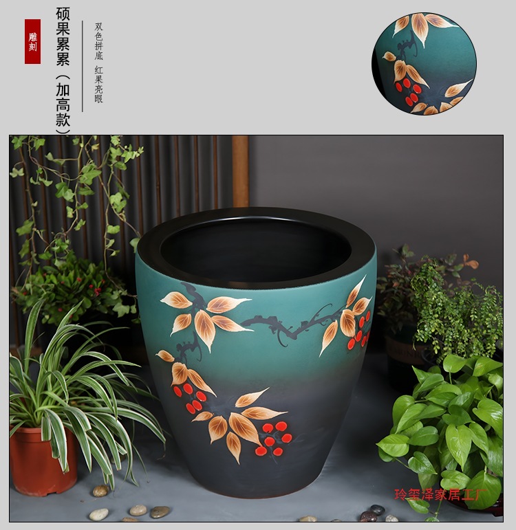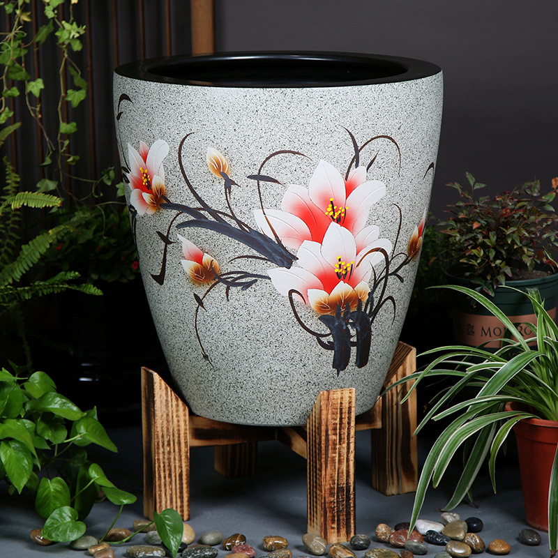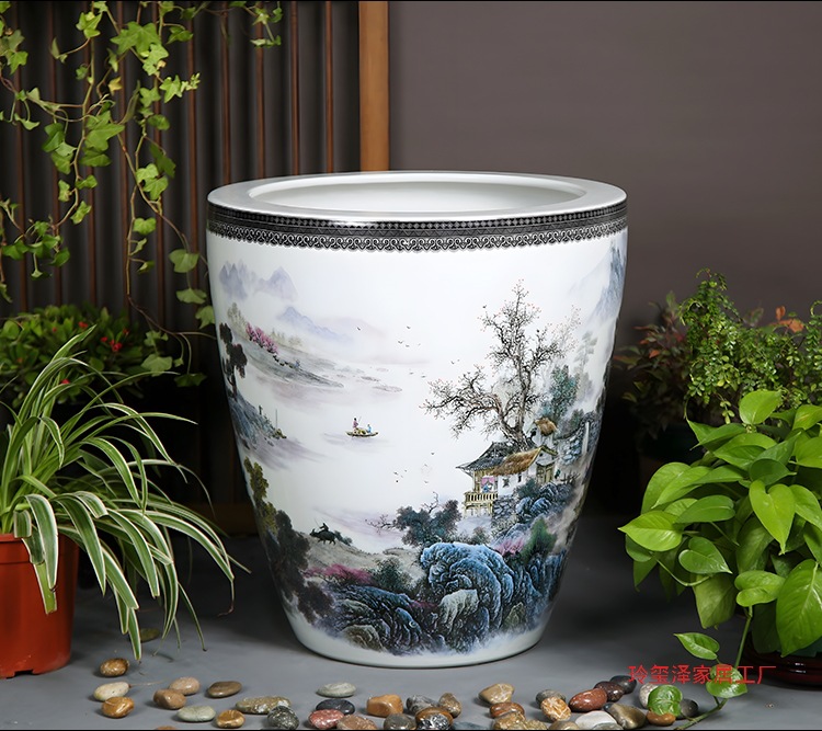 Высокий керамический традиционный горшок для цветочной композиции для рыбок, рулон, каллиграфия, рисунок, резервуар, винтажная водяная лилия, лотос, резервуар для воды, украшение для двора, гостиной