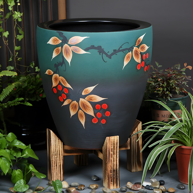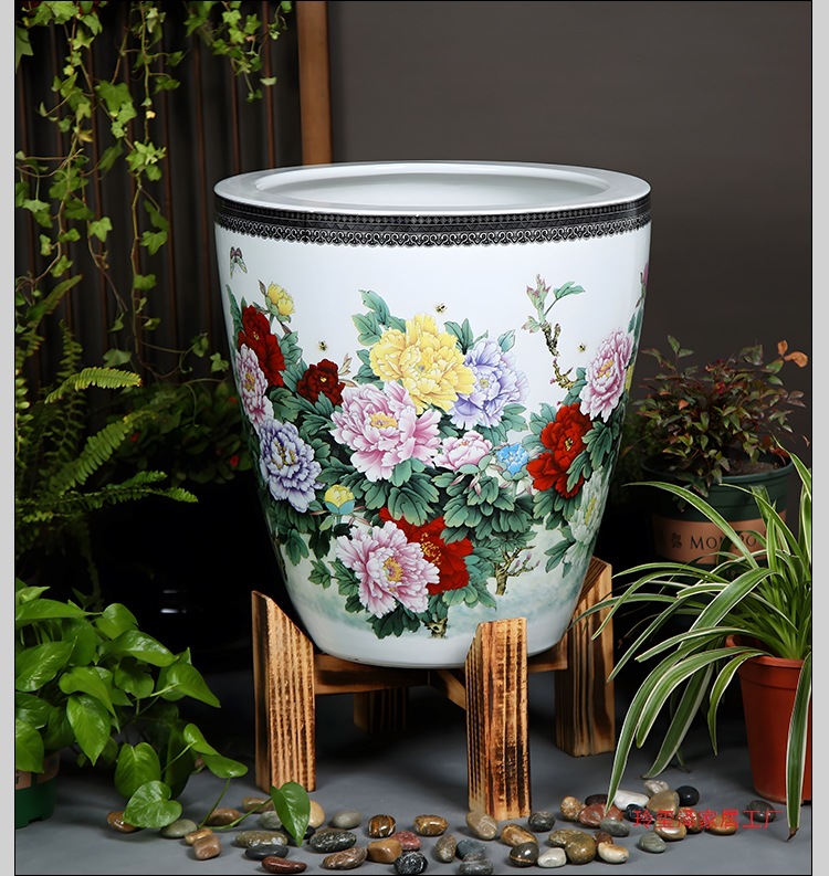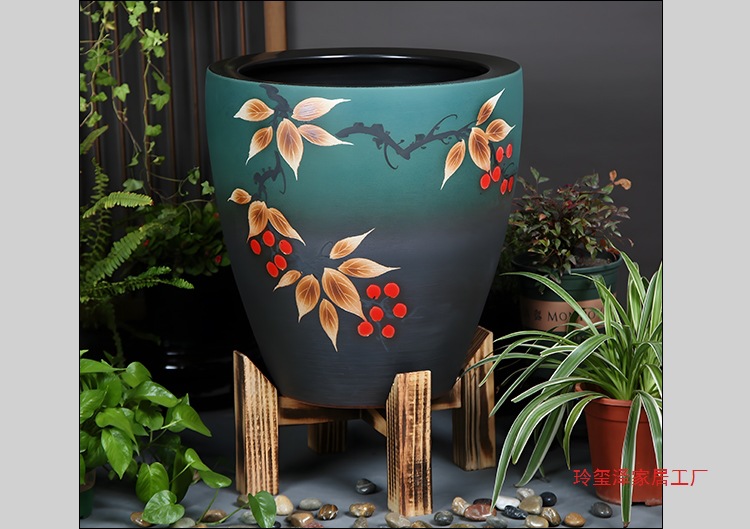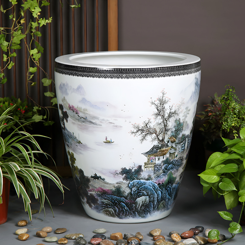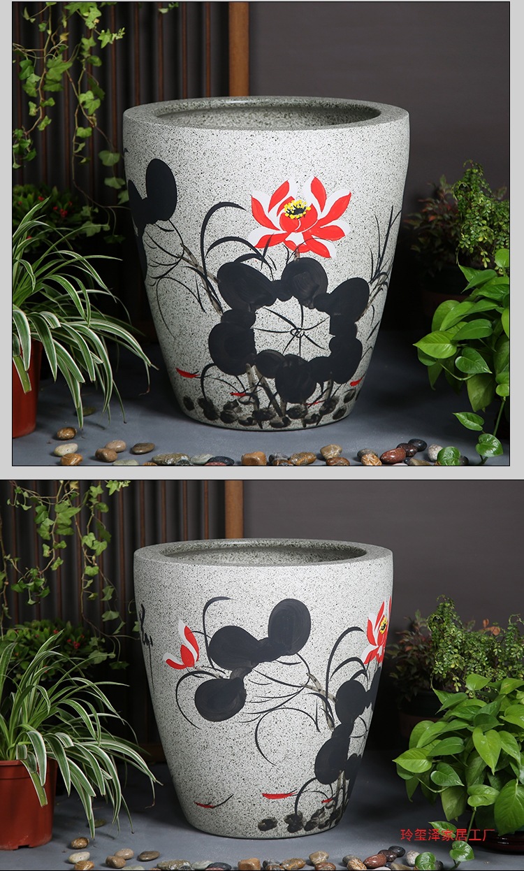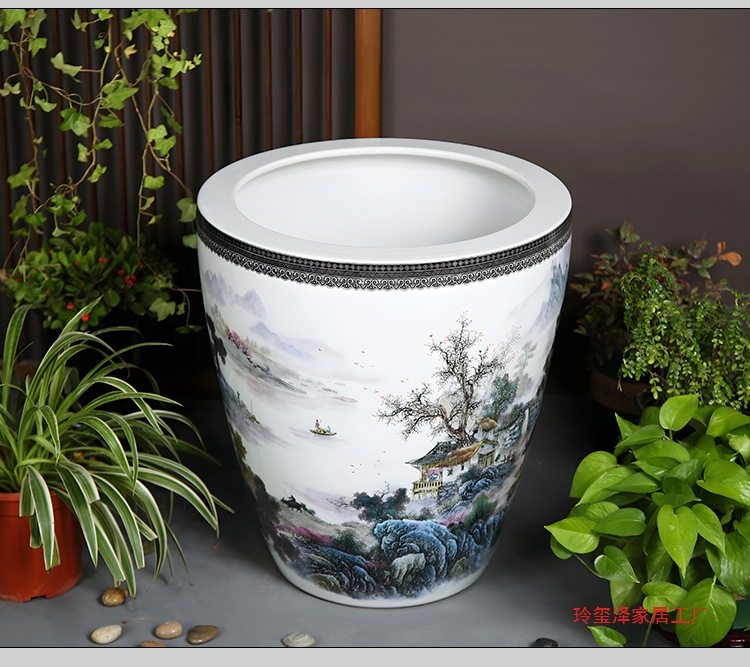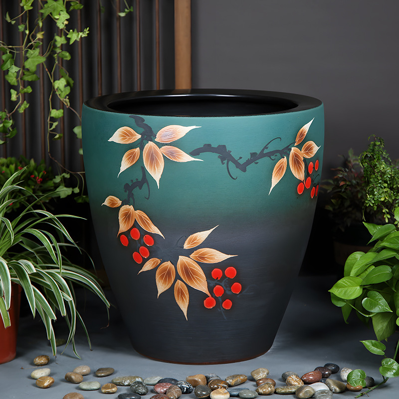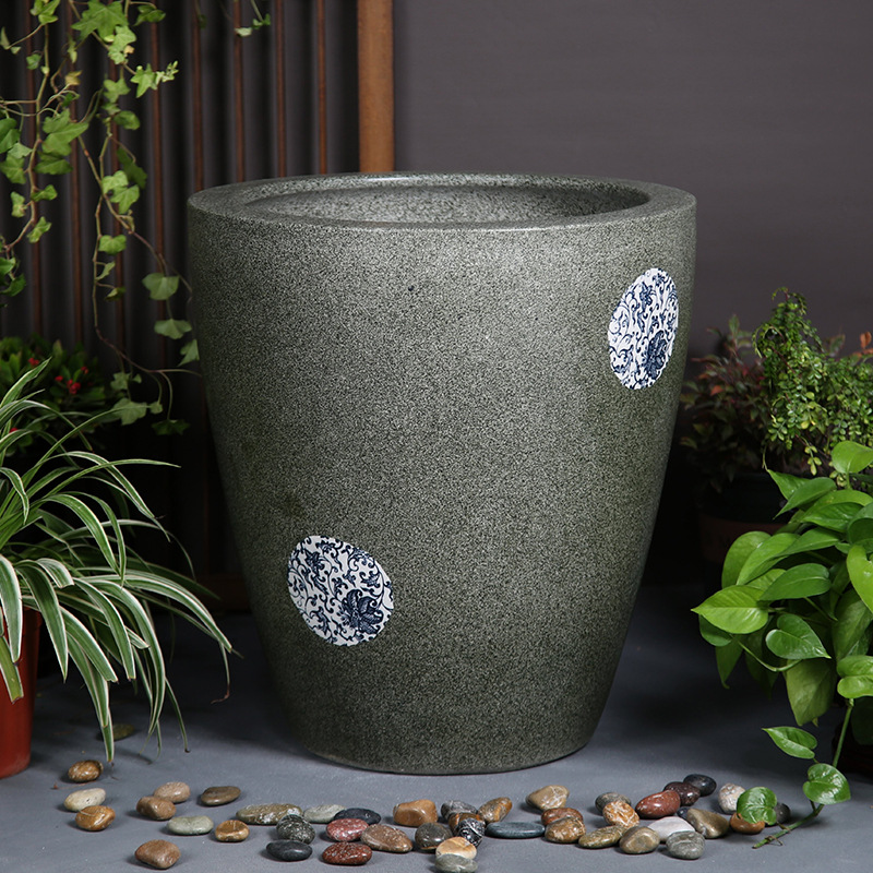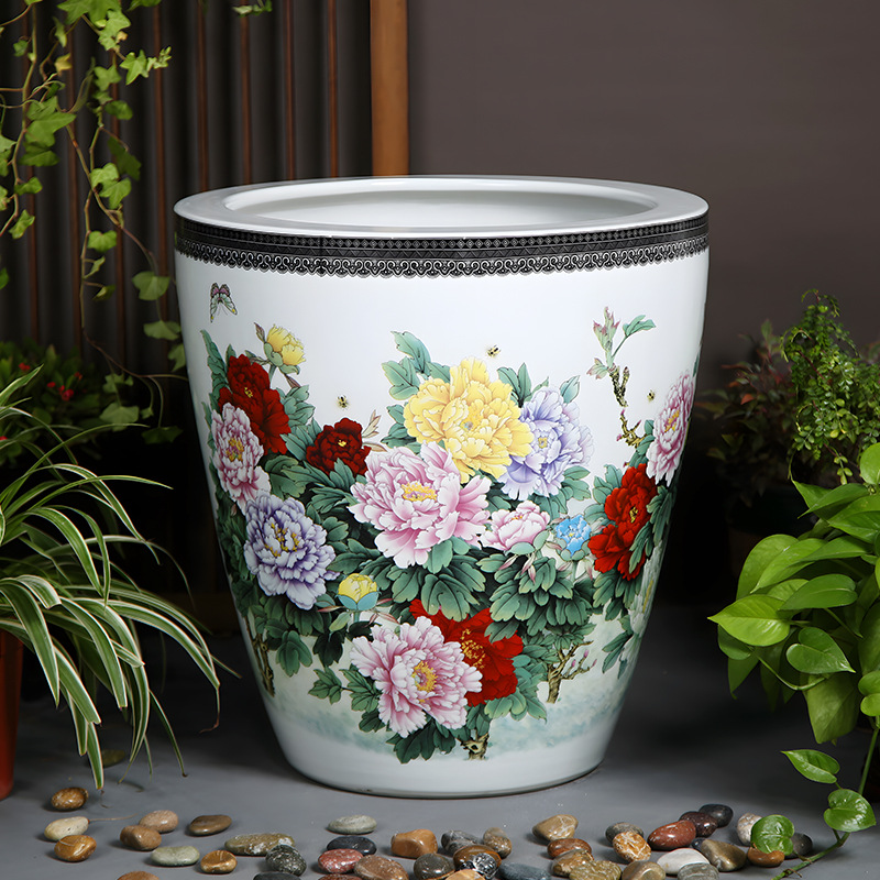 Высокий керамический традиционный горшок для цветочной композиции для рыбок, рулон, каллиграфия, рисунок, резервуар, винтажная водяная лилия, лотос, резервуар для воды, украшение для двора, гостиной