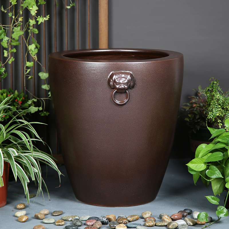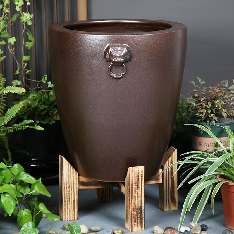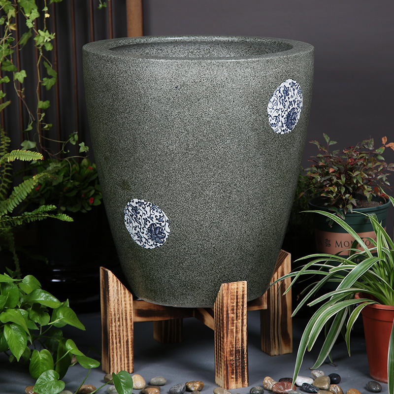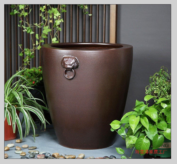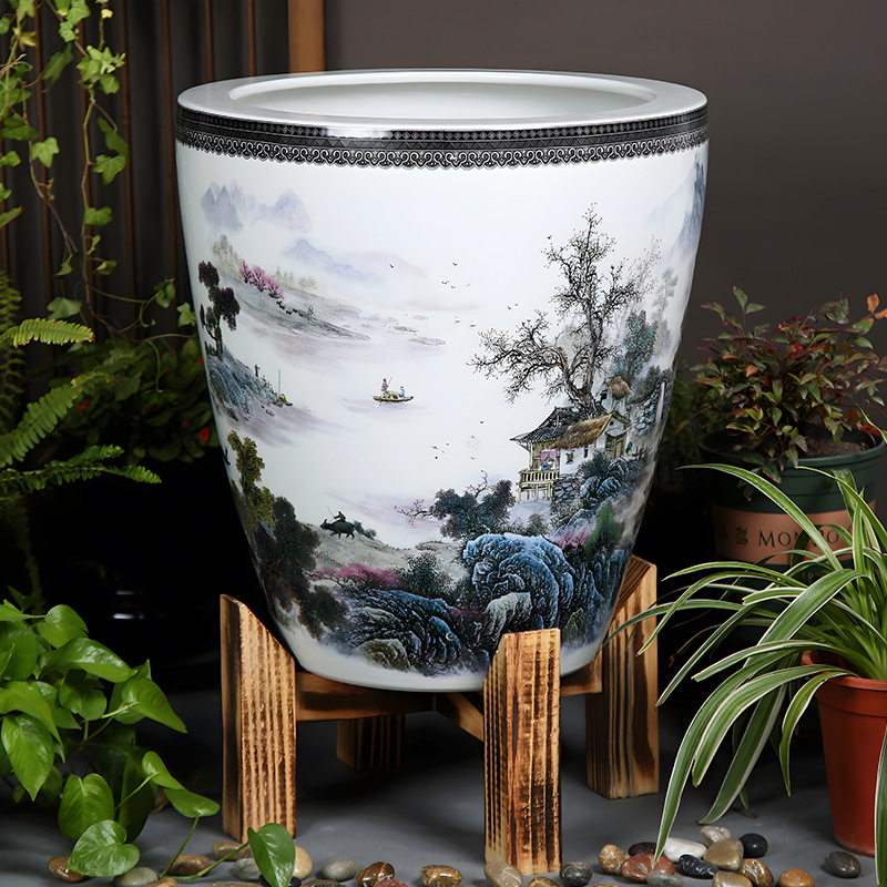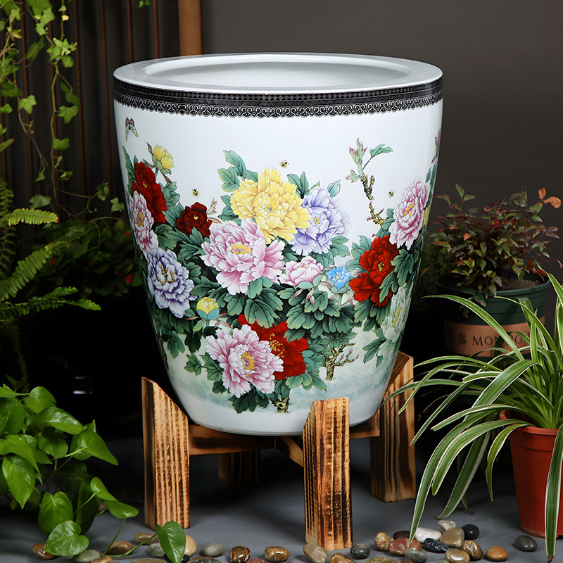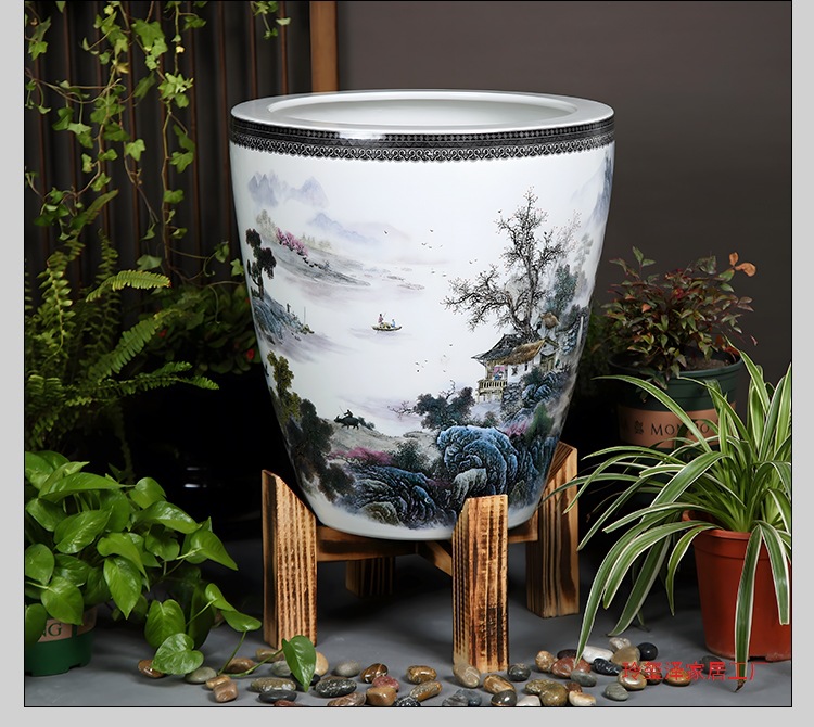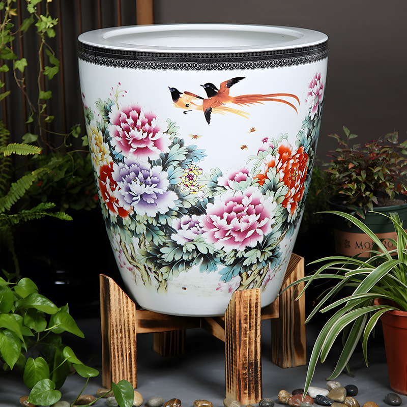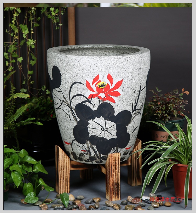Высокий керамический традиционный горшок для цветочной композиции для рыбок, рулон, каллиграфия, рисунок, резервуар, винтажная водяная лилия, лотос, резервуар для воды, украшение для двора, гостиной