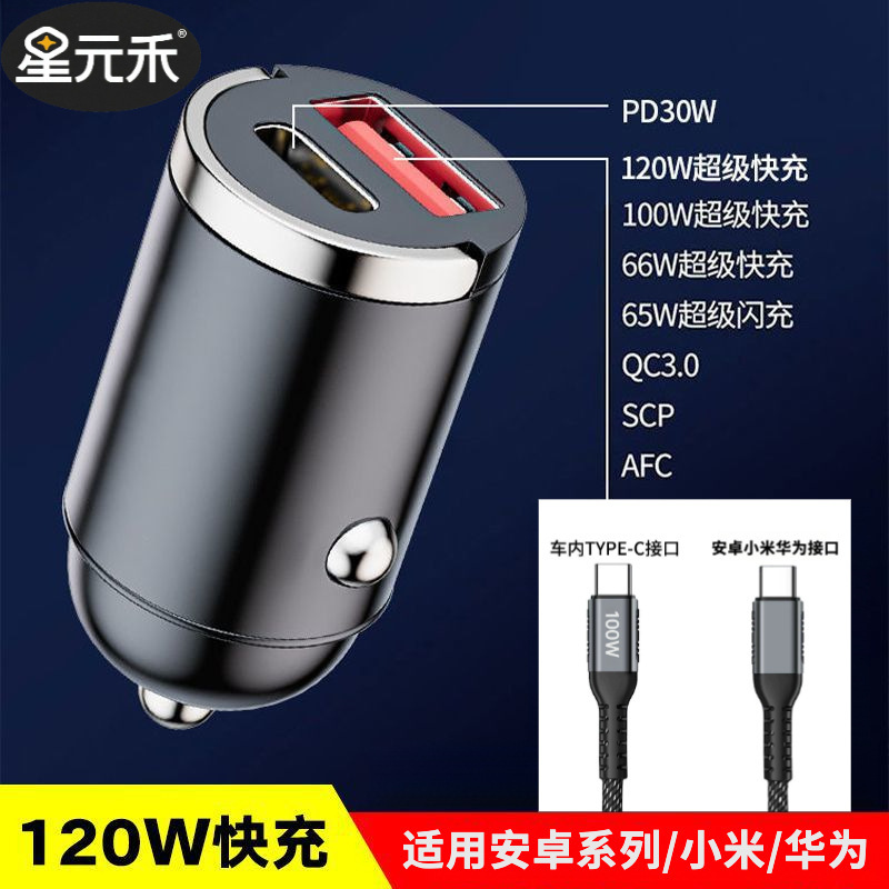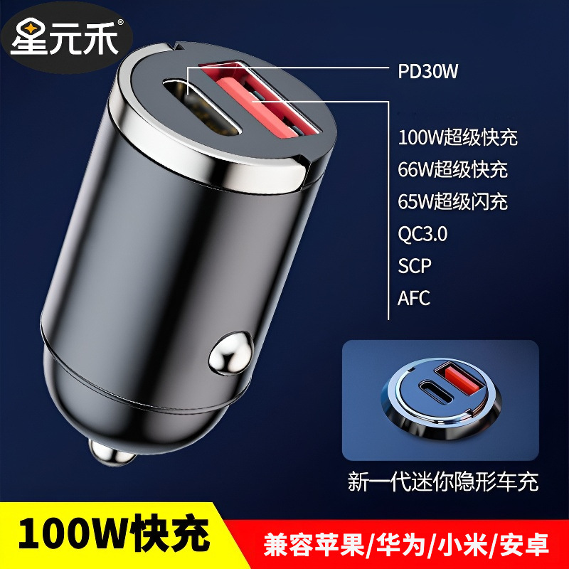 Xingyuanhe 100 Вт невидимая автомобильная головка для быстрой зарядки один-два сверхбыстрая зарядка PD с двумя портами автомобильный адаптер прикуривателя