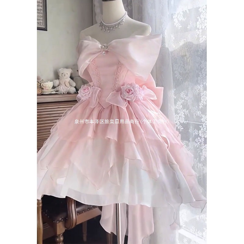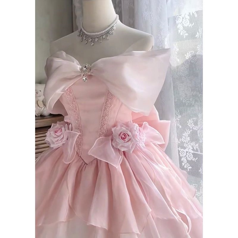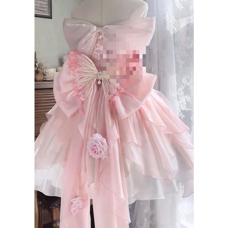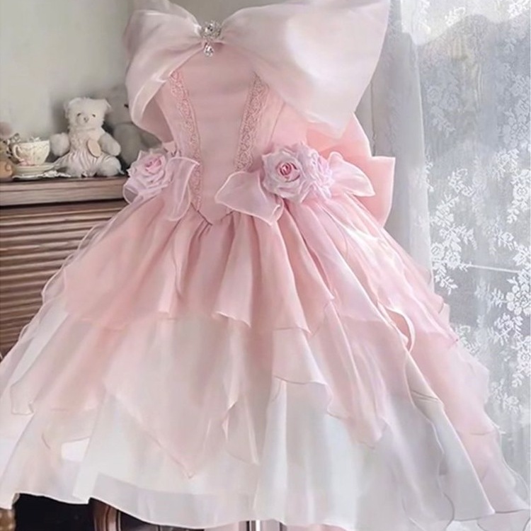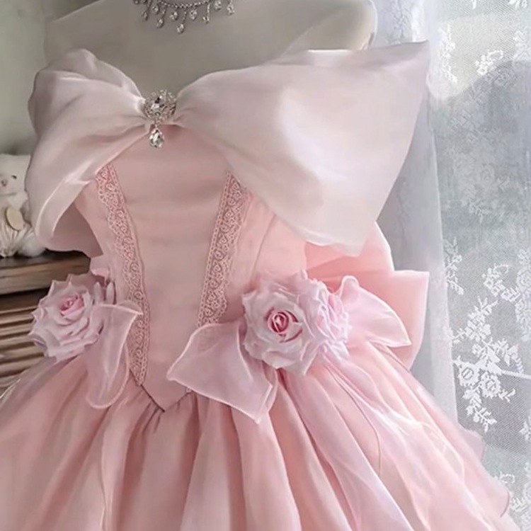 Потрясающее сладкое маленькое цветочное платье феи на одно плечо для девочек, пышное платье принцессы в стиле Лолиты с розовым бантом