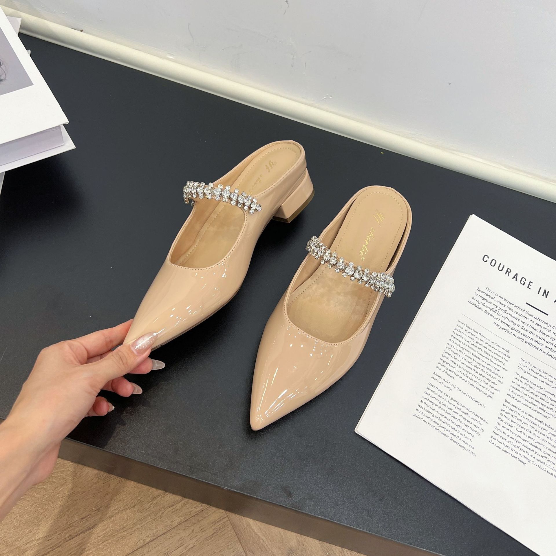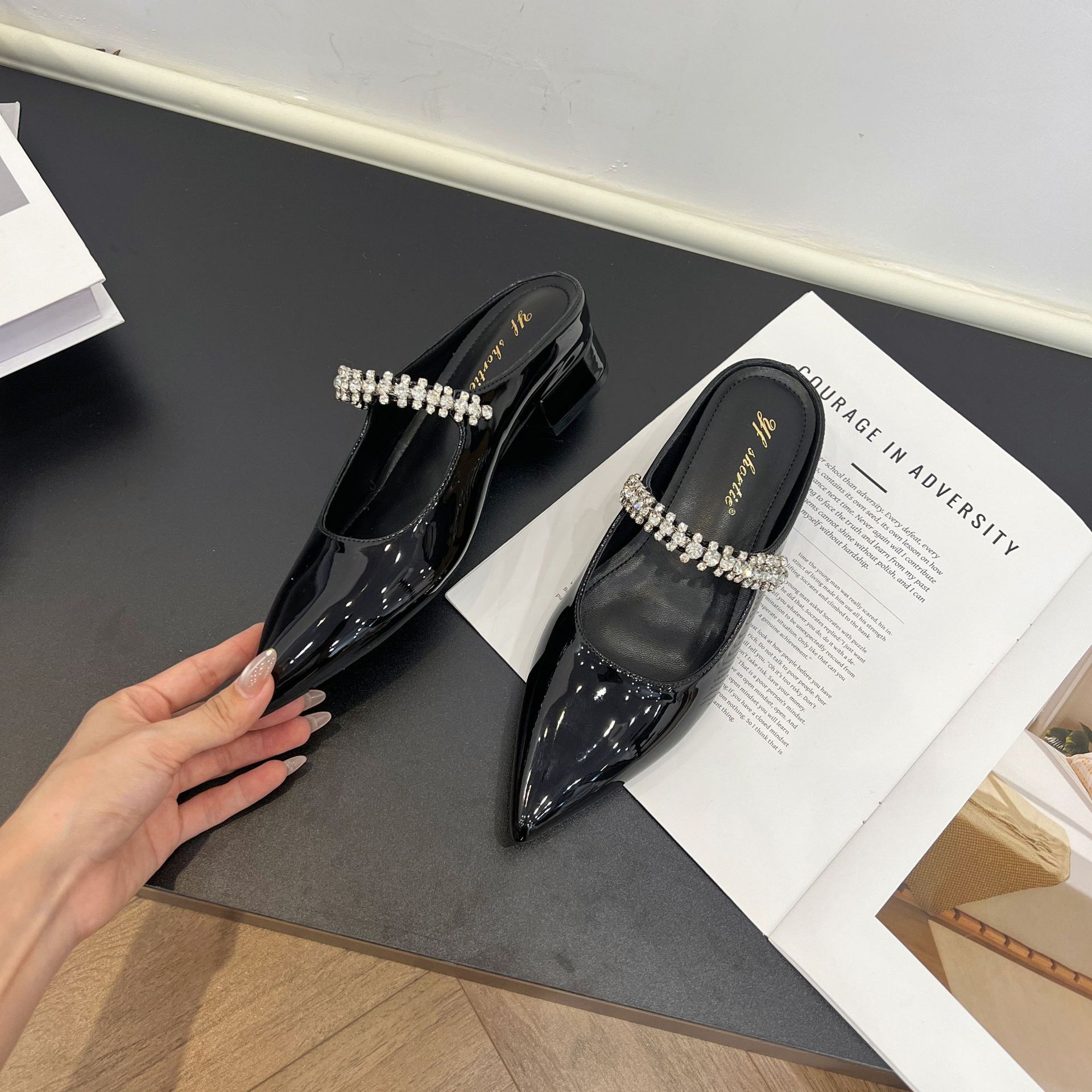 Женские туфли, увеличивающие рост, однорядные ремешки со стразами во французском стиле, толстые каблуки, тапочки Мэри Джейн, летняя верхняя обувь с юбками.