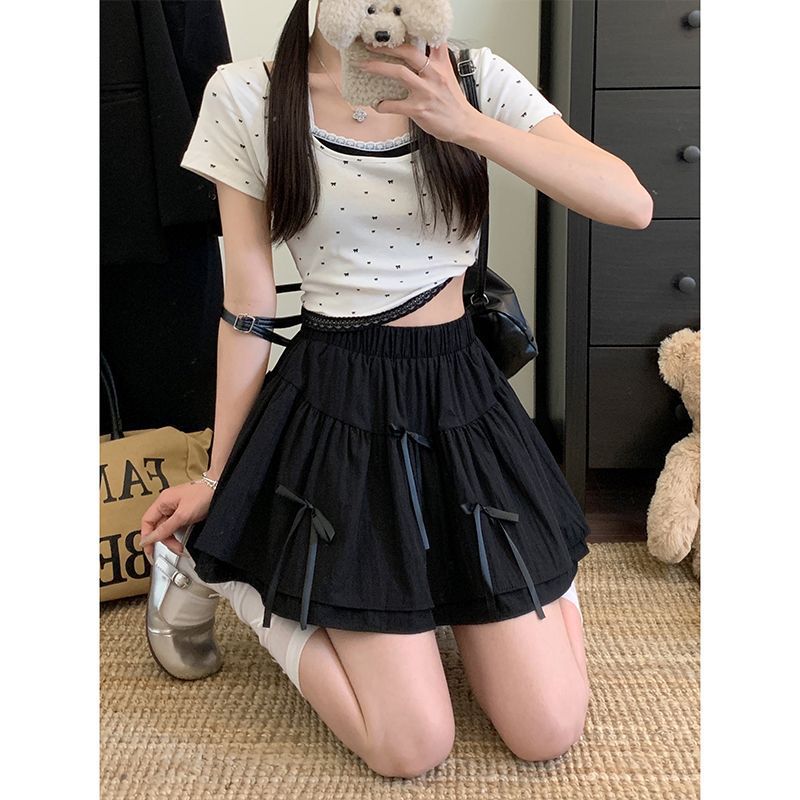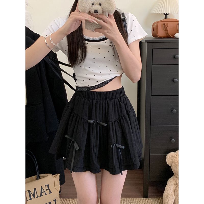 Юбка-пышка в стиле балета с бантом, летняя женская новая сексуальная пышная юбка трапециевидной формы с высокой талией и рюшами
