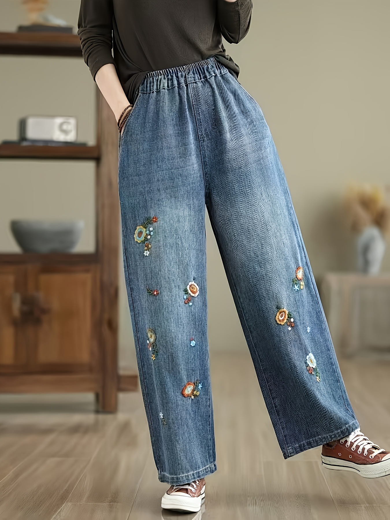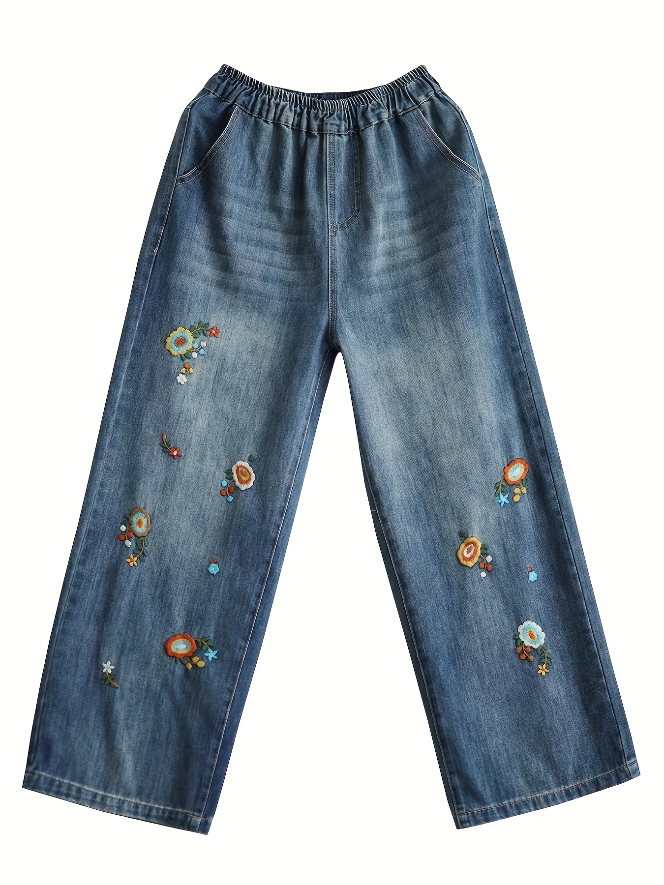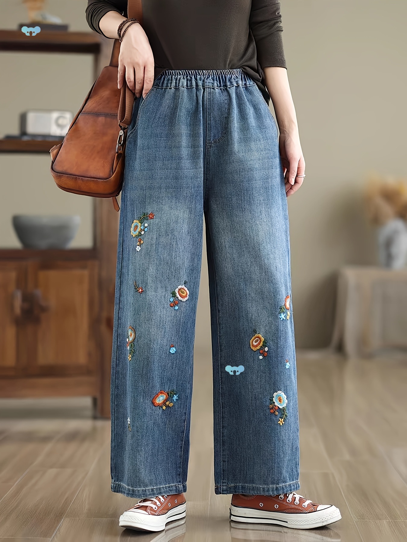 Свободные джинсы с цветочной вышивкой для женщин, удобные и практичные